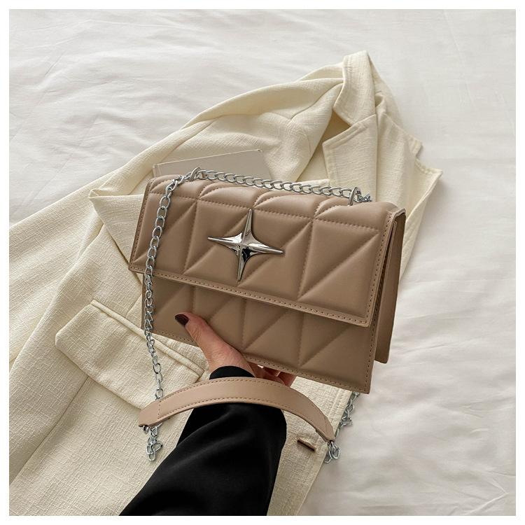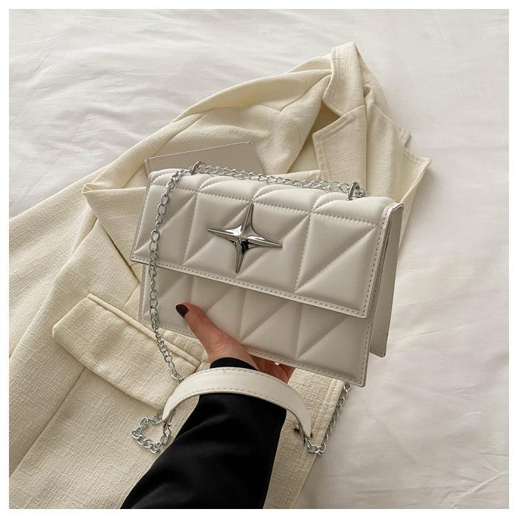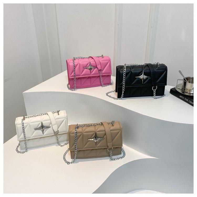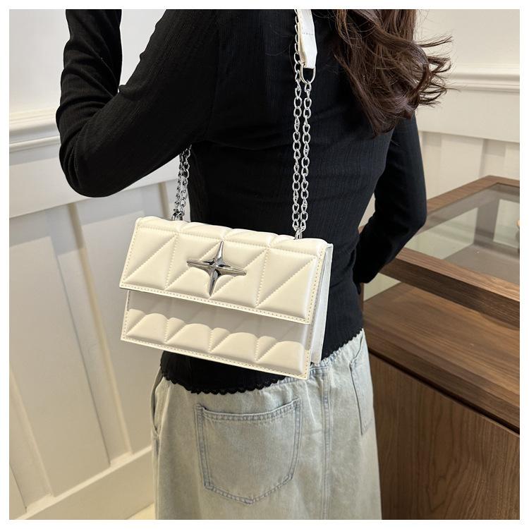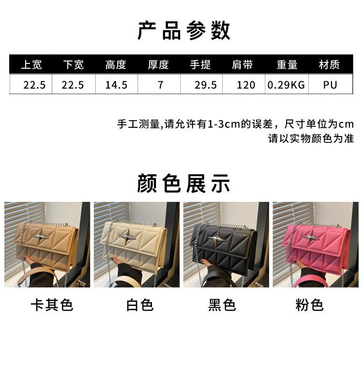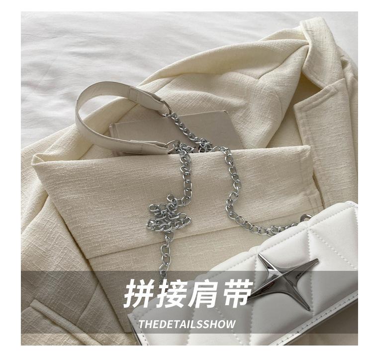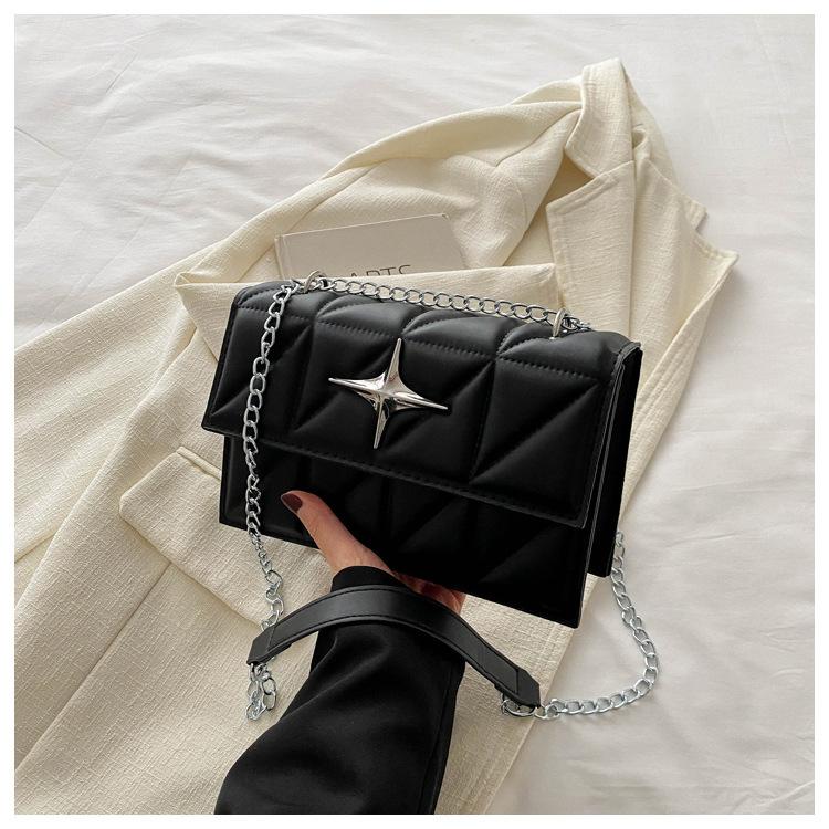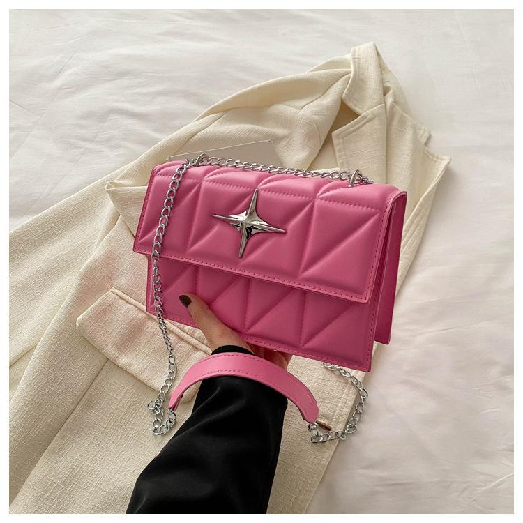 Bolsa Pequena 2024 Nova Moda Estilo Coreano Estilo Ocidental Rhombic Chain Bordado Linha Pequena Quadrada Bolsa Cor Sólida Simples Crossbody Shoulder Bag