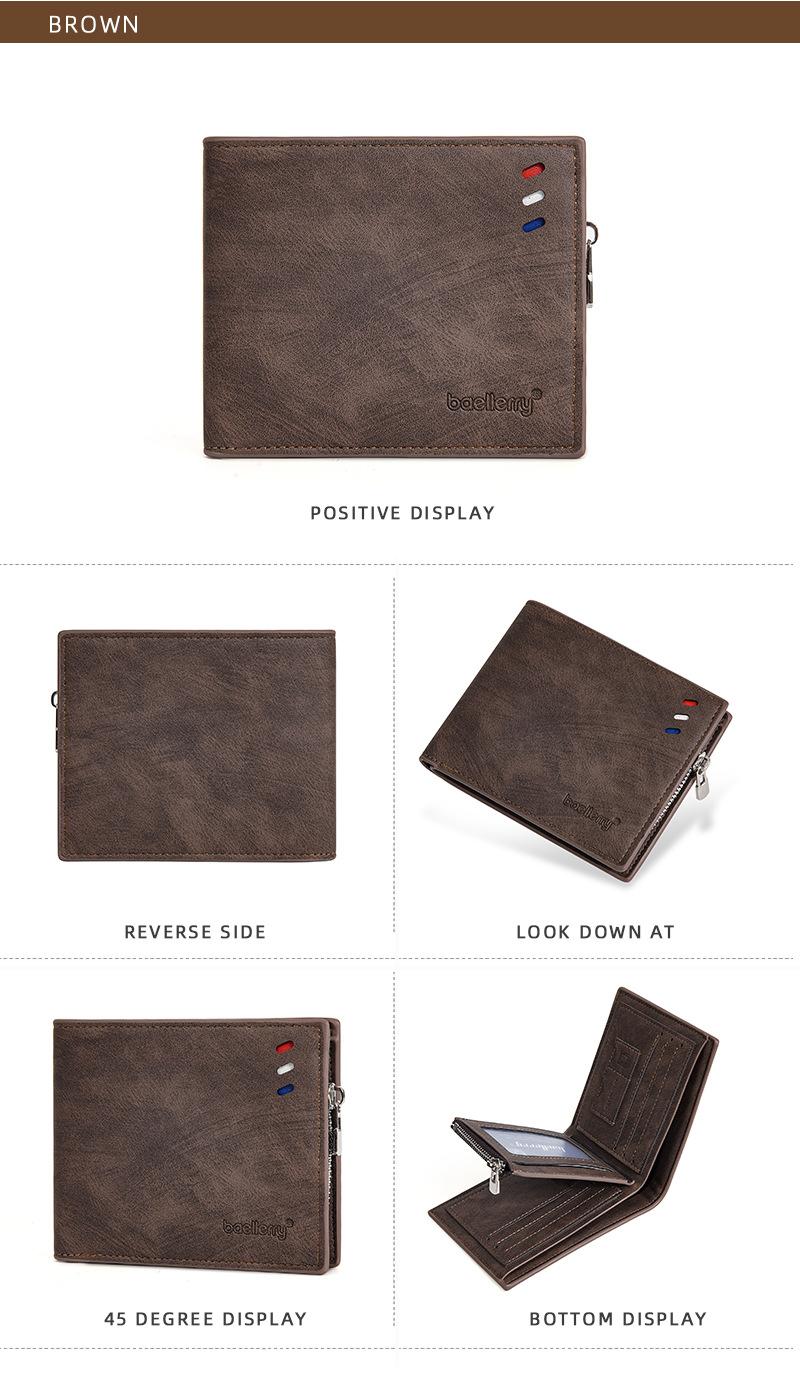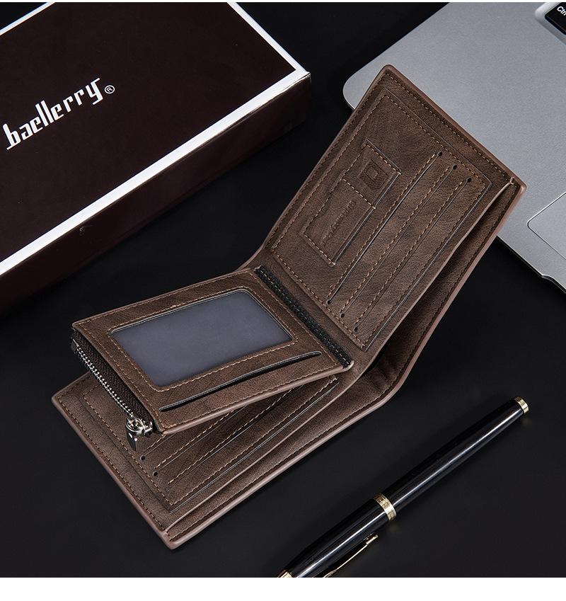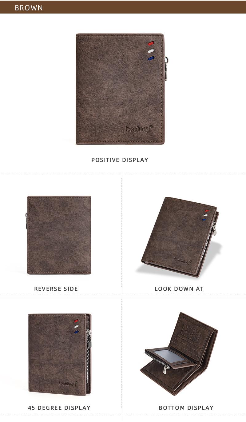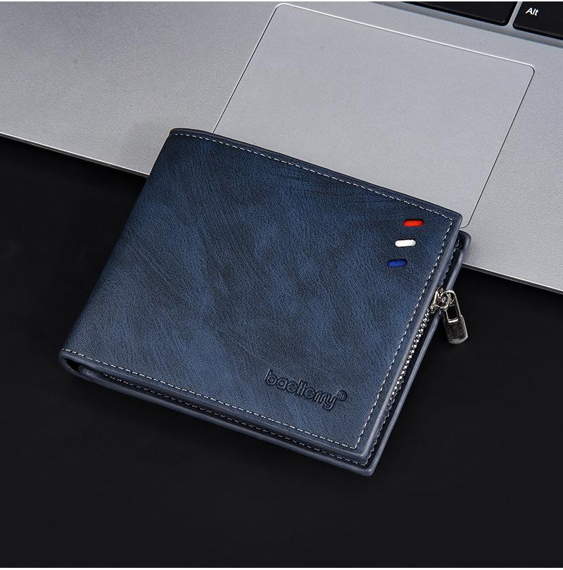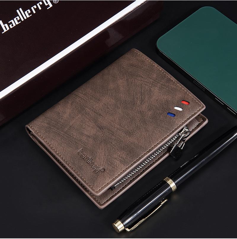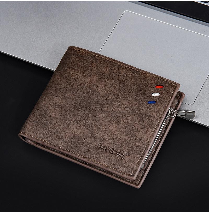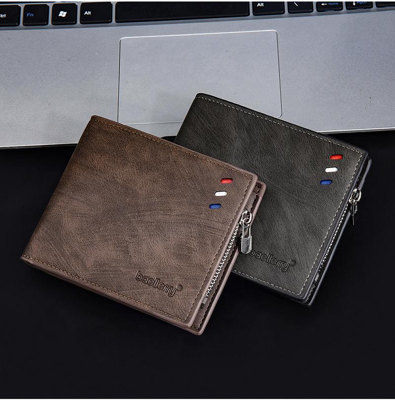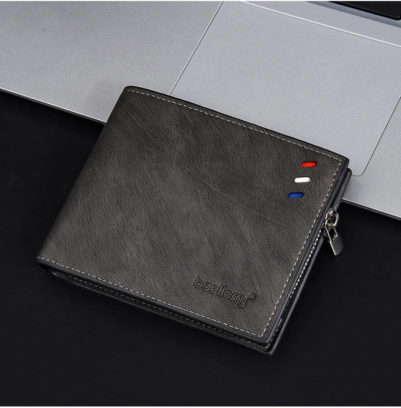 Nova carteira curta masculina baellerry cross-border retro multi-cartão carteira de couro de óleo bolsa de moedas com zíper duplo
