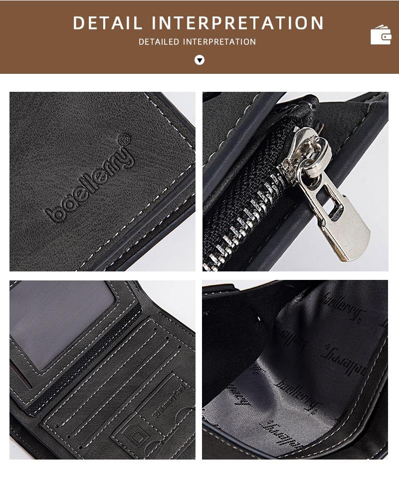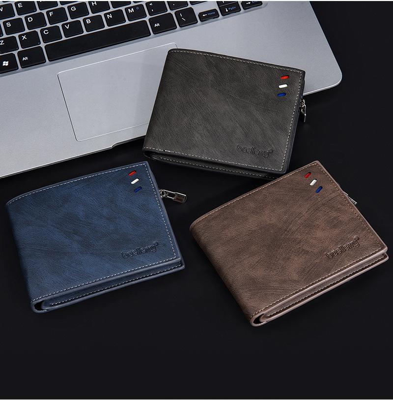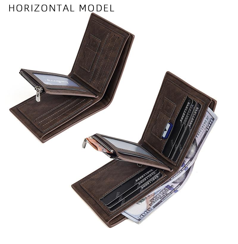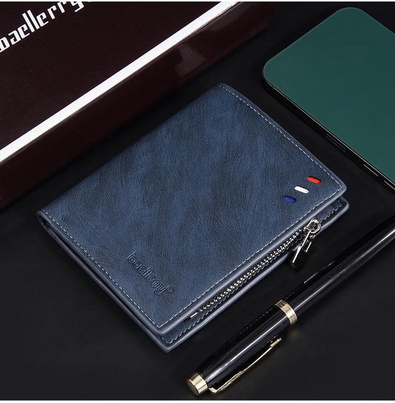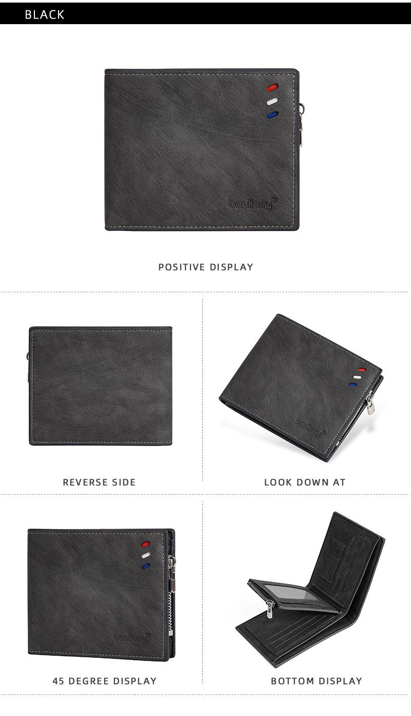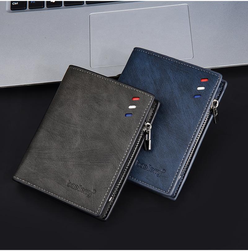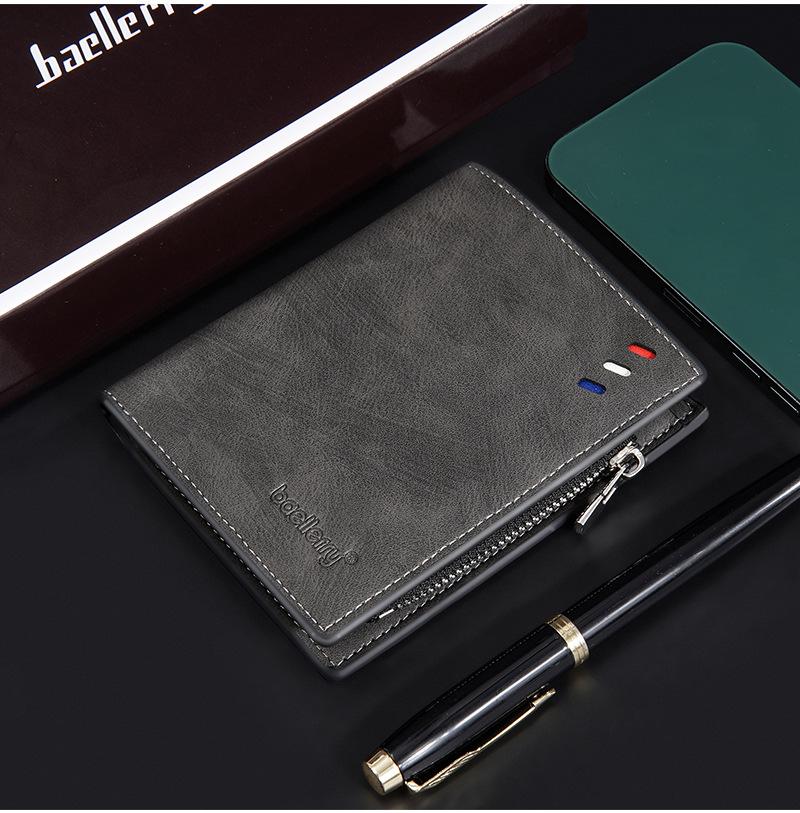 Nova carteira curta masculina baellerry cross-border retro multi-cartão carteira de couro de óleo bolsa de moedas com zíper duplo