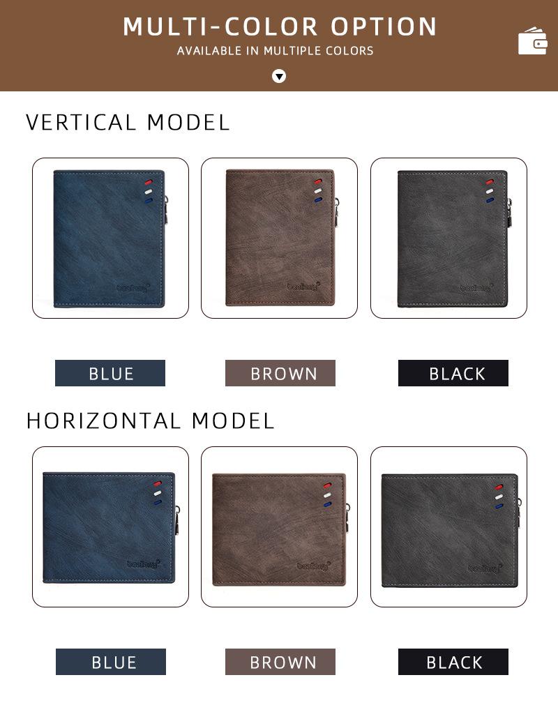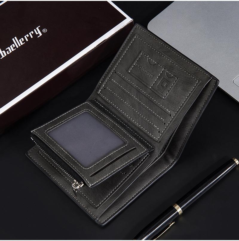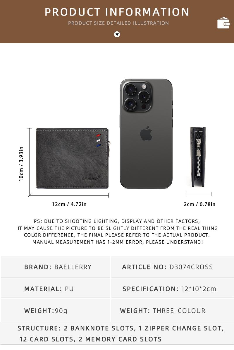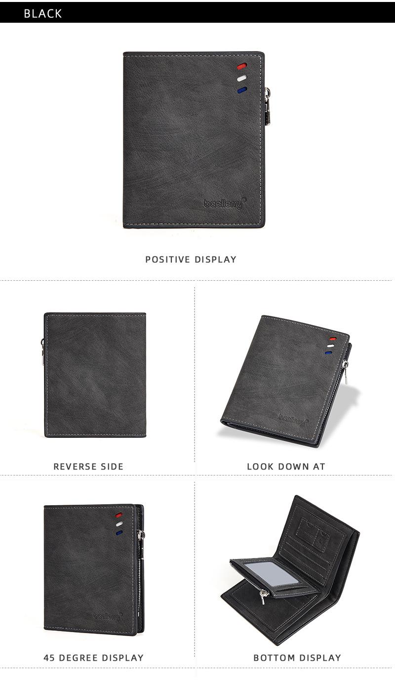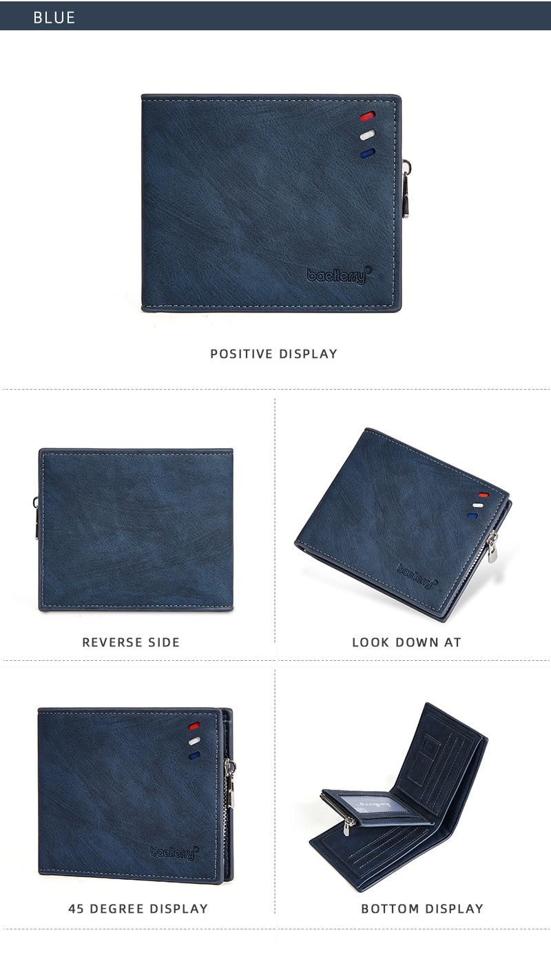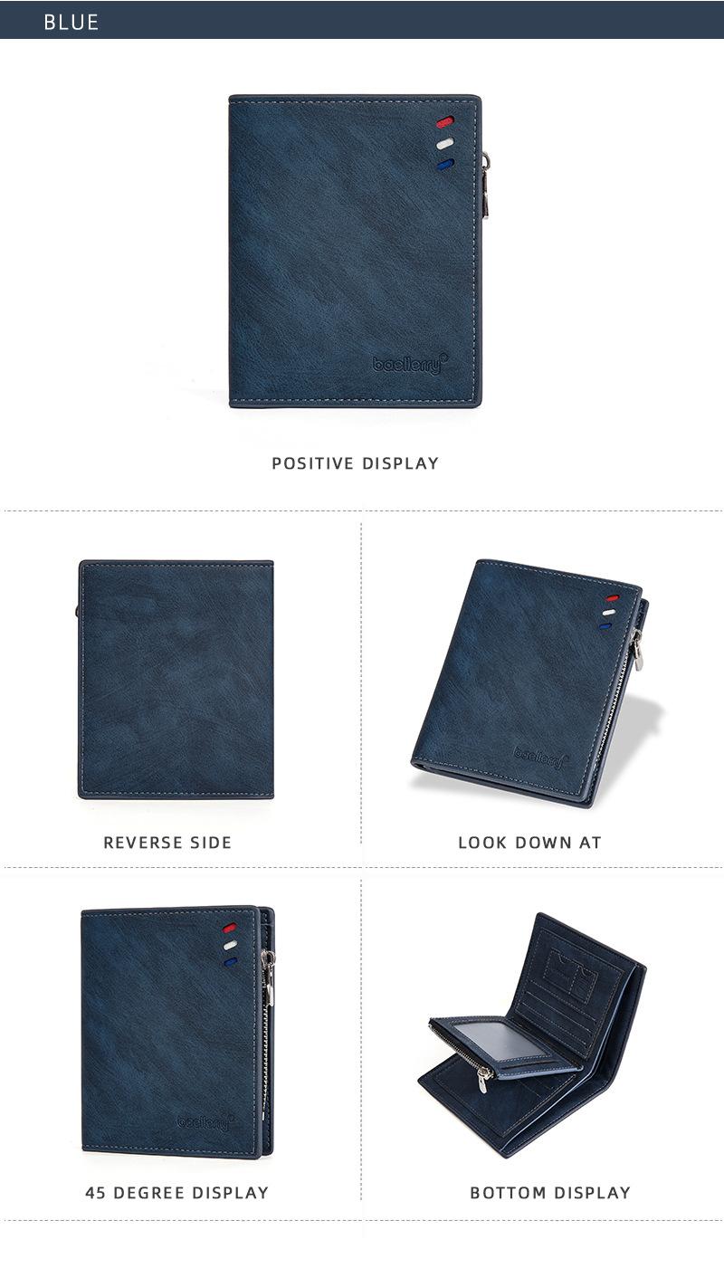 Nova carteira curta masculina baellerry cross-border retro multi-cartão carteira de couro de óleo bolsa de moedas com zíper duplo