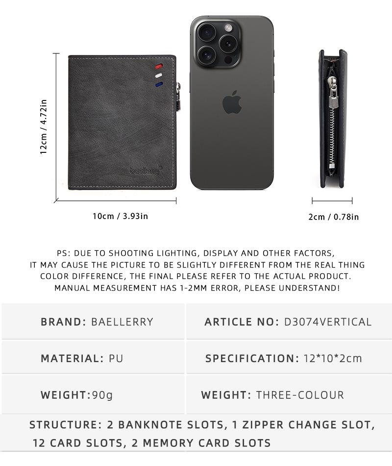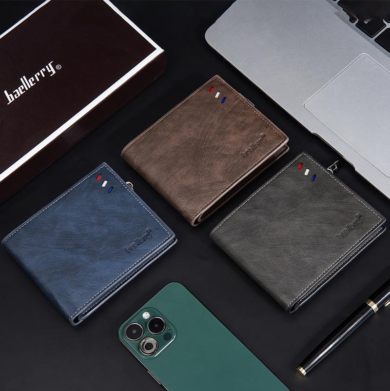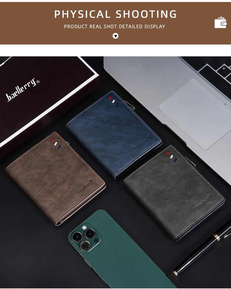 Carteira curta masculina transfronteiriça baellerry nova carteira com zíper triplo RFID empresarial simples porta-moedas