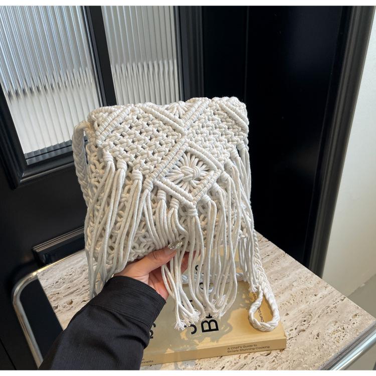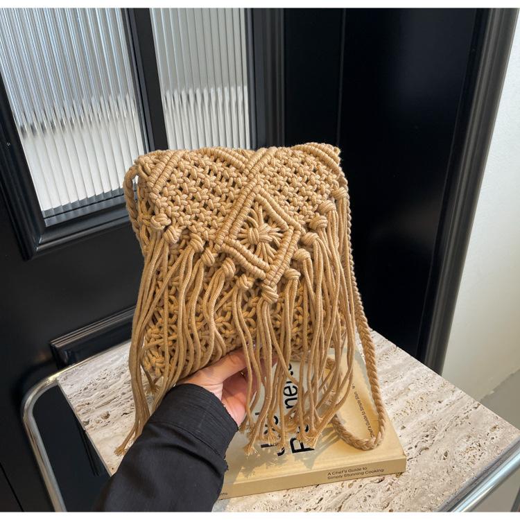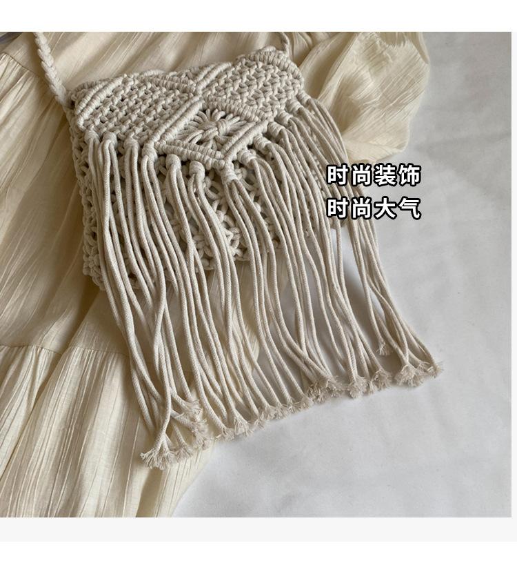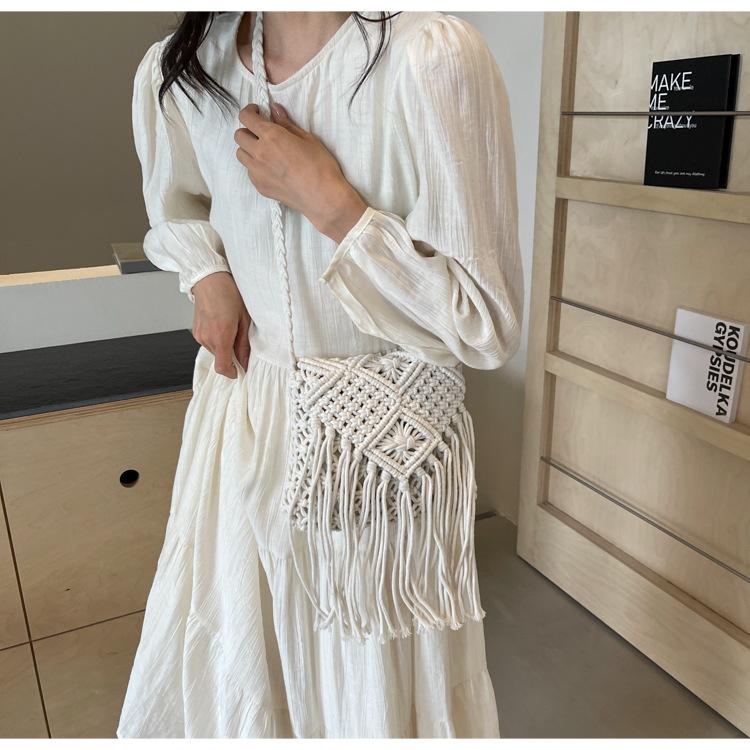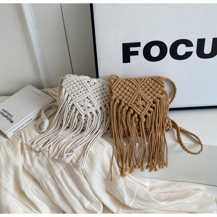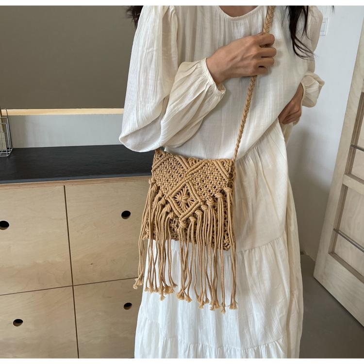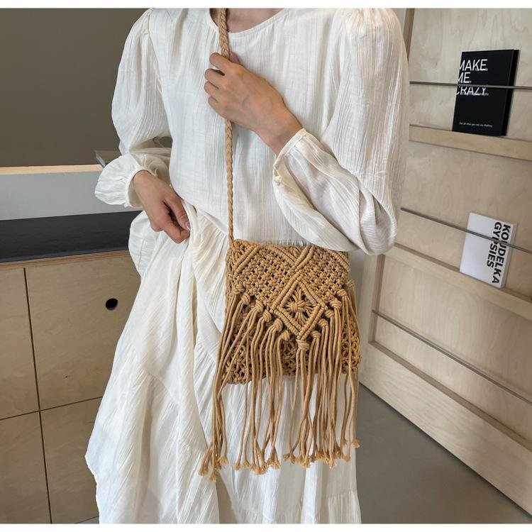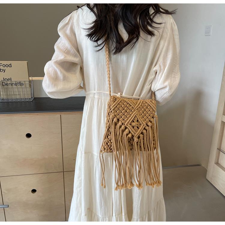 Bohemian Tassel Straw Woven Bag Tecido Pequeno Quadrado Bag Ombro Único Crossbody Bag Seaside Holiday Beach Bag Novo