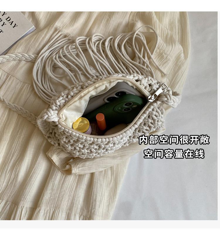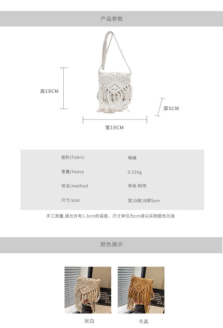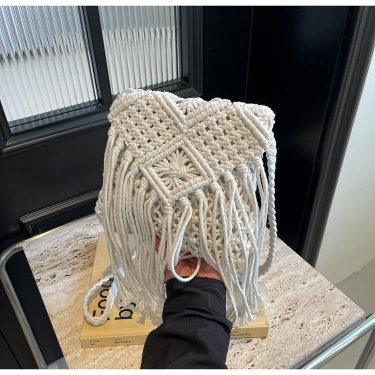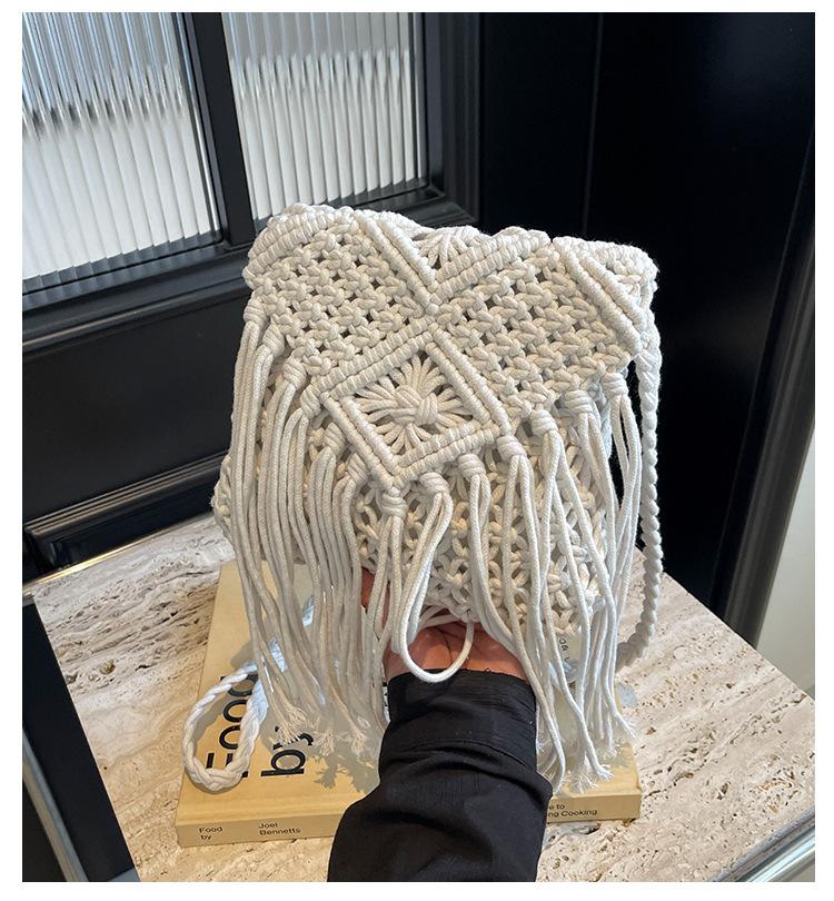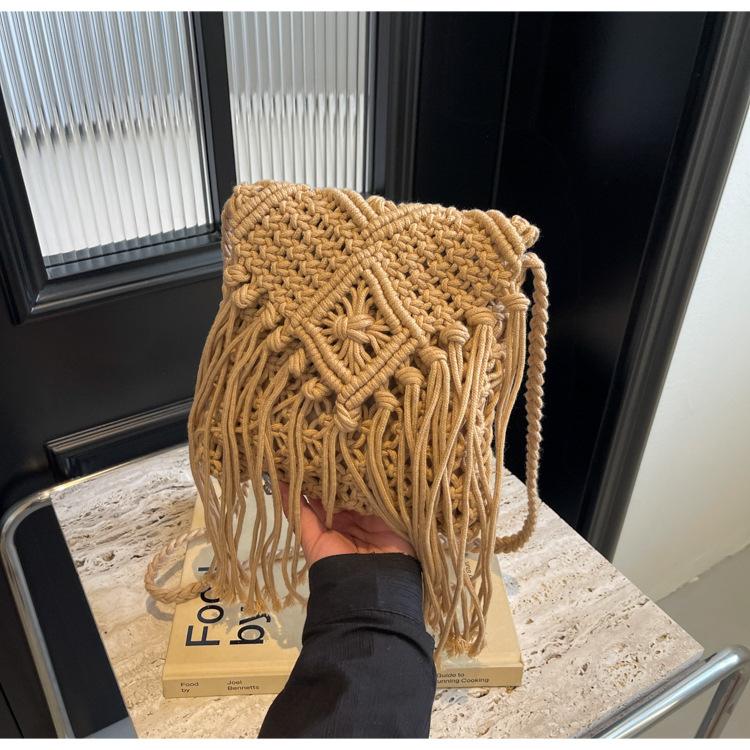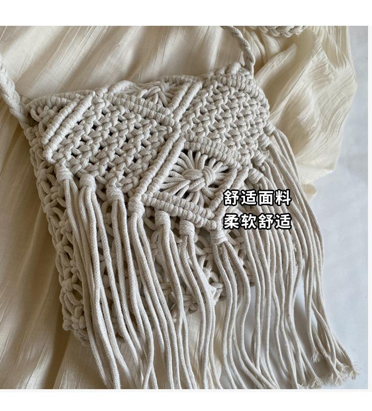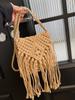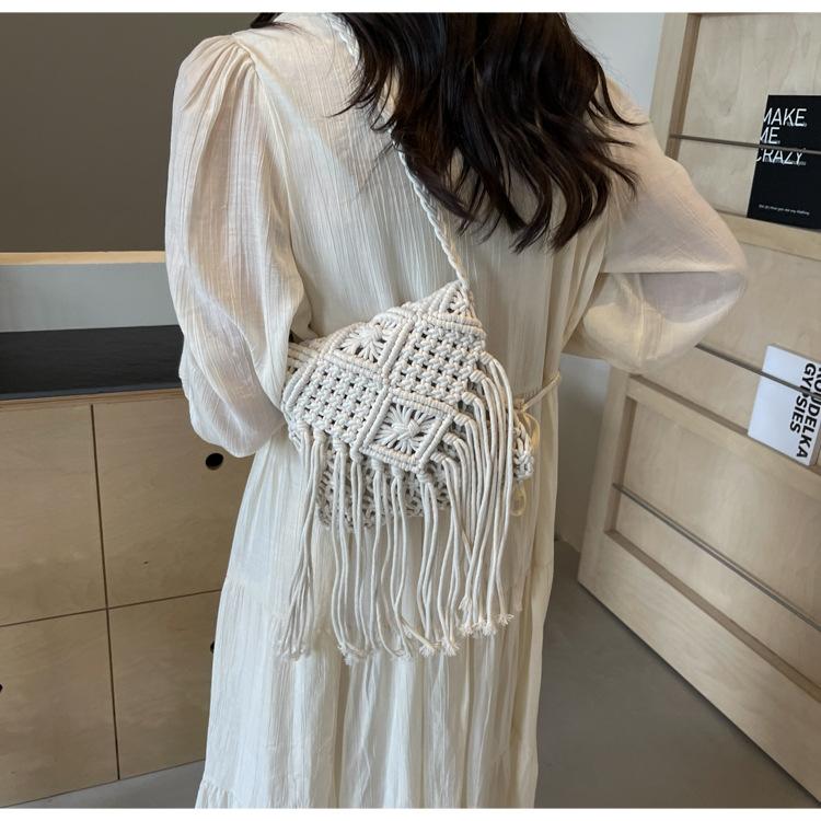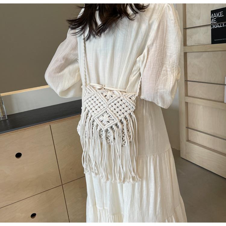 Bohemian Tassel Straw Woven Bag Tecido Pequeno Quadrado Bag Ombro Único Crossbody Bag Seaside Holiday Beach Bag Novo