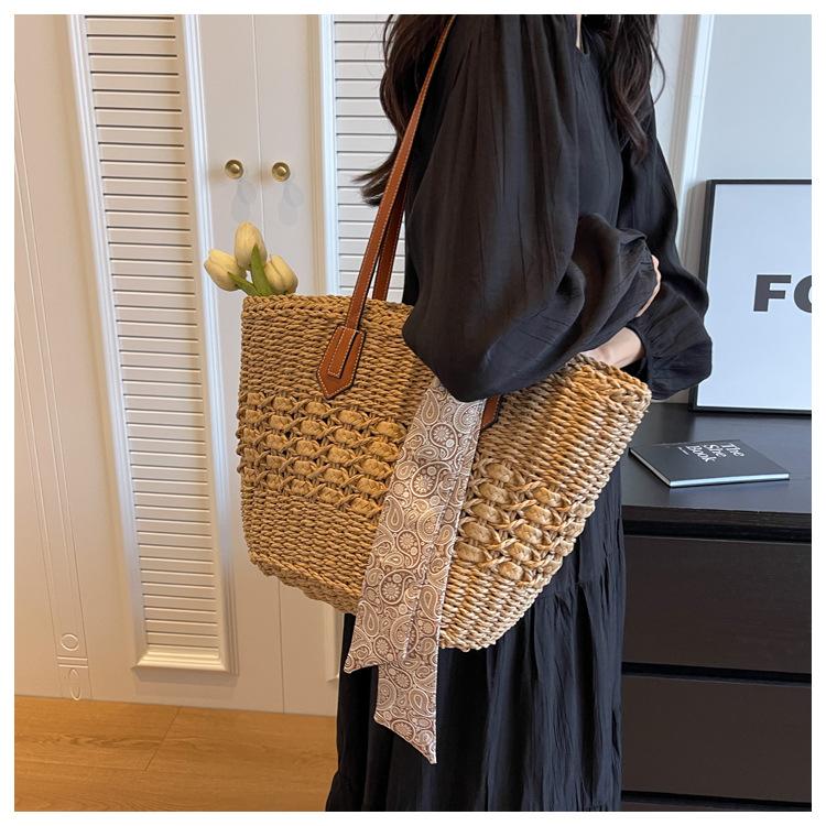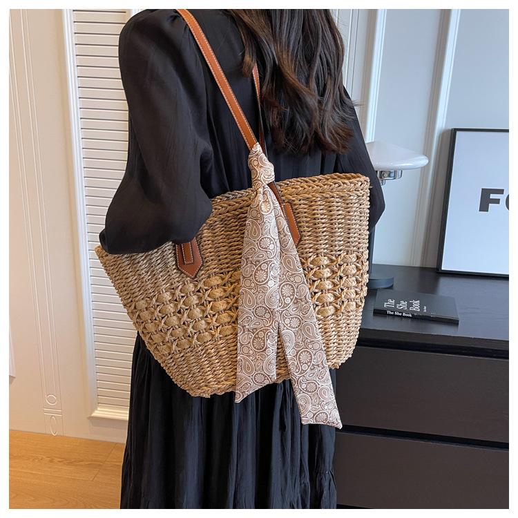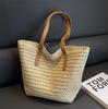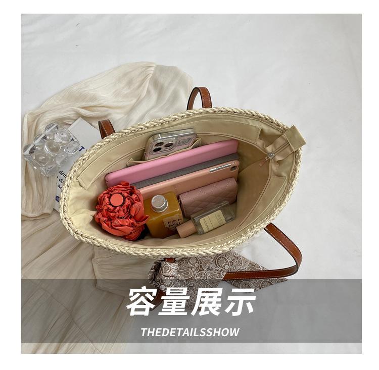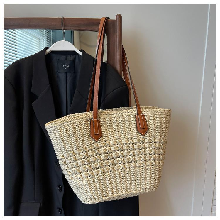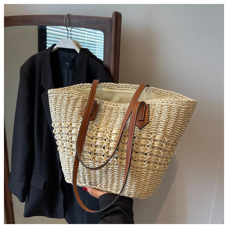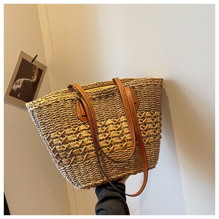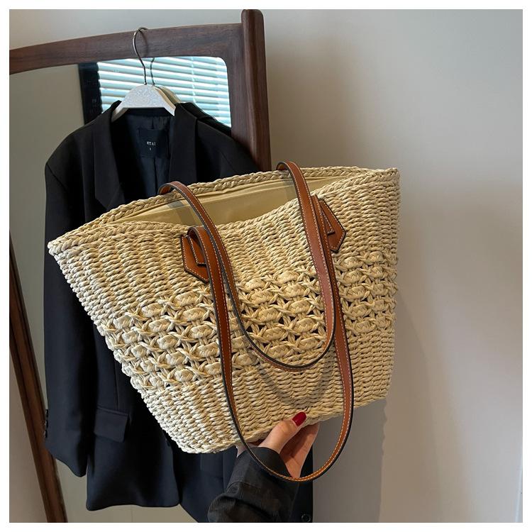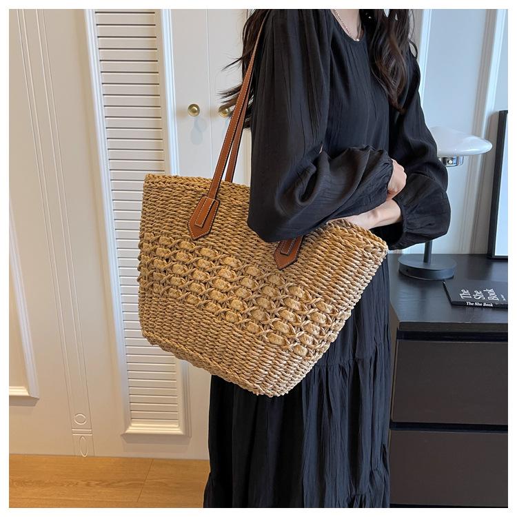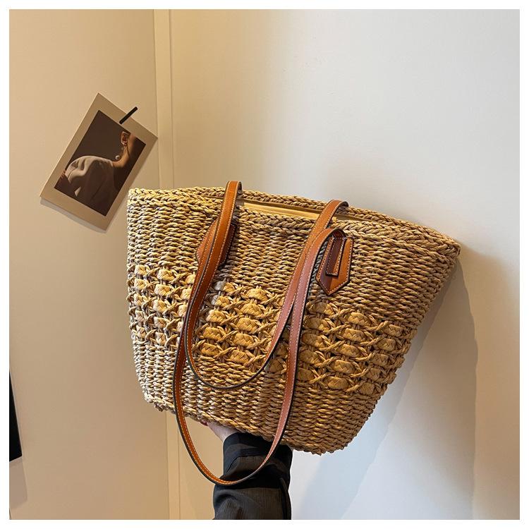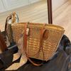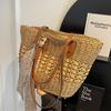 Bolsa de Palha Tecida para Mulheres de Grande Capacidade 2024 Nova Bolsa de Ombro All-Match Bolsa de Viagem Francesa Férias à Beira-Mar
