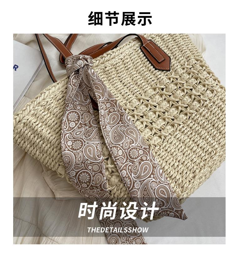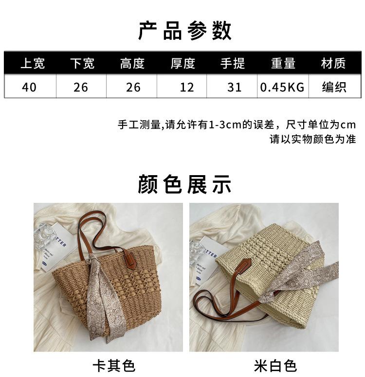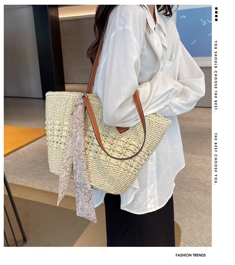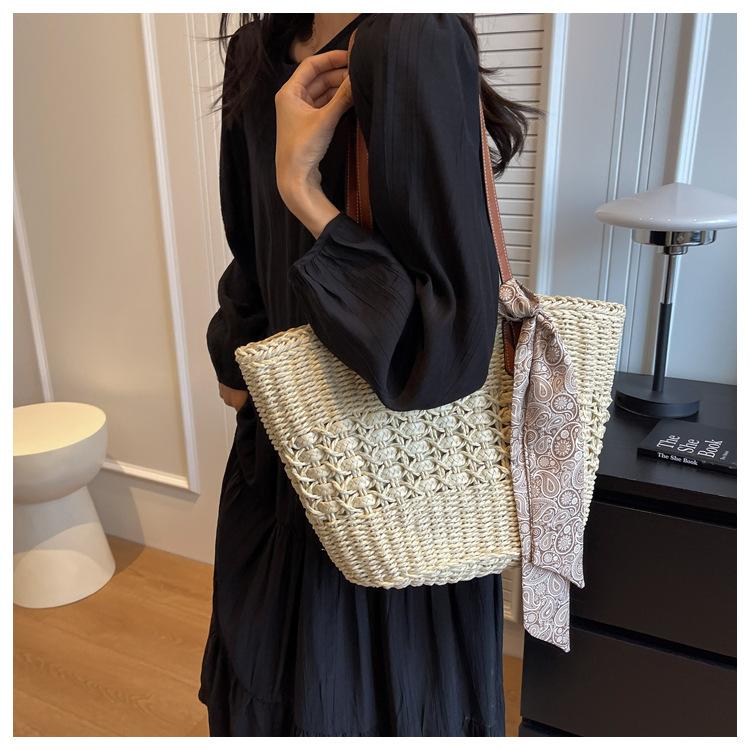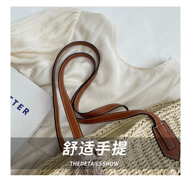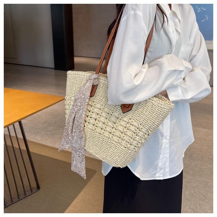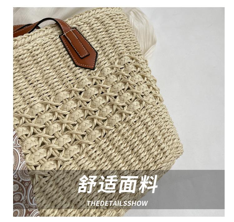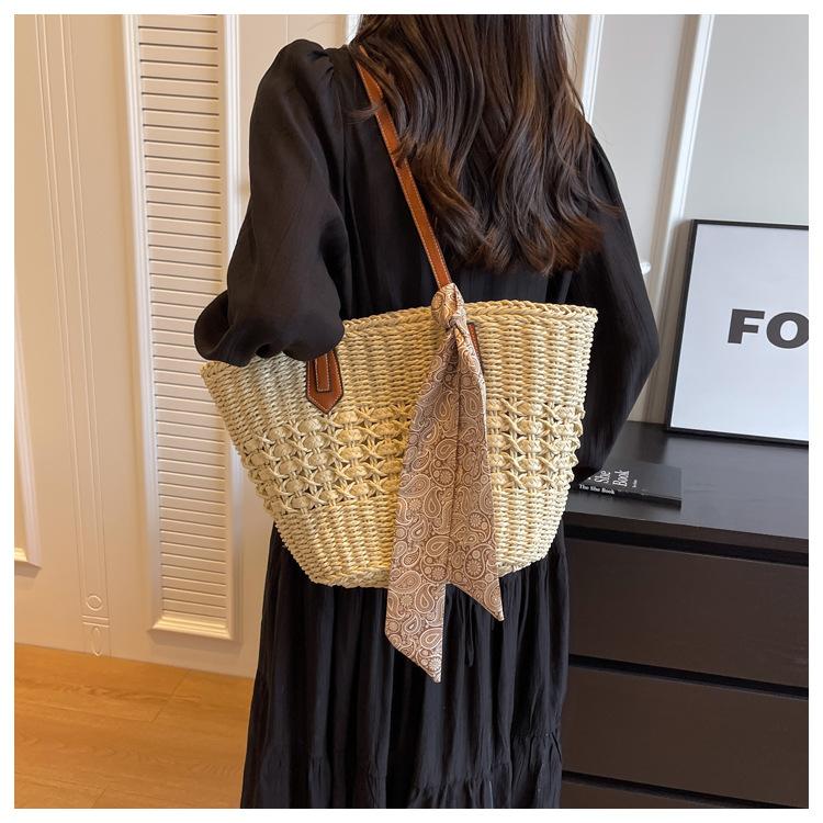 Bolsa de Palha Tecida para Mulheres de Grande Capacidade 2024 Nova Bolsa de Ombro All-Match Bolsa de Viagem Francesa Férias à Beira-Mar