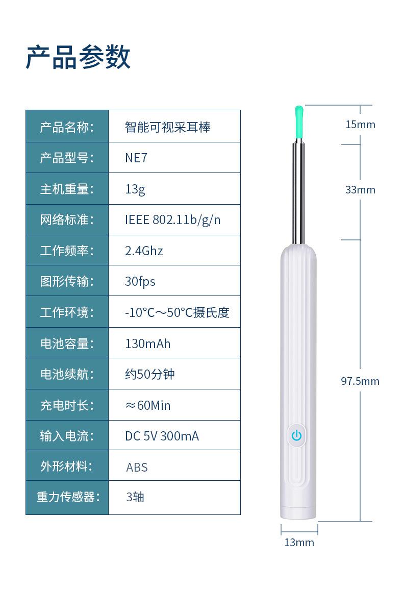 NE7 novo limpador de ouvido visual, bom preço e qualidade, até 50 minutos de duração da bateria,Qualidade estável, imagem nítida,Bem-vindo ao pedido!