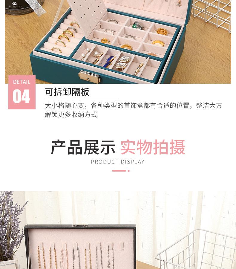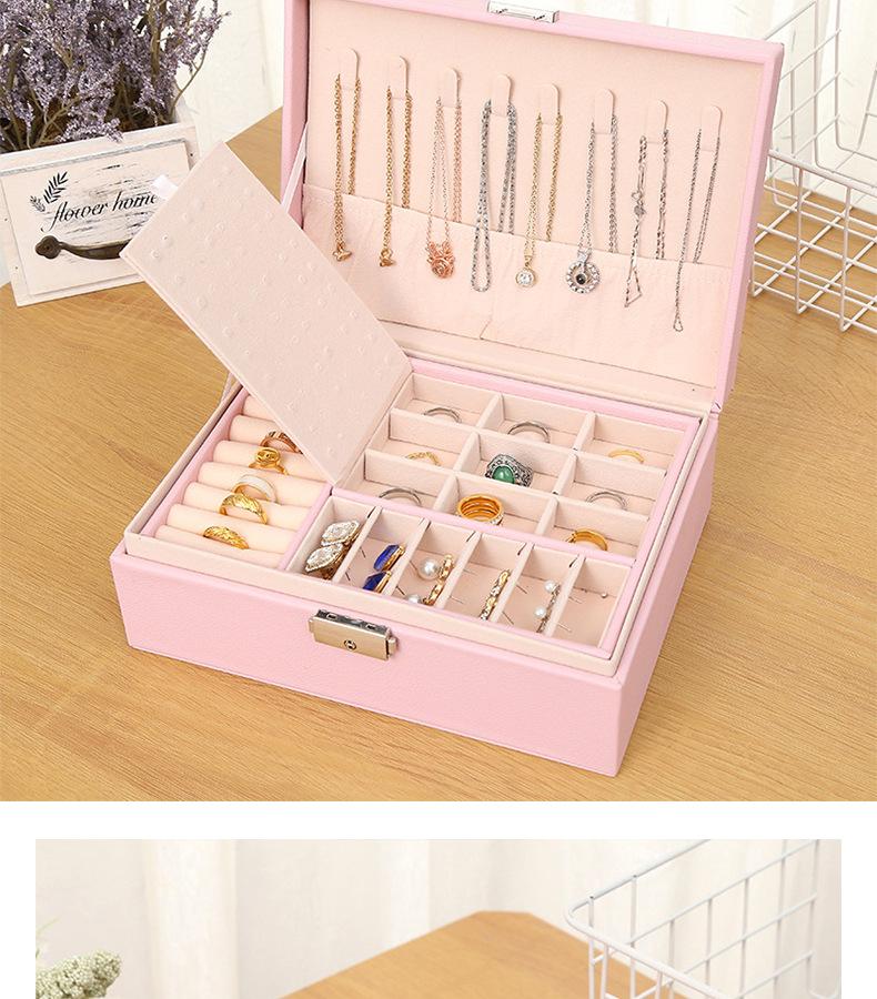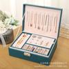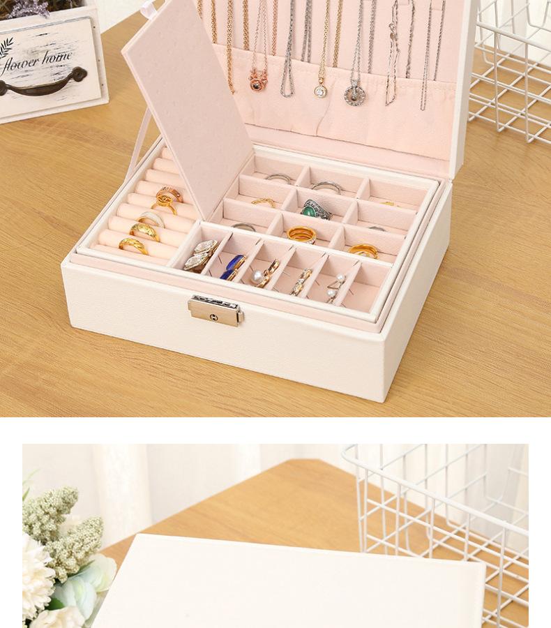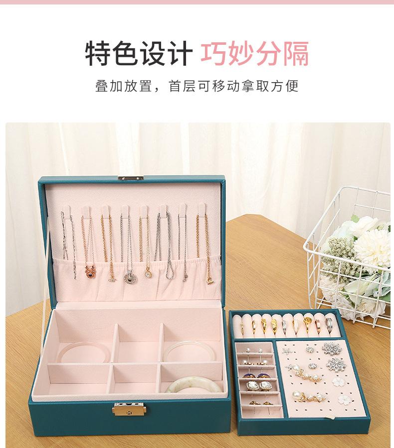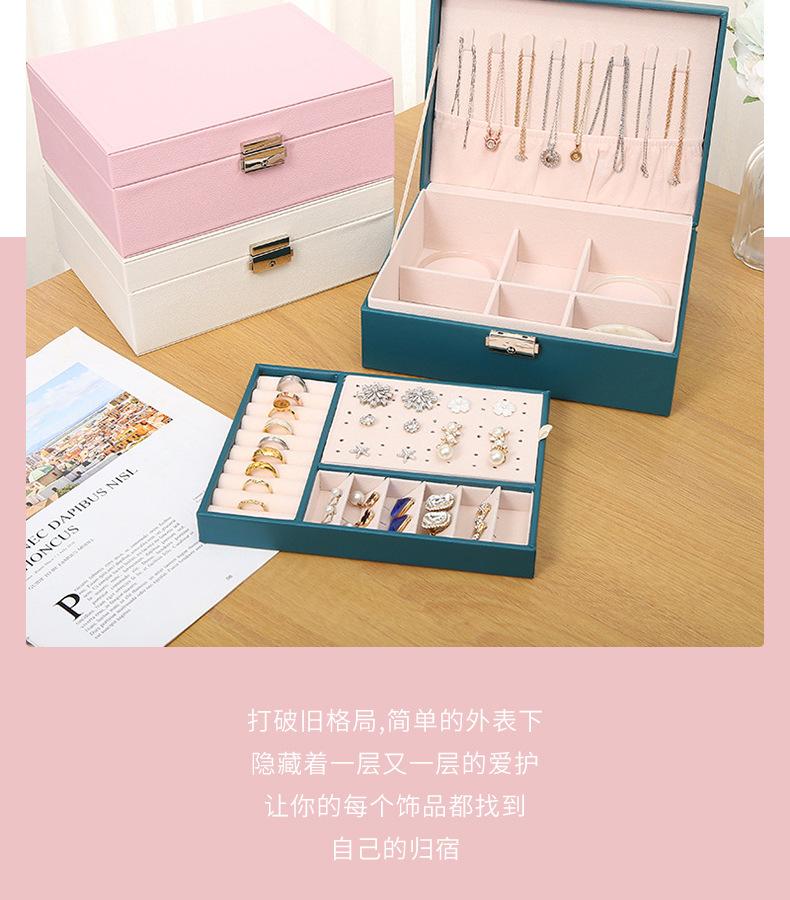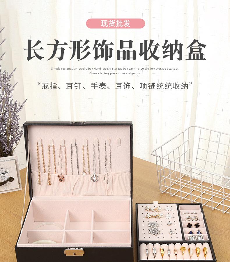Caixa Criativa de Armazenamento de Joias de Grande Capacidade Caixa de Joias Simples de Couro PU de Camada Dupla Artesanatos Caixa de Armazenamento de Colares e Anéis
