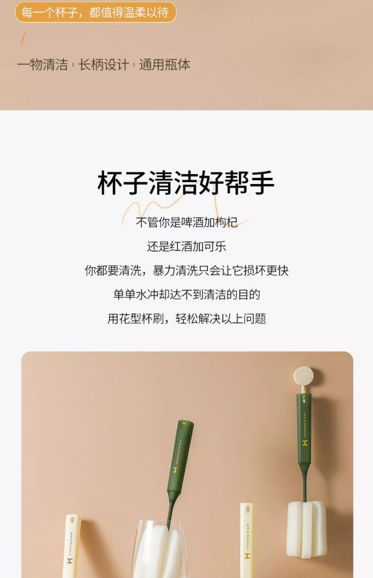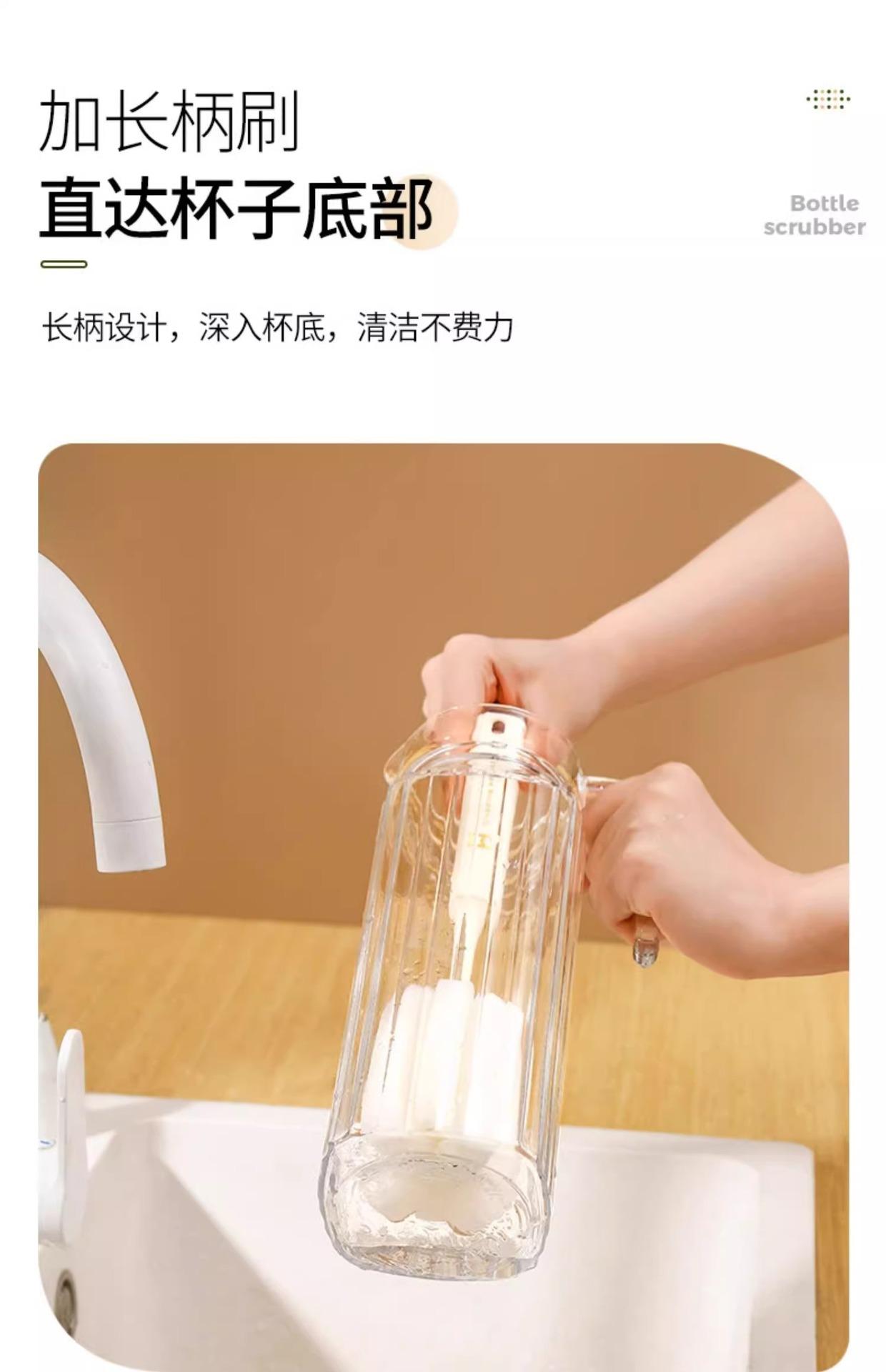 Escova de copo Alça longa sem ângulo morto Copo de lavagem doméstica Artefato Garrafa de leite Escova de limpeza Xícara de chá Escova Pote Esponja Escova