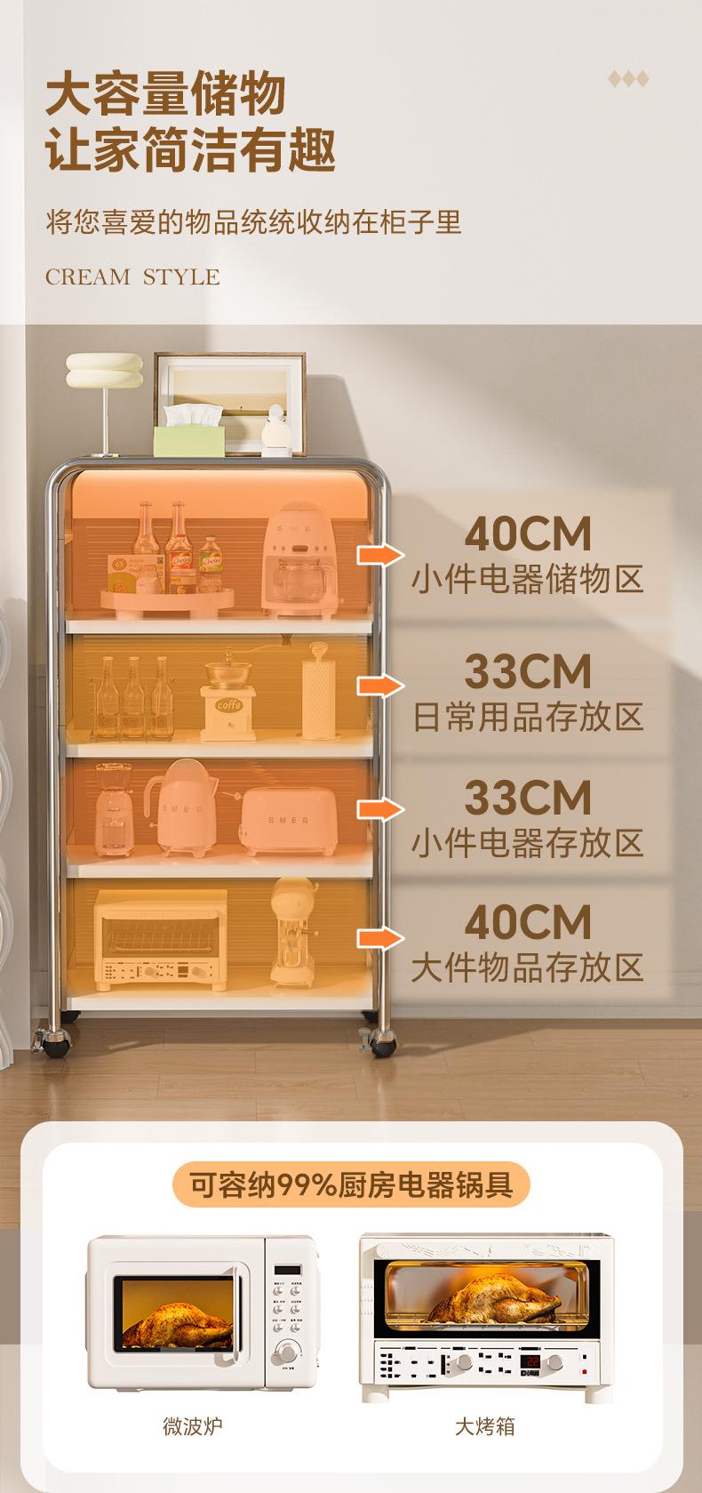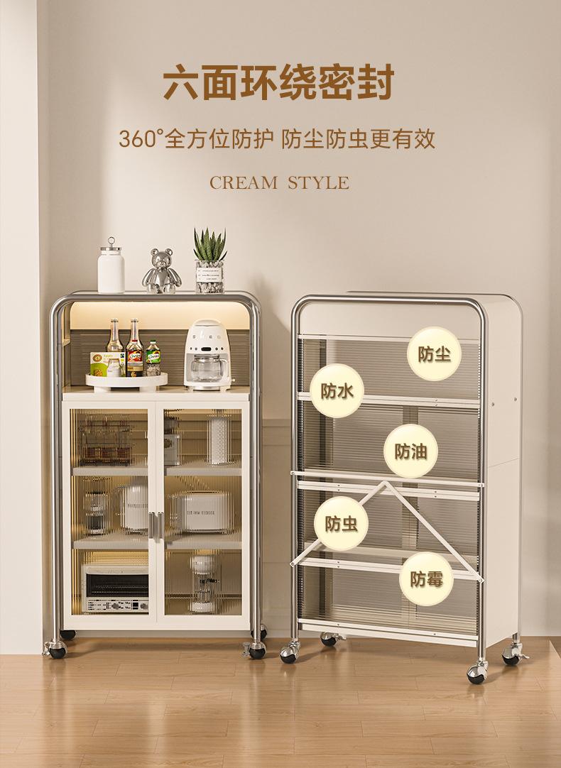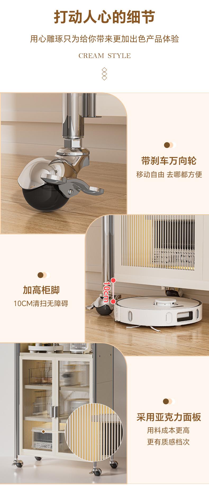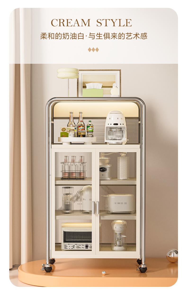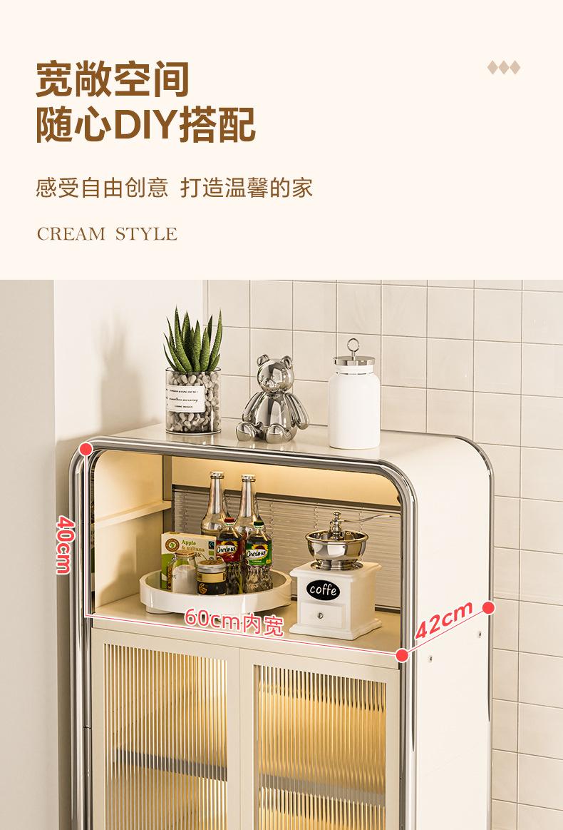 Rack de cozinha estilo creme, armário de tigela multicamadas, aparador de chão doméstico, armário de armazenamento multifuncional, armário de armazenamento