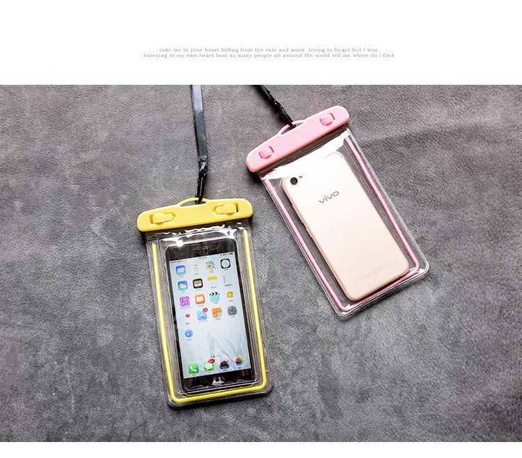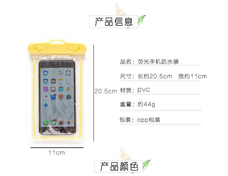 White luminous waterproof mobile phone bag, Yellow luminous waterproof mobile phone bag, Purple luminous water...
