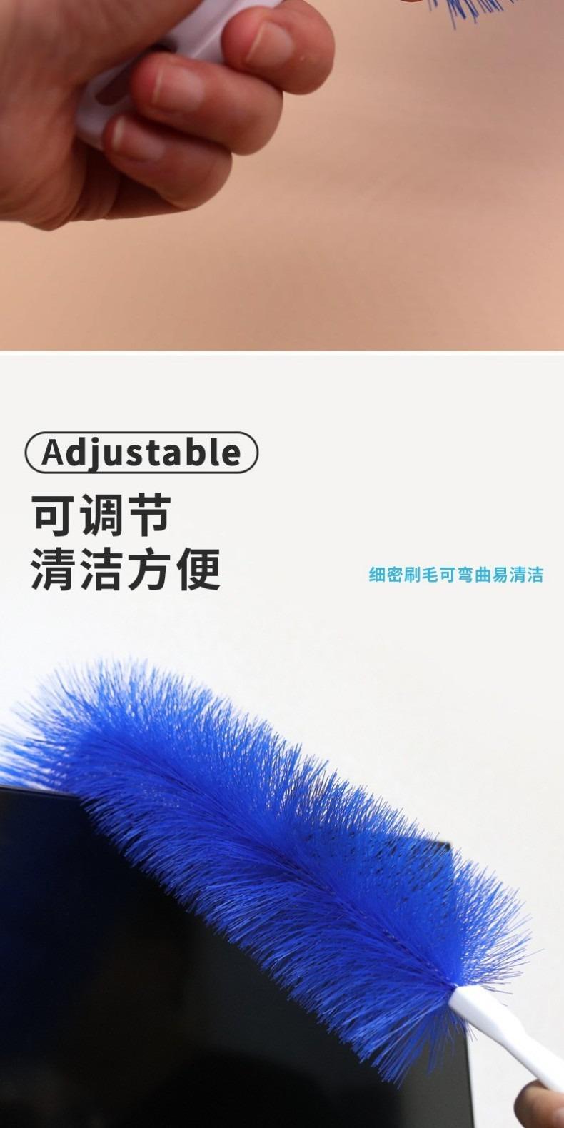 Escova de limpeza de ventilador multifuncional cabo longo pêlos macios sem dobra espanador de penas limpeza de poeira doméstica escova de remoção de poeira