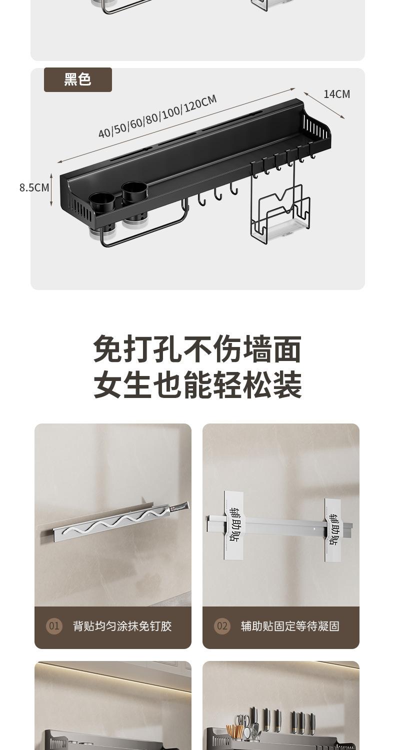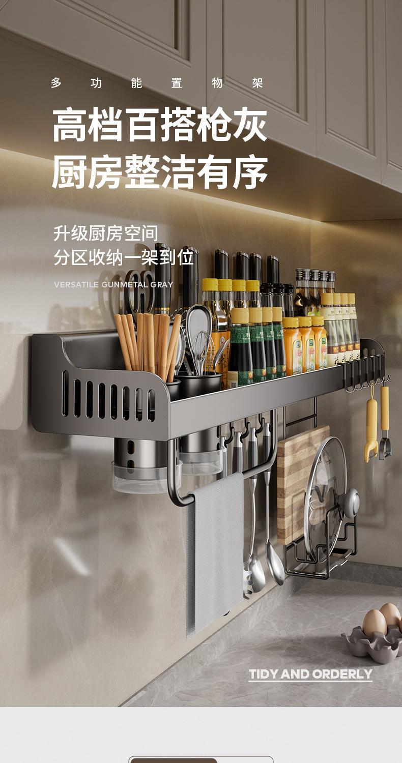 Compre Rack de temperos de cozinha Rack de armazenamento sem perfuração Rack de armazenamento de temperos multifuncional de parede doméstico Cabide de rack de facas integrado no atacado no Joom.pro
