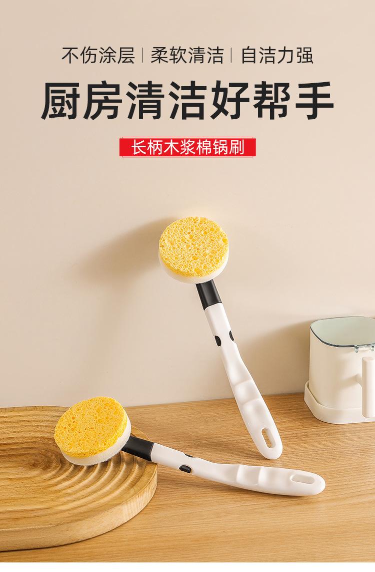Nome: Escova de algodão de polpa de madeira de cabo longo/Pacote de substituição de escova de algodão de polpa de madeira de cabo longo*3