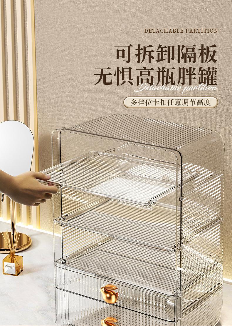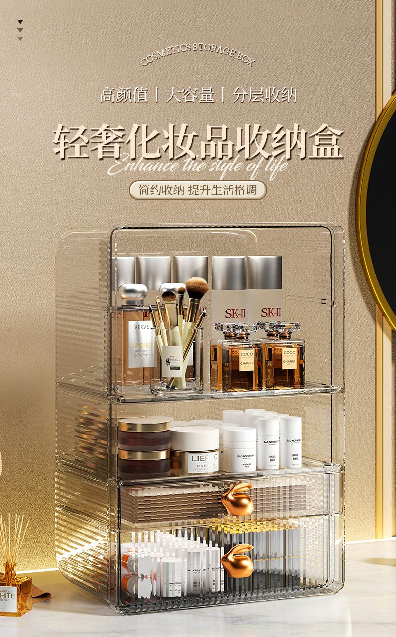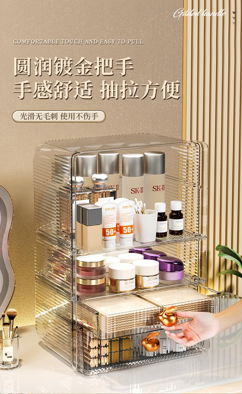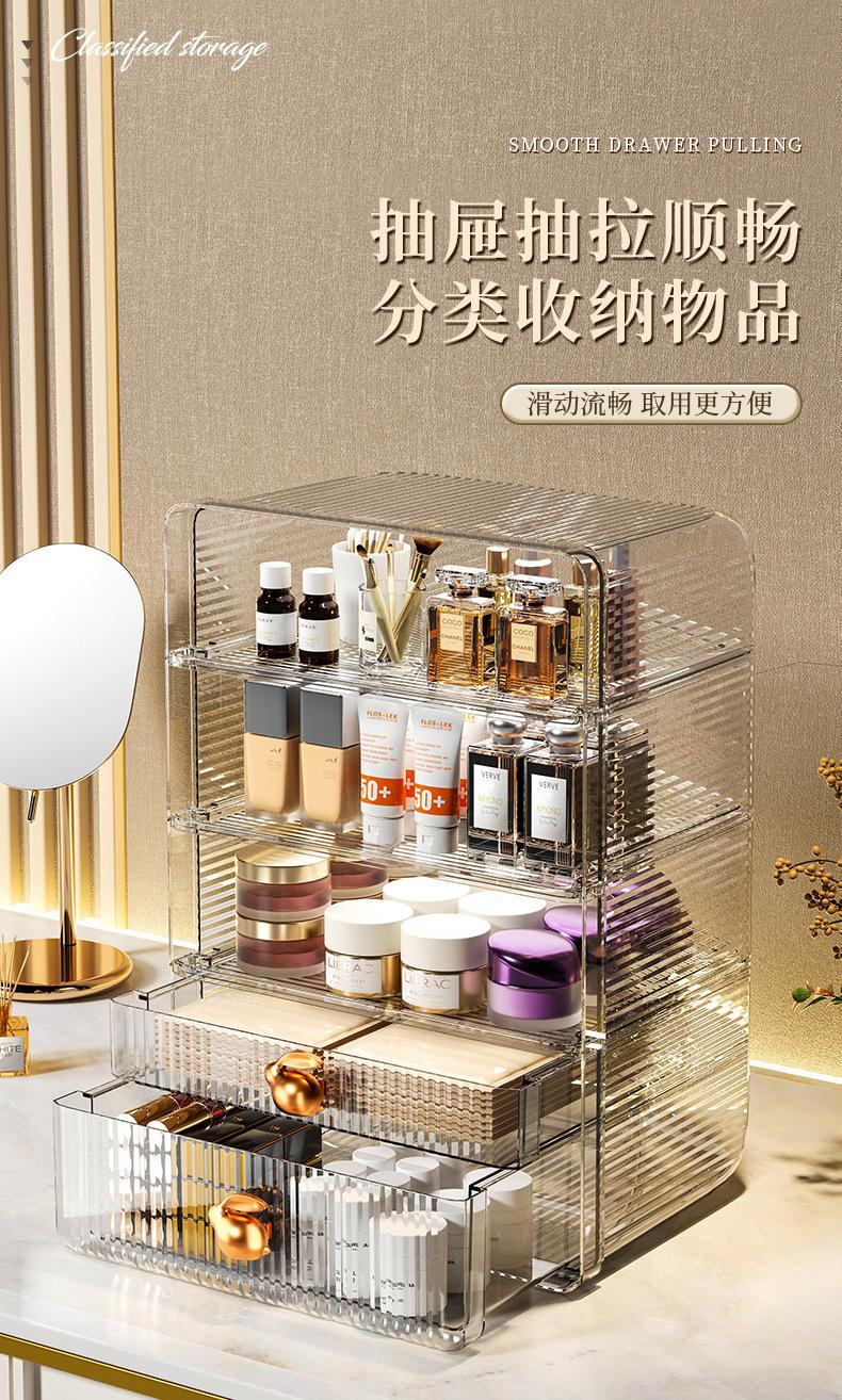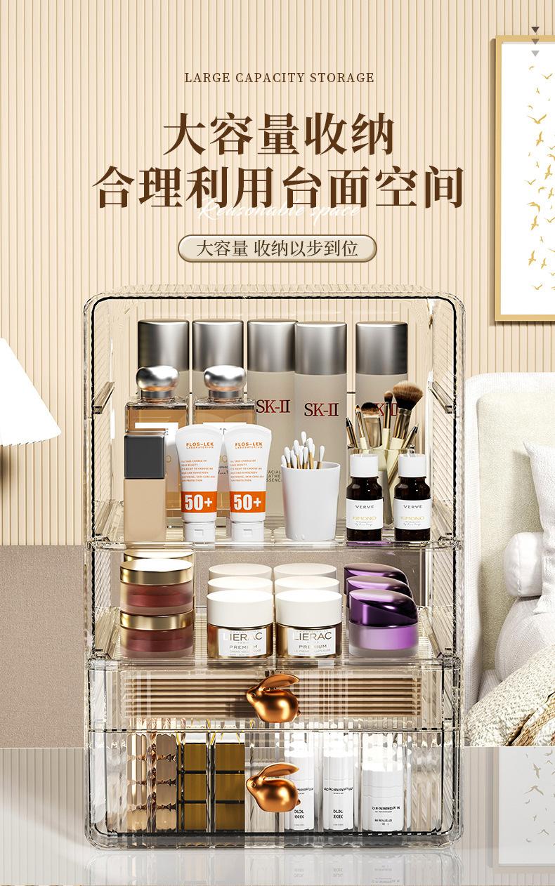 Armazenamento de cosméticos Caixa À prova de poeira Desktop Quarto Acabamento transparente Caixa Penteadeira Batom Rack de cuidados com a pele