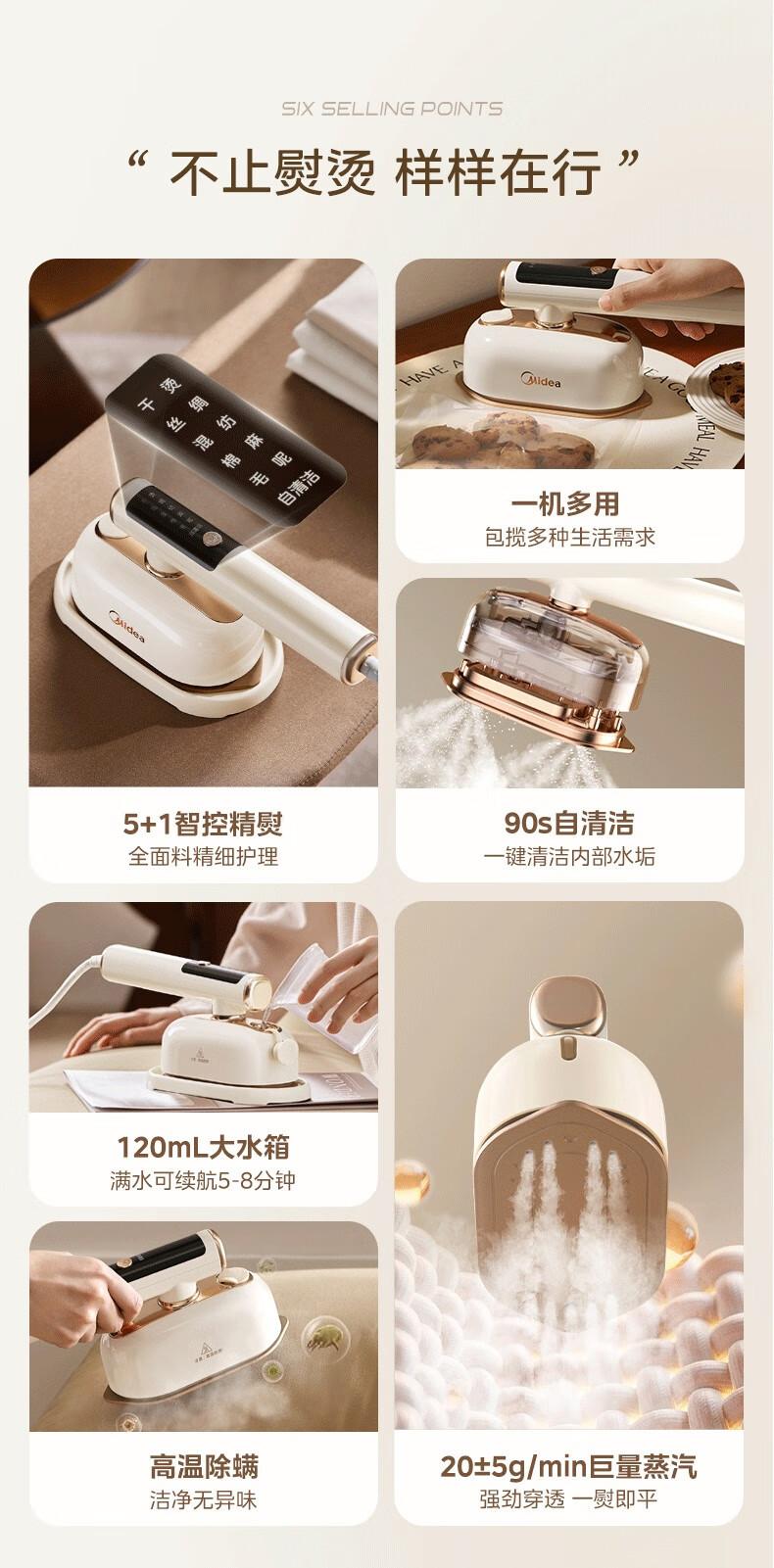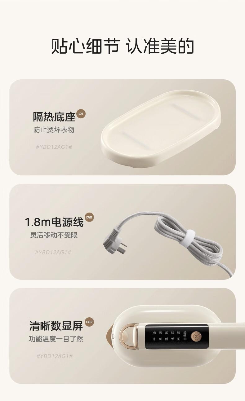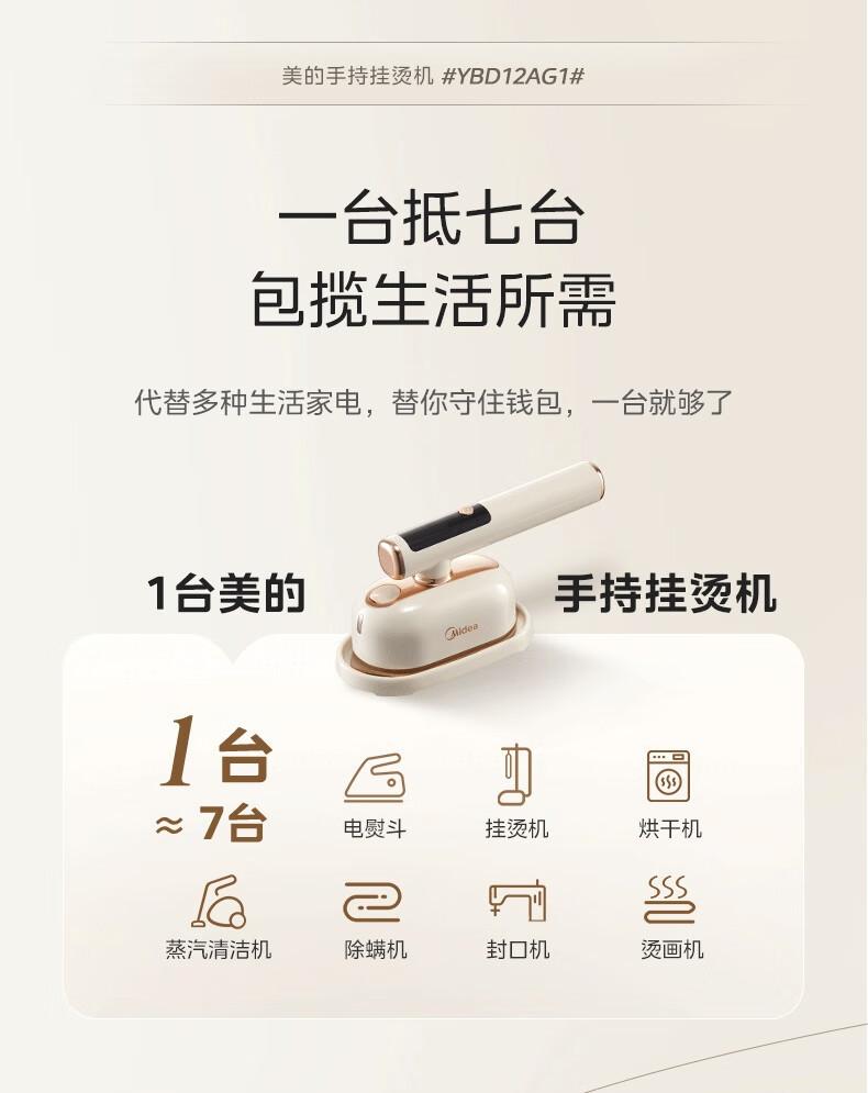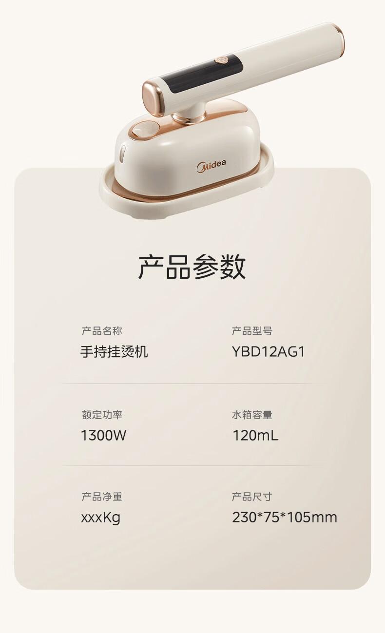 Midea YBD12AG1 Máquina de passar roupa portátil pendurada para uso doméstico, pequena máquina de passar roupa a vapor, máquina de passar roupa portátil