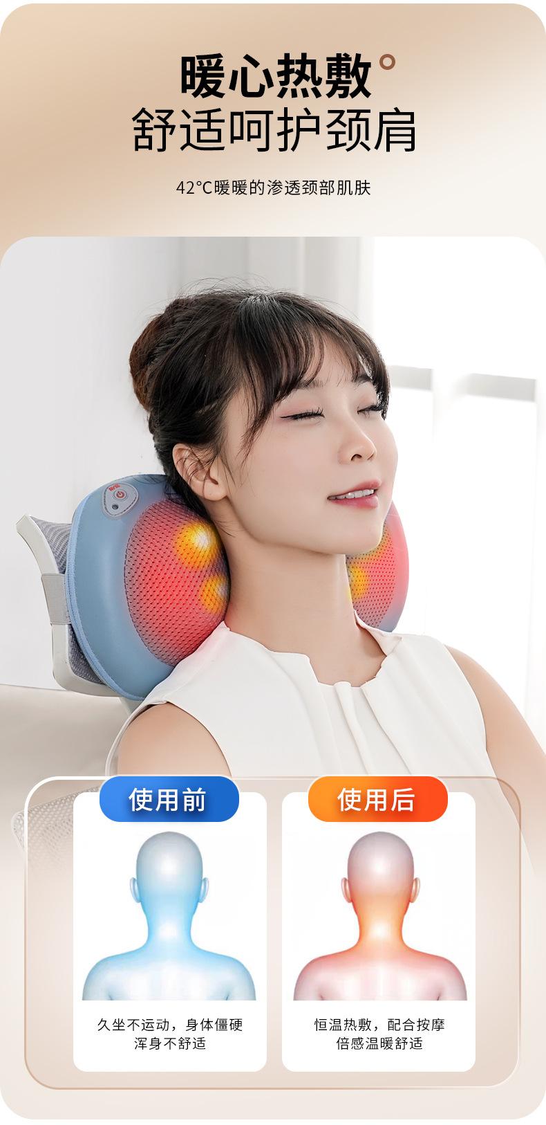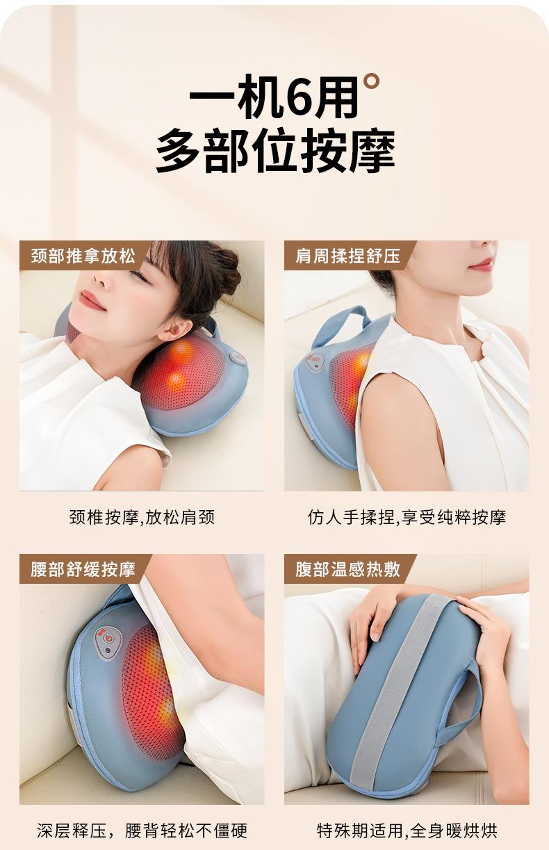 Massageador de coluna cervical Almofada de massagem de amassamento de pescoço Compressa quente multifuncional Ombro Cintura Almofada de carro doméstico elétrico
