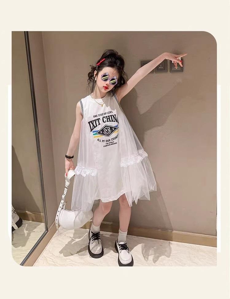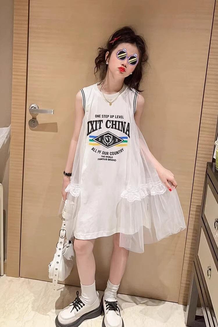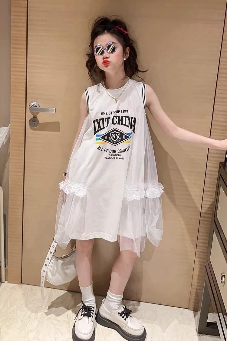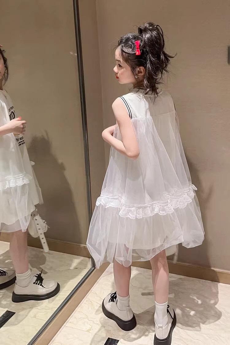Compre Vestido de malha para meninas Verão Estilo Ocidental Colete Princesa Saia Estilo Coreano Verão Branco T-Shirt Saia no atacado no Joom.pro