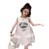 Vestido de malha para meninas Verão Estilo Ocidental Colete Princesa Saia Estilo Coreano Verão Branco T-Shirt Saia