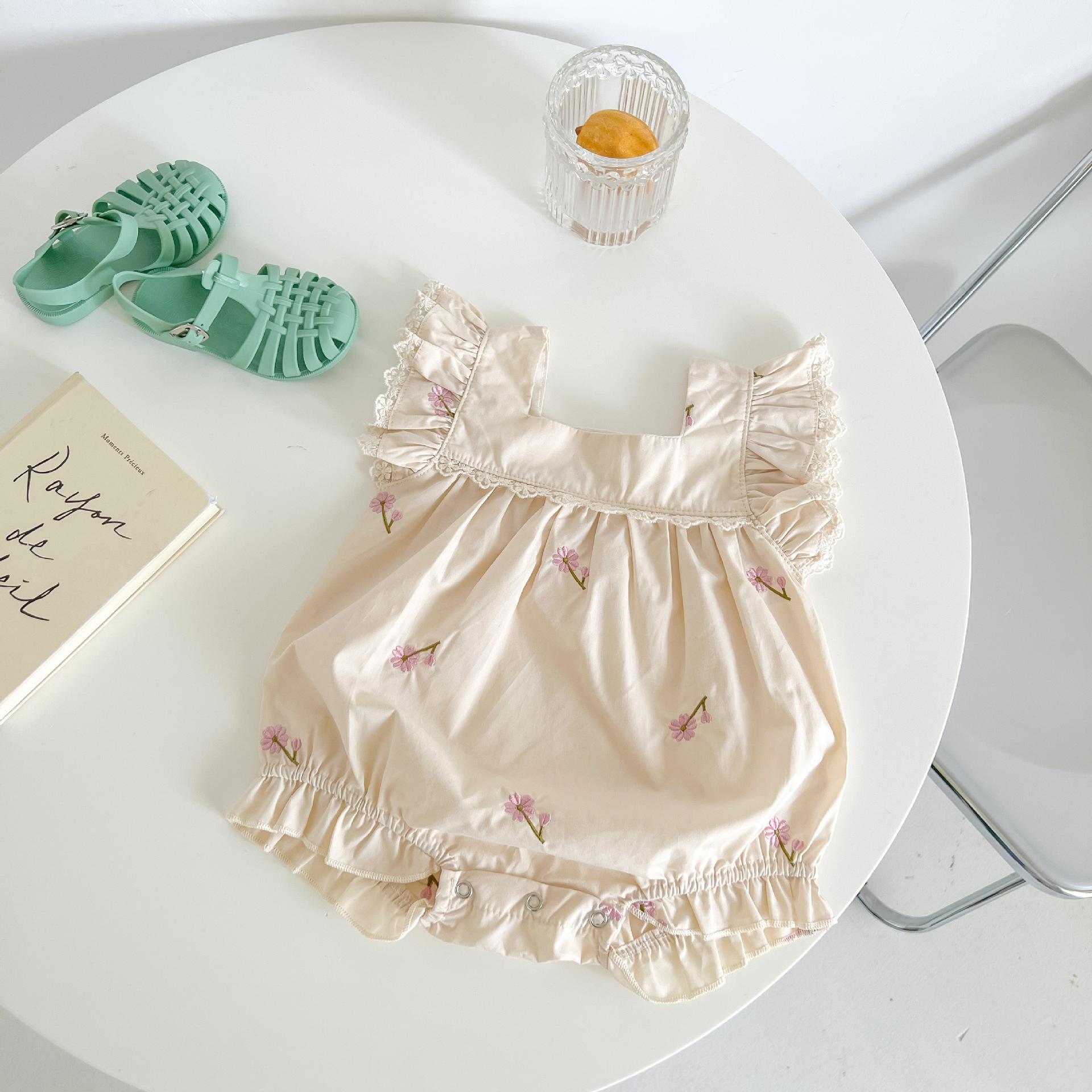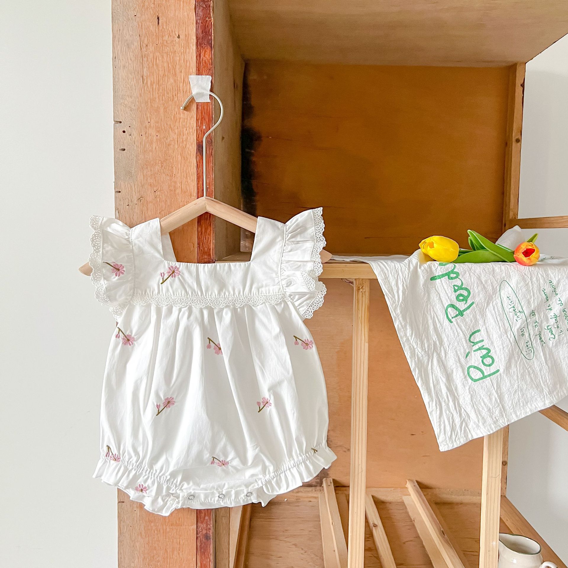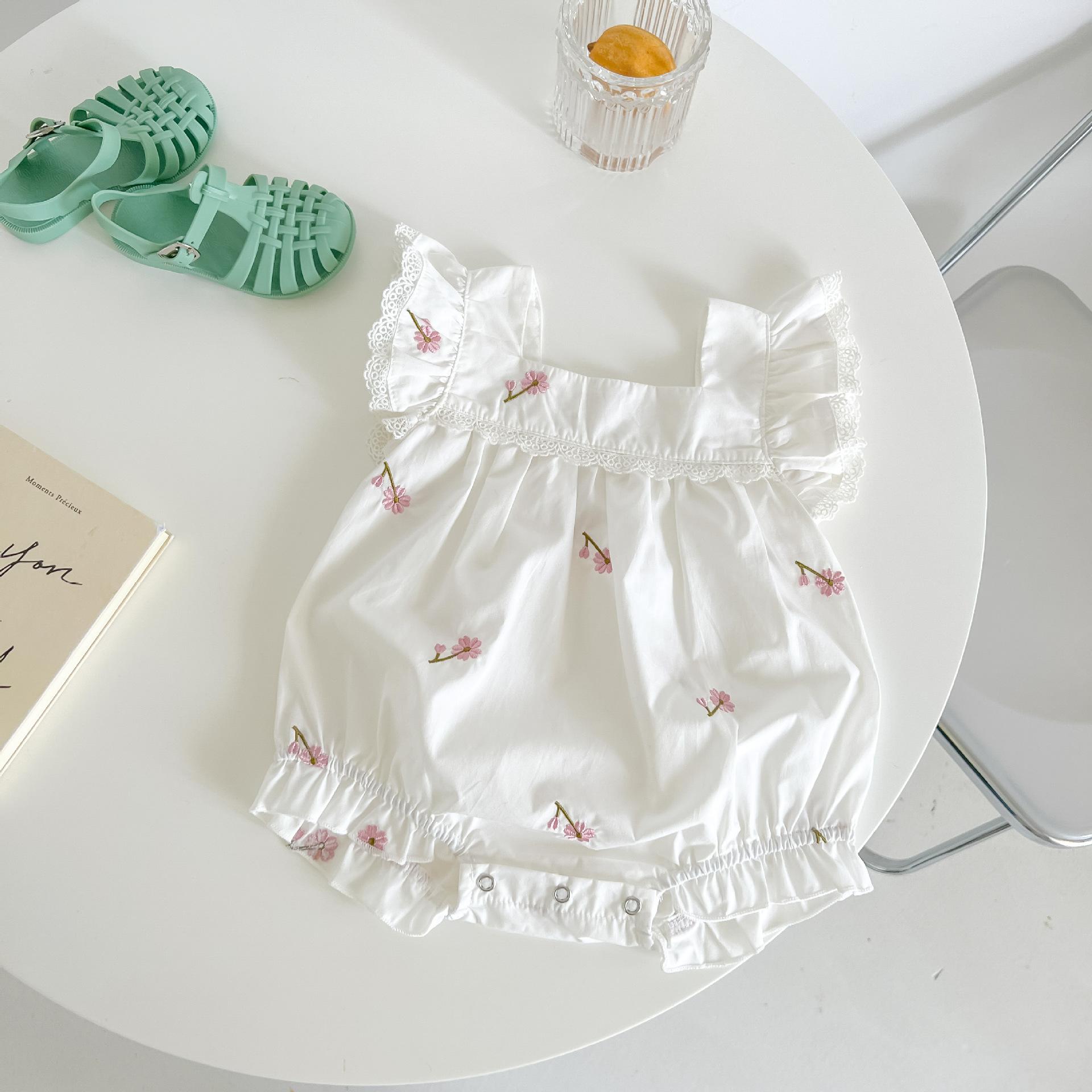 Roupas de bebê de verão estilo coreano para meninas de 1 a 3 anos de idade roupas corporais de manga voadora bordadas doces roupas de escalada