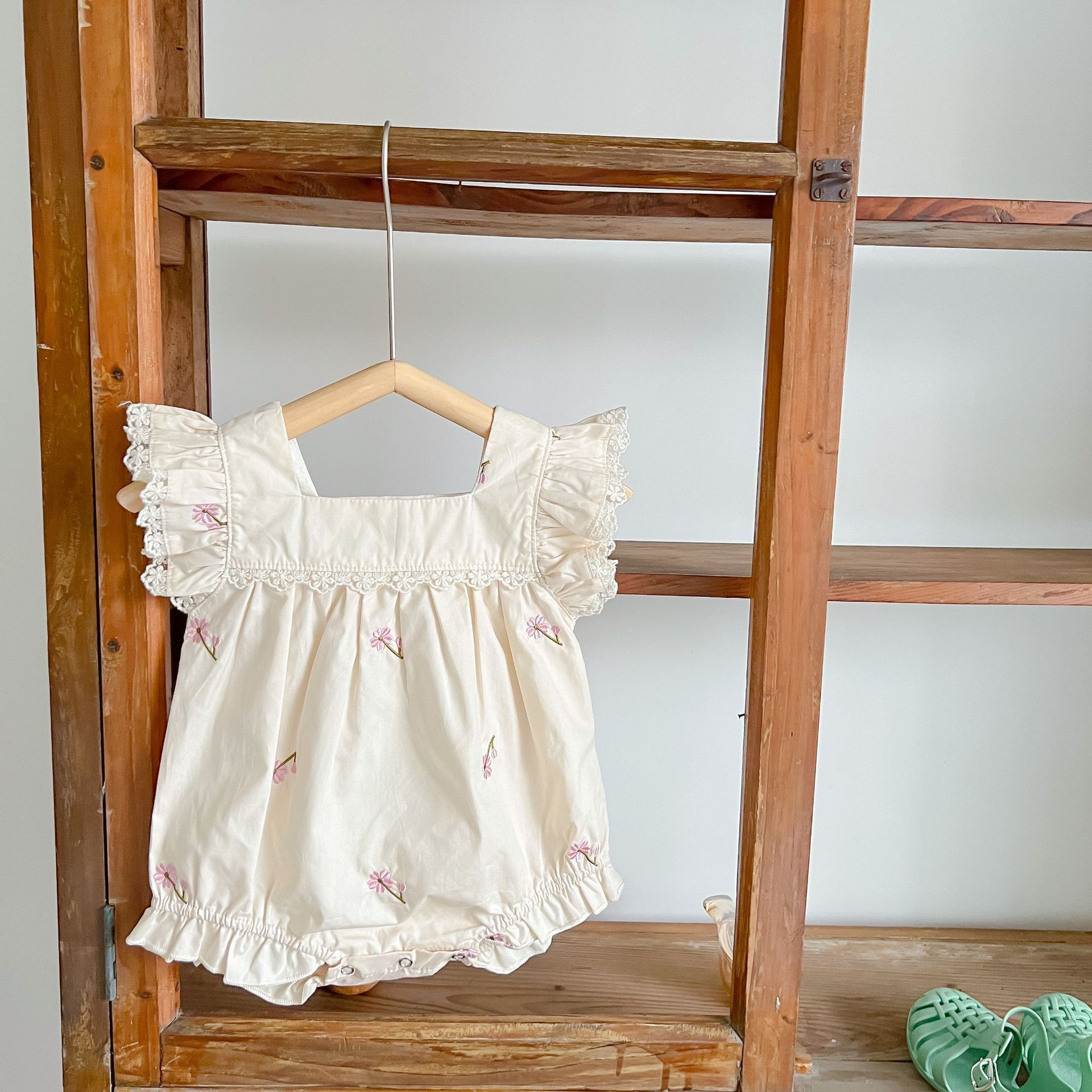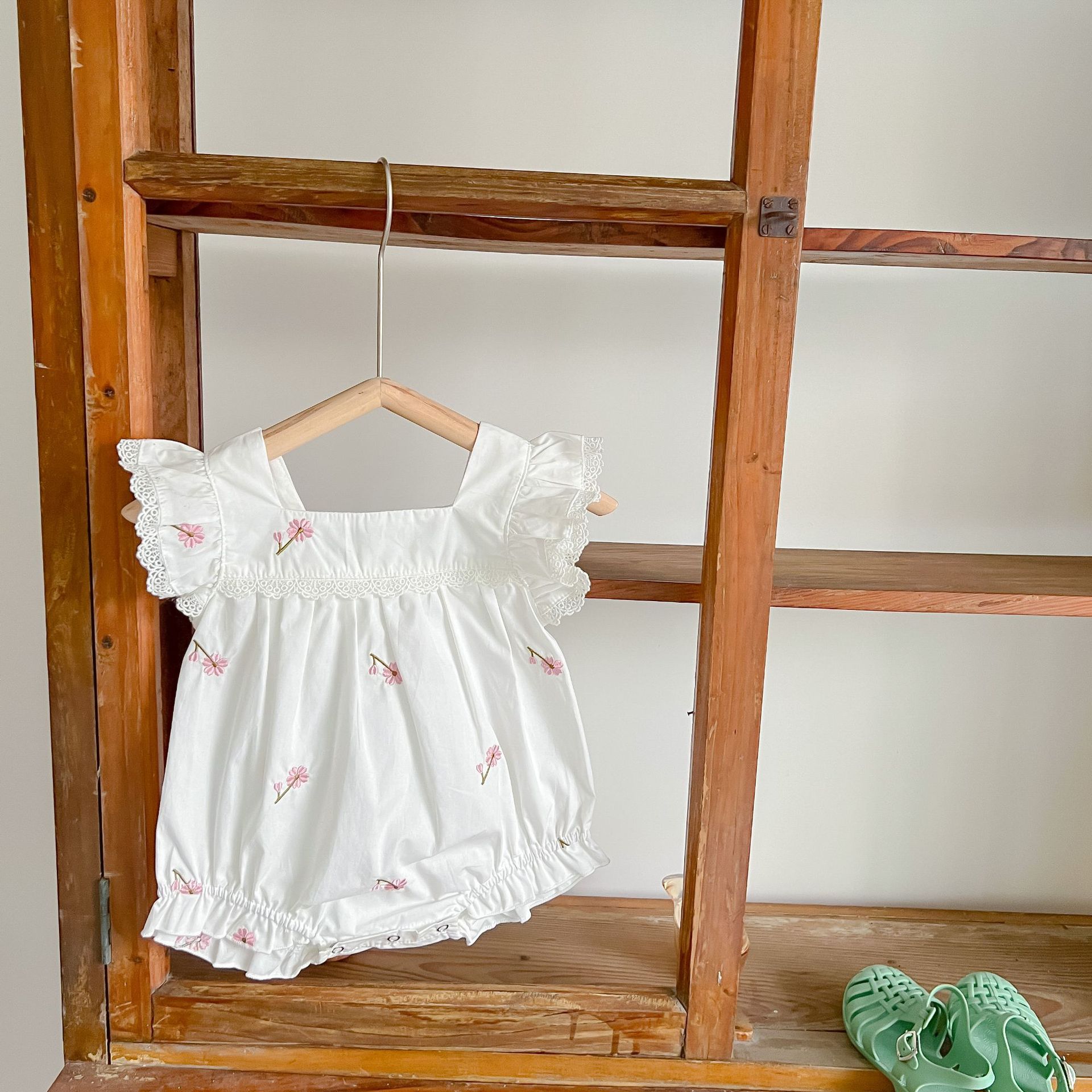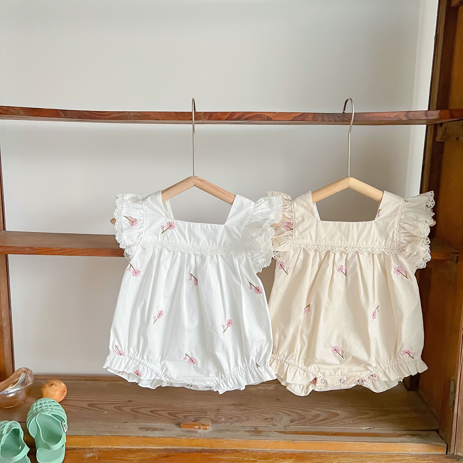 Roupas de bebê de verão estilo coreano para meninas de 1 a 3 anos de idade roupas corporais de manga voadora bordadas doces roupas de escalada