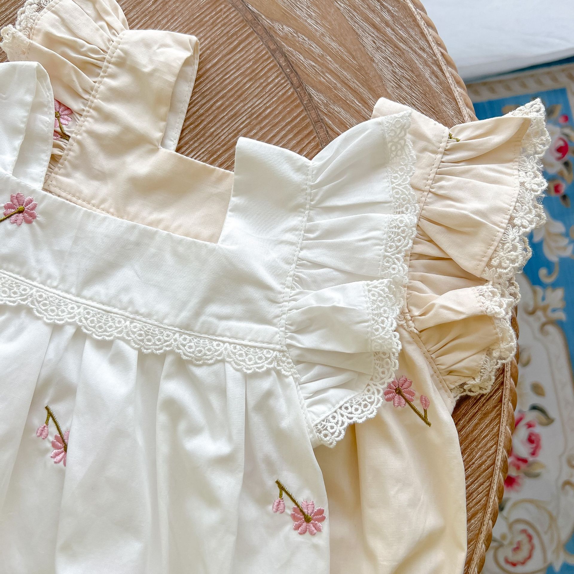 Compre Roupas de bebê de verão estilo coreano para meninas de 1 a 3 anos de idade roupas corporais de manga voadora bordadas doces roupas de escalada no atacado no Joom.pro