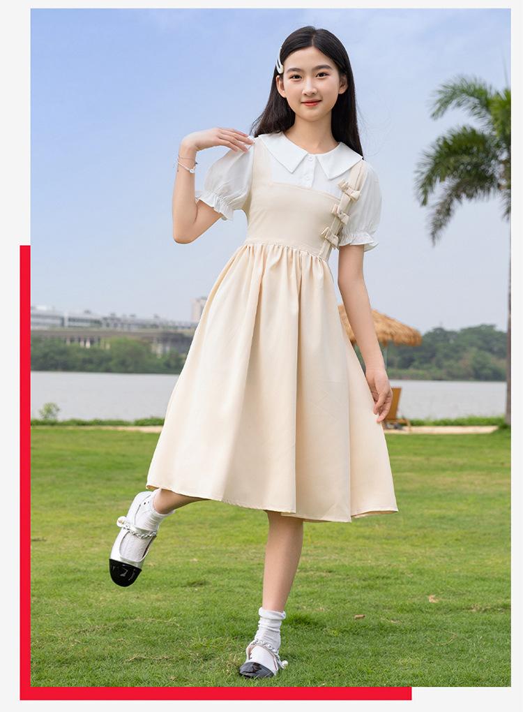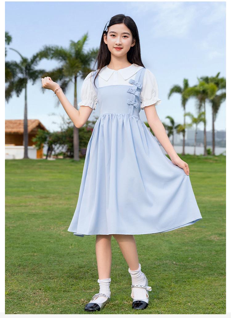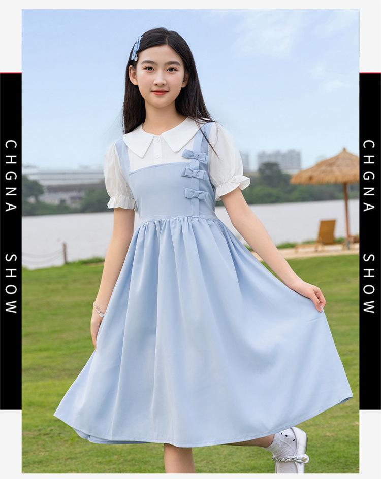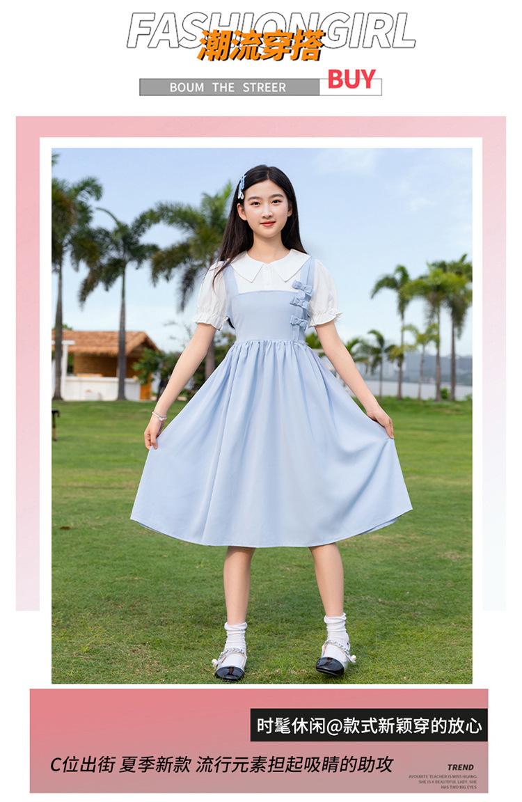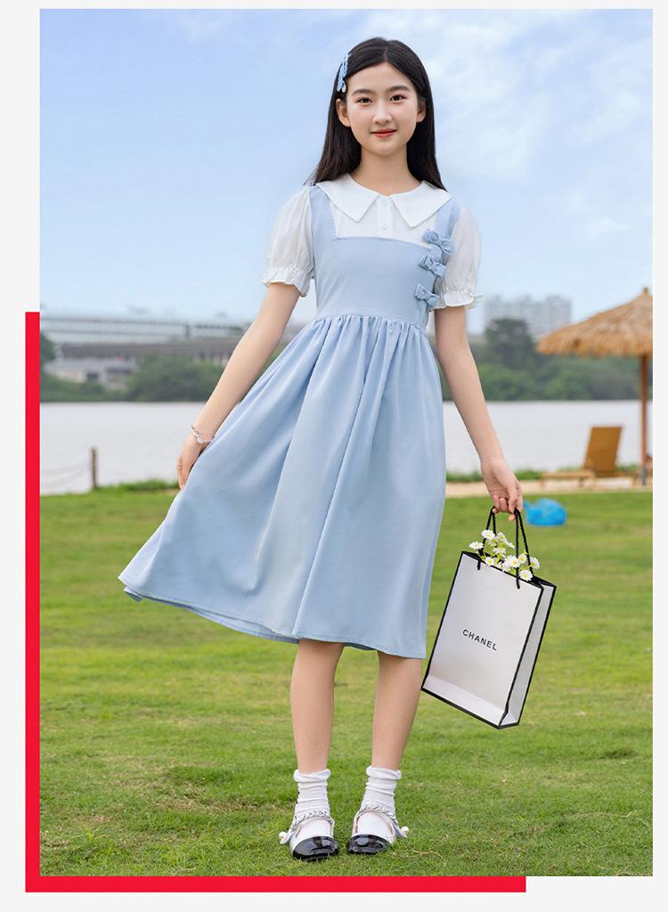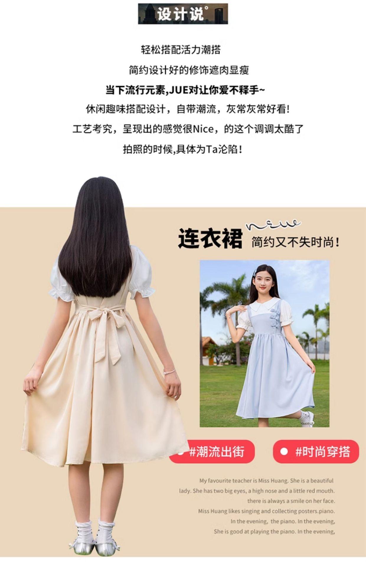 Meninas vestido de verão novo estilo ocidental infantil falso de duas peças vestido de princesa crianças grandes 12 alunos do ensino médio vestido de 15 anos de idade