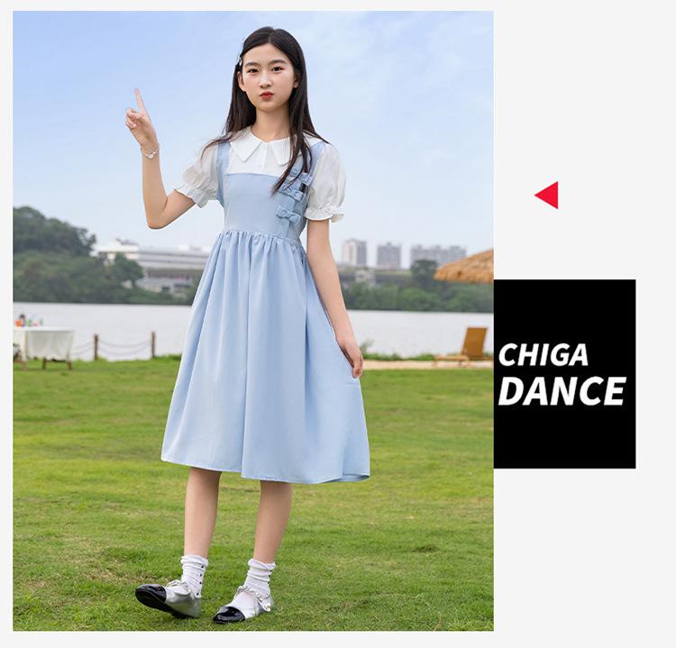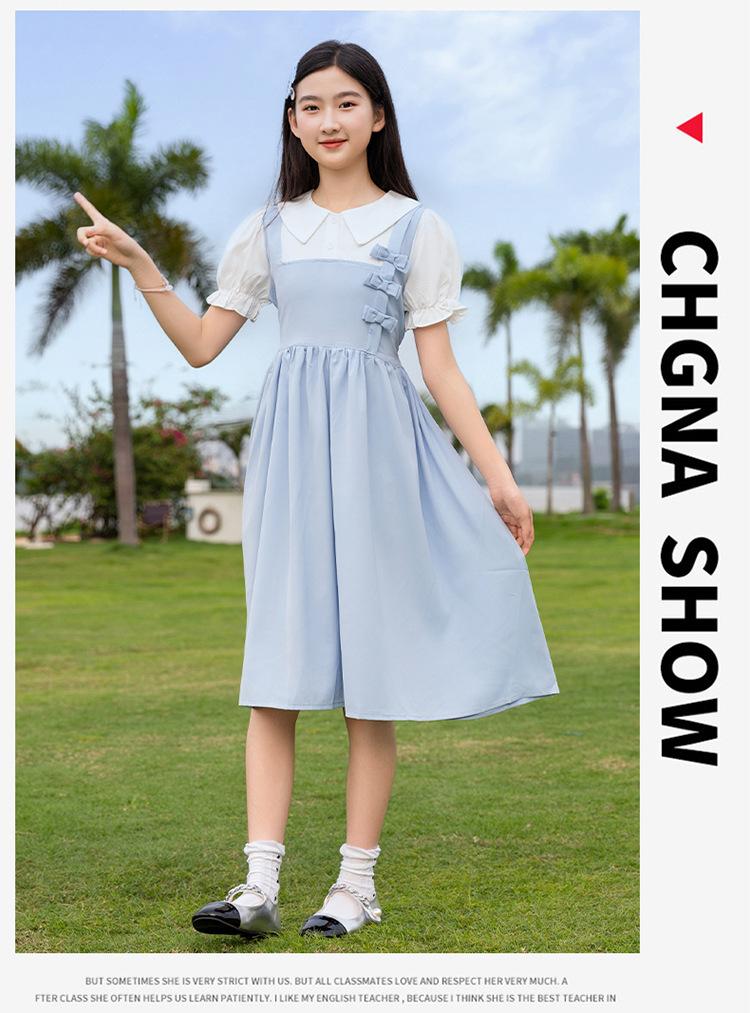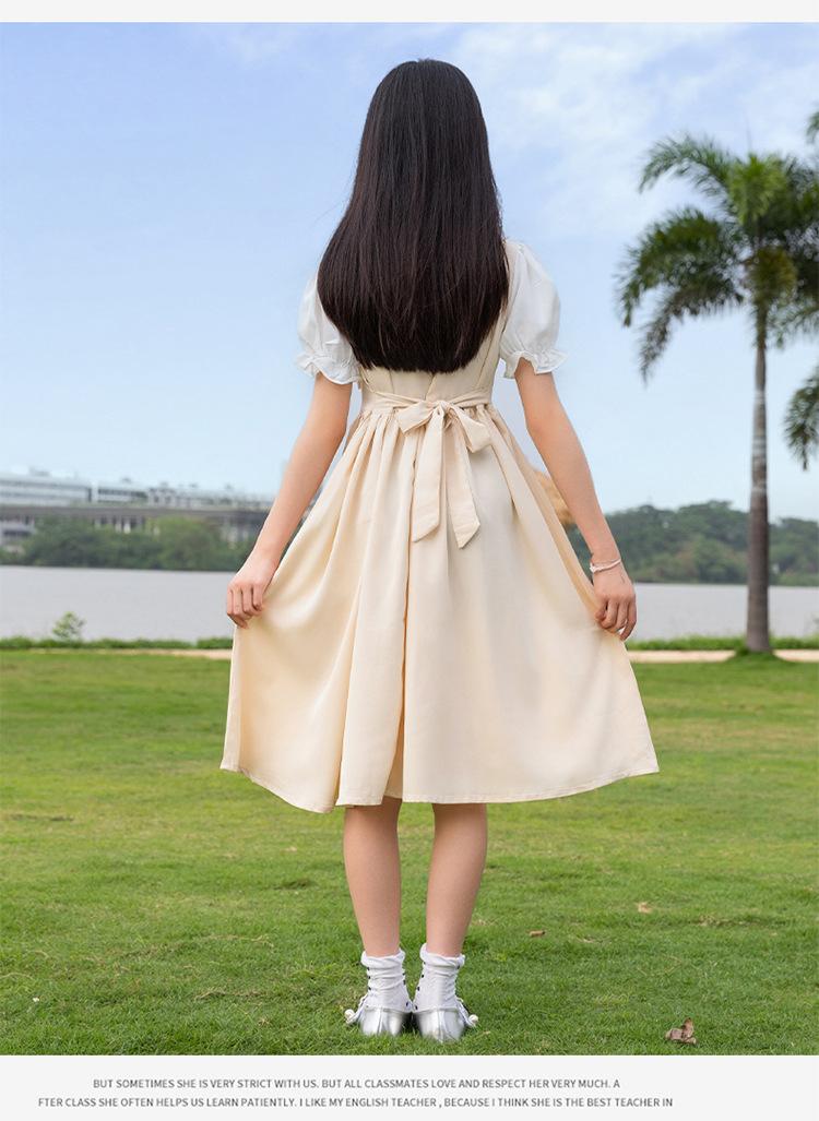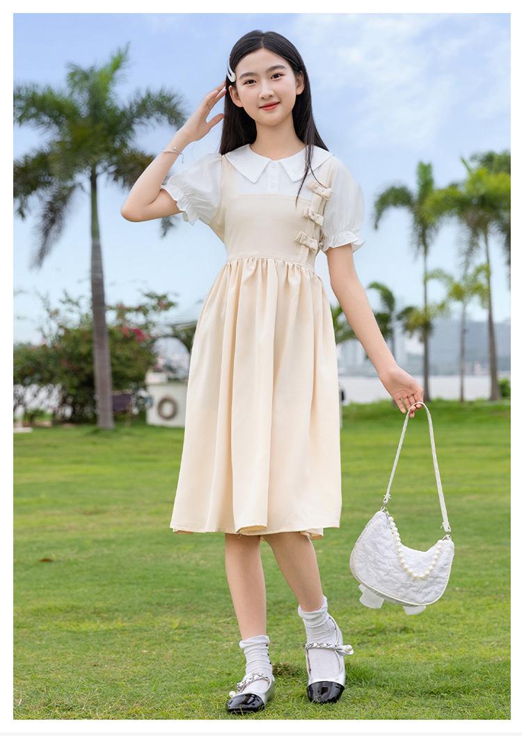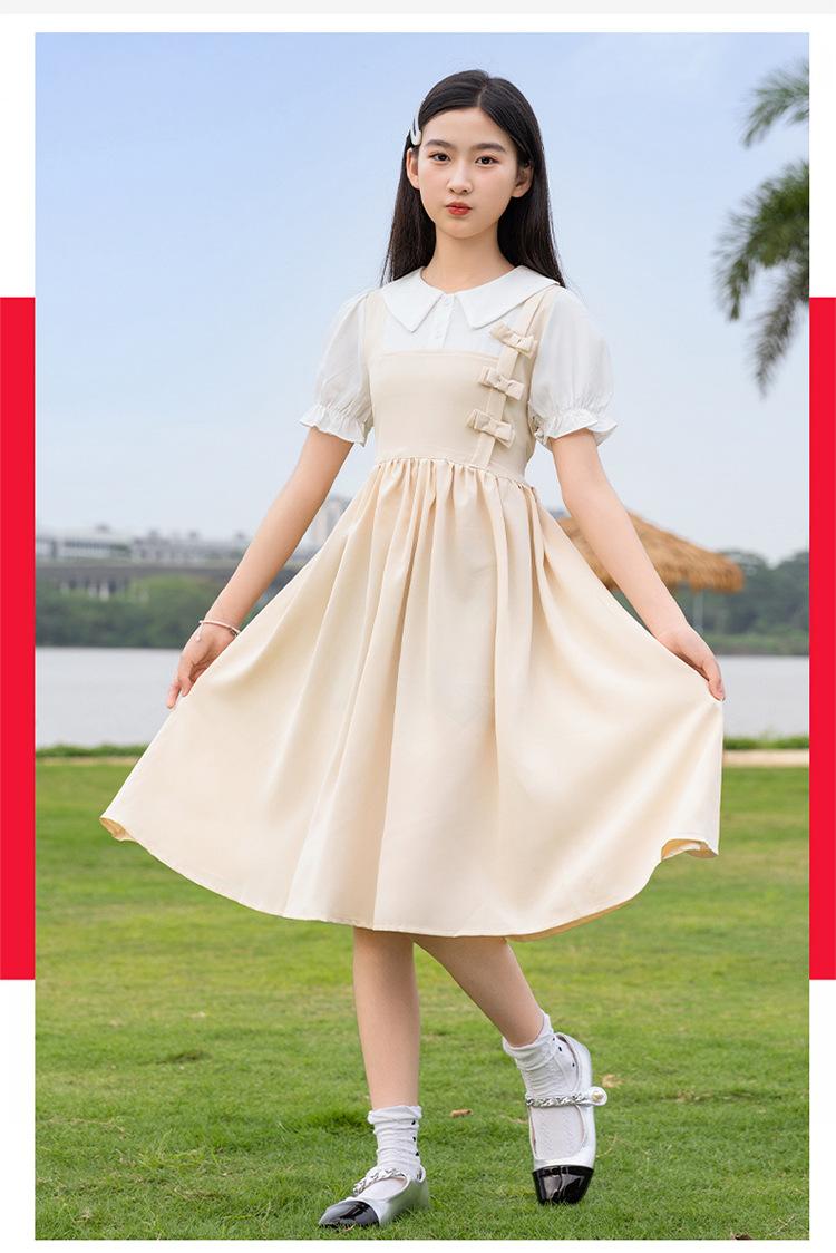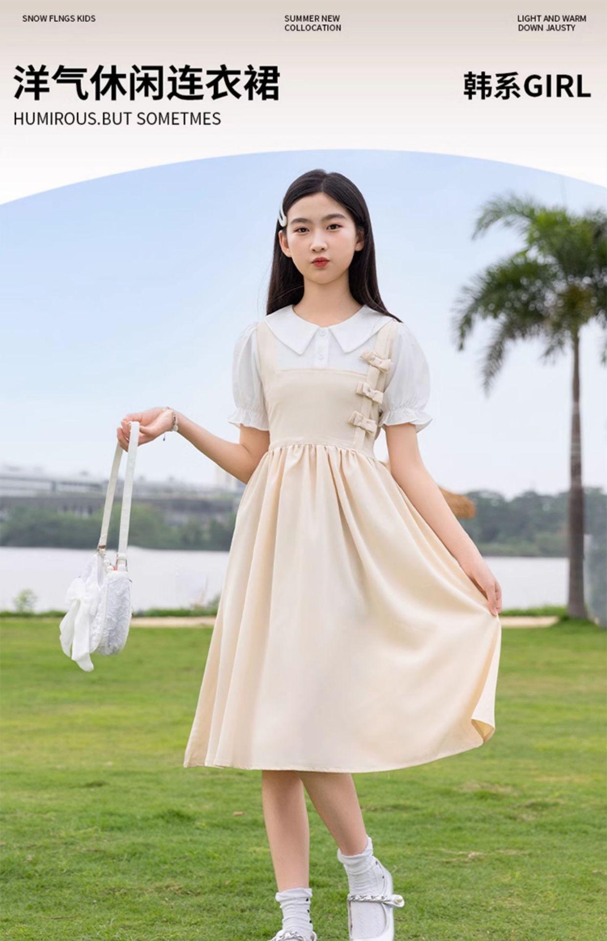 Meninas vestido de verão novo estilo ocidental infantil falso de duas peças vestido de princesa crianças grandes 12 alunos do ensino médio vestido de 15 anos de idade
