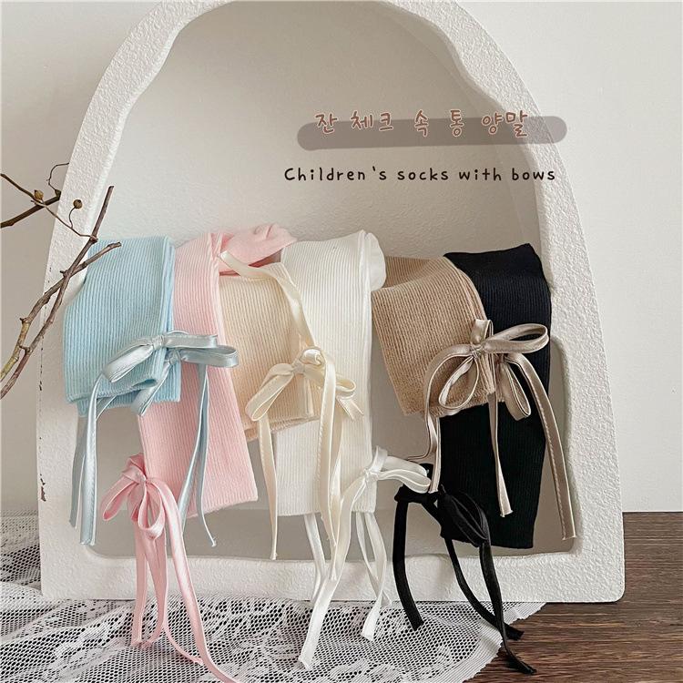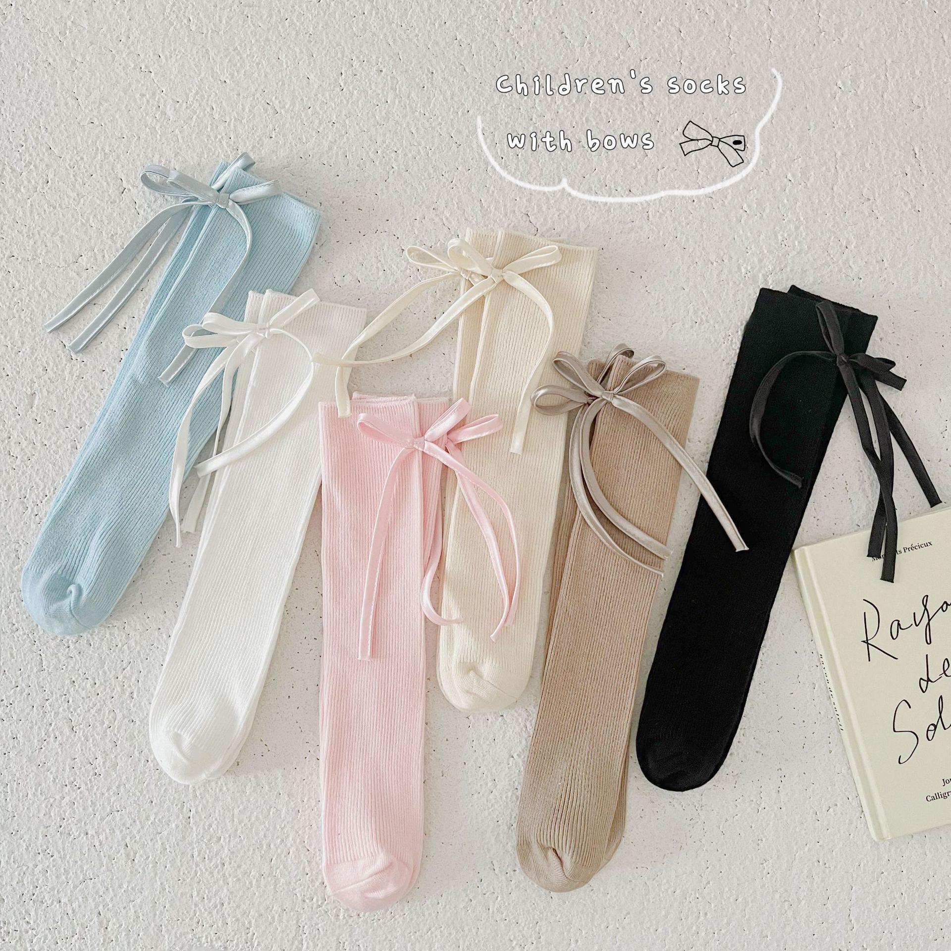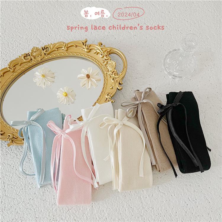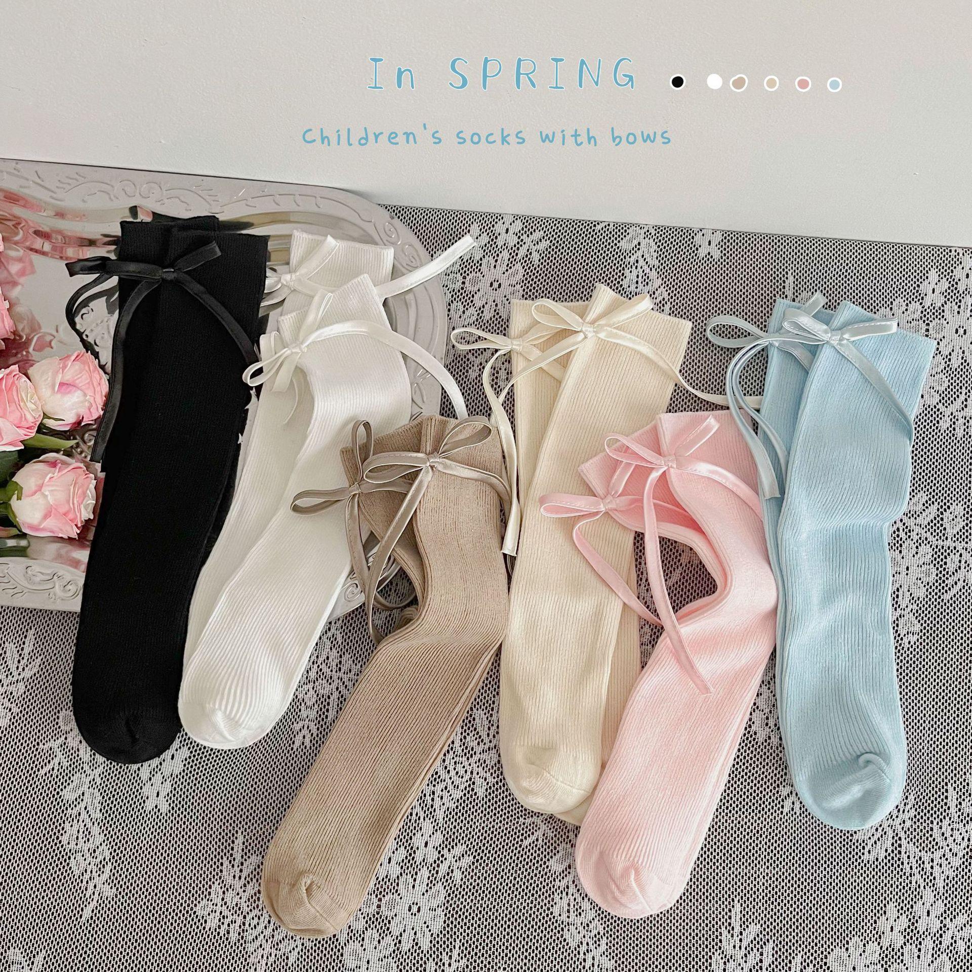CX138 meias de pilha para meninas 24 meias infantis de primavera e verão meias finas de algodão com arco de textura fina para bebês meias de panturrilha