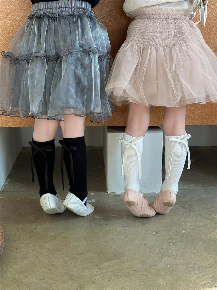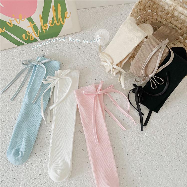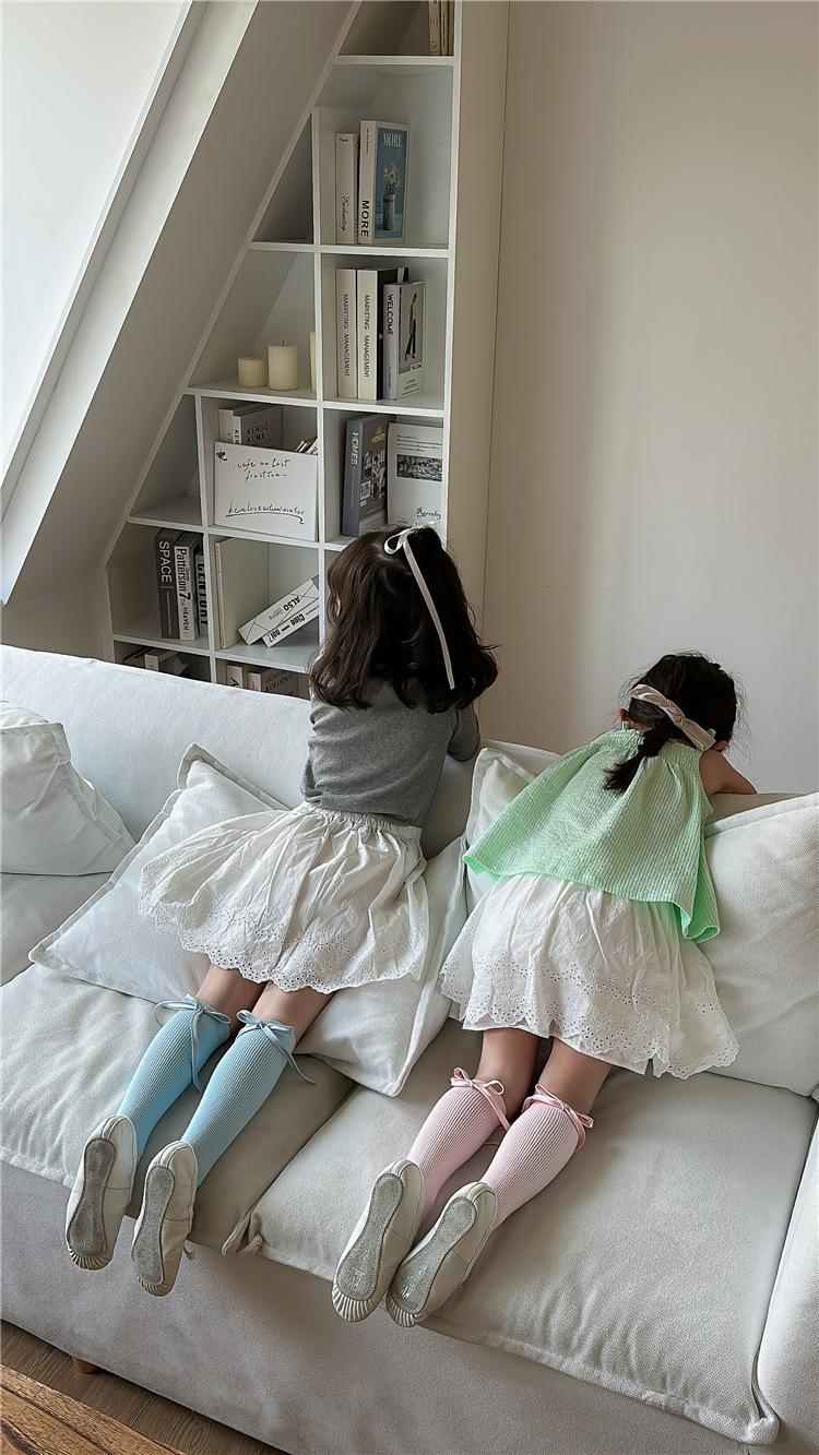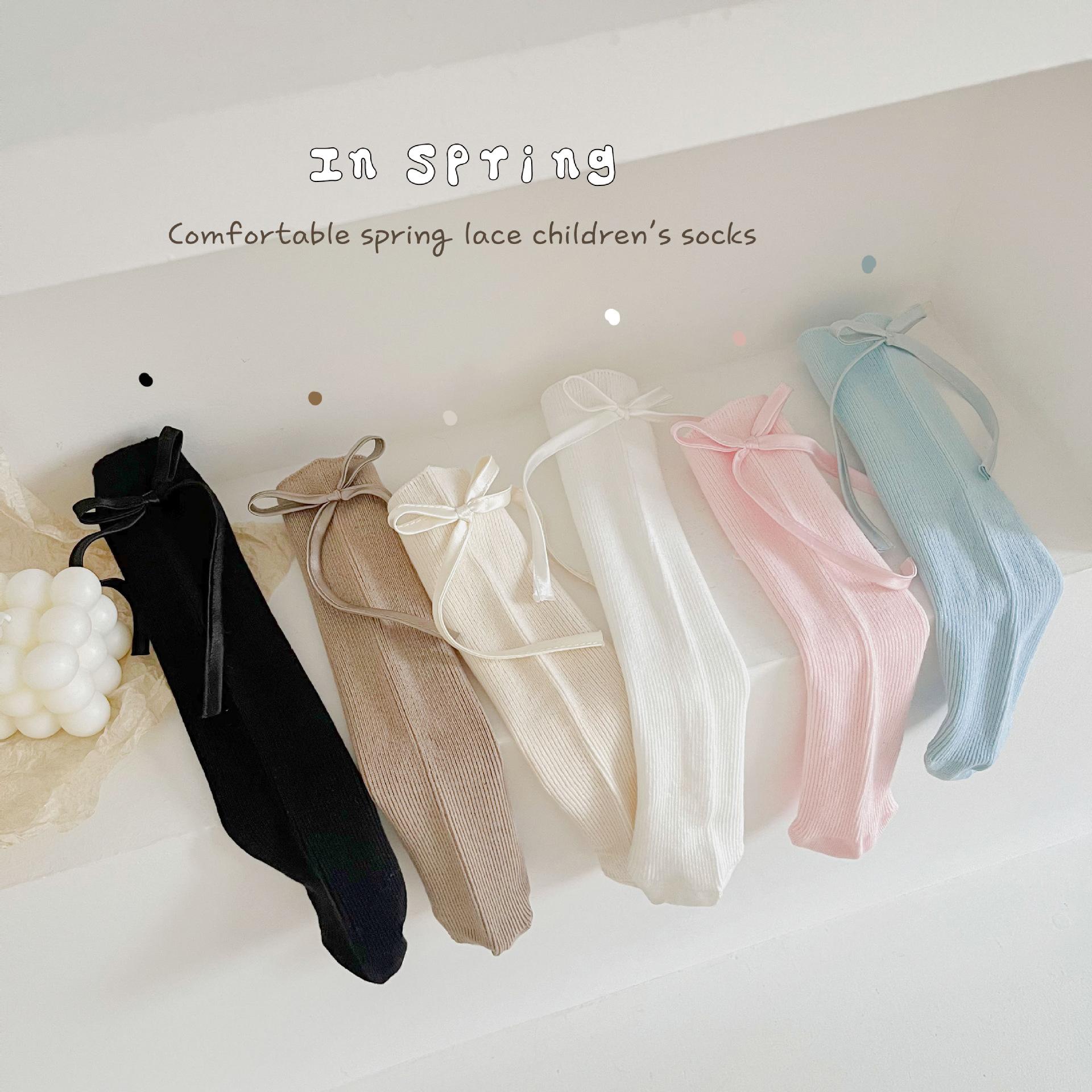 CX138 meias de pilha para meninas 24 meias infantis de primavera e verão meias finas de algodão com arco de textura fina para bebês meias de panturrilha