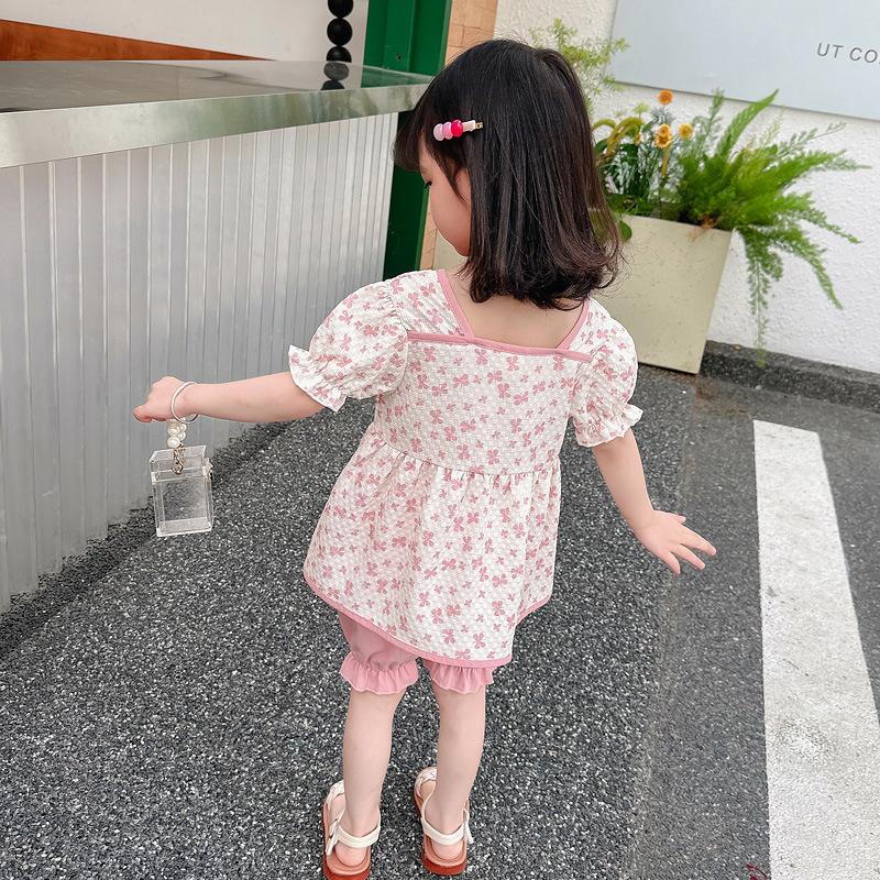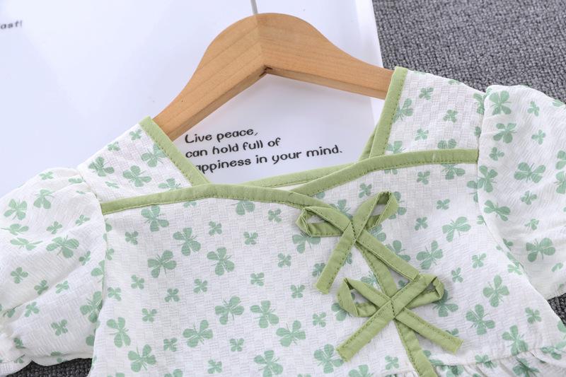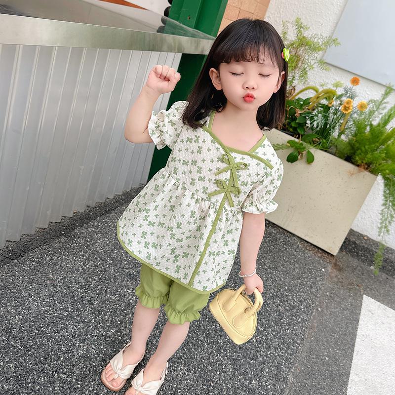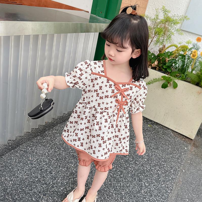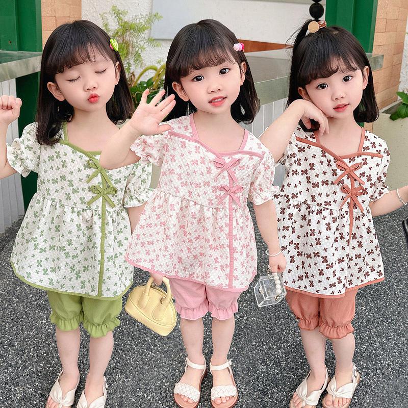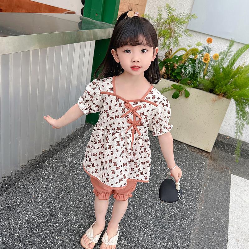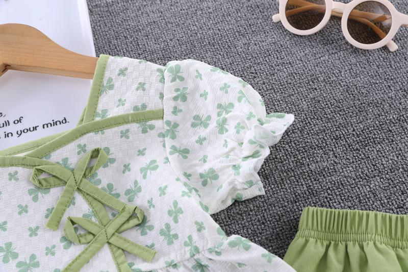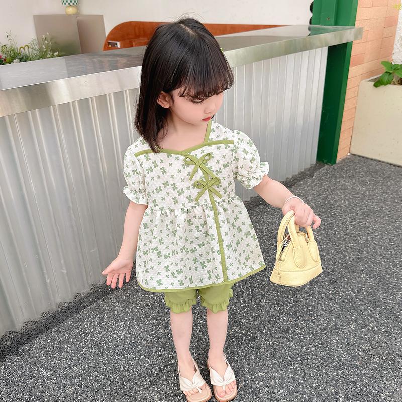 Terno estilo ocidental para meninas verão 2024 novas roupas de verão para bebês meninas verão moda dois laços manga curta