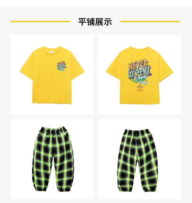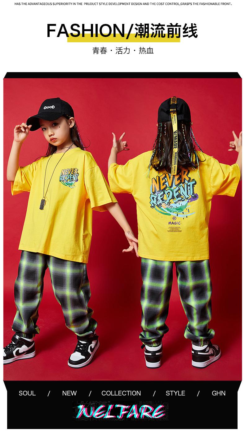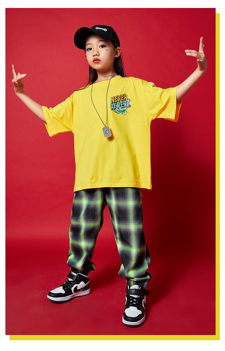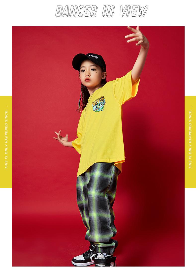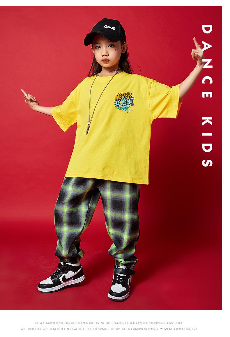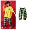 Traje de apresentação infantil infantil Hip-Hop Summer Girls' Dance Performance Costume Traje de apresentação infantil Jazz Dance Costume Calças xadrez