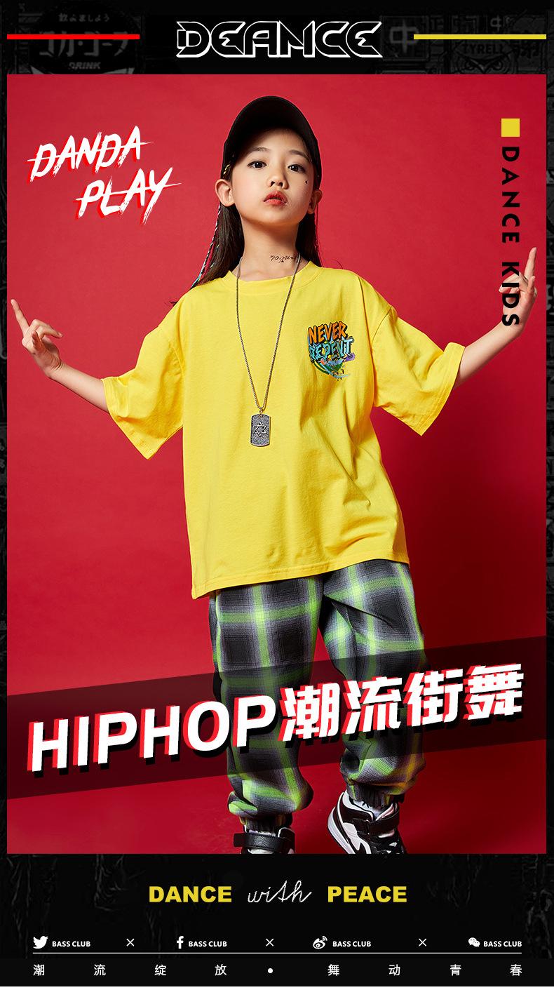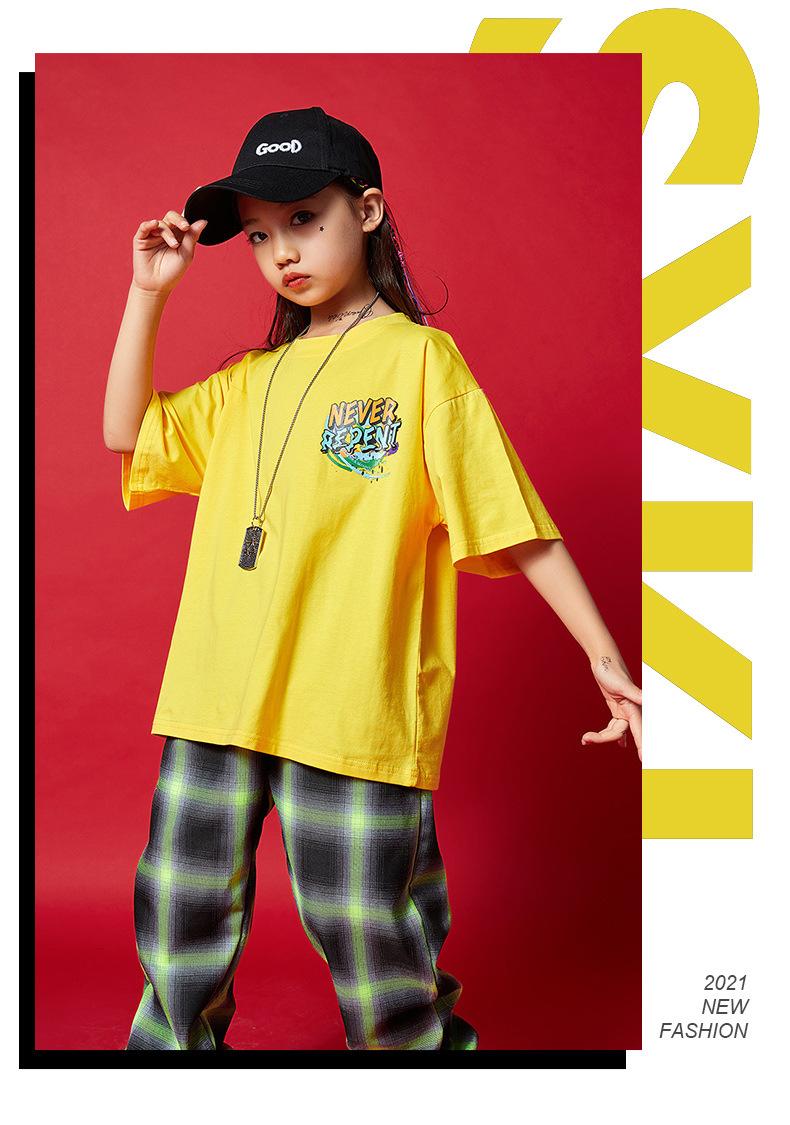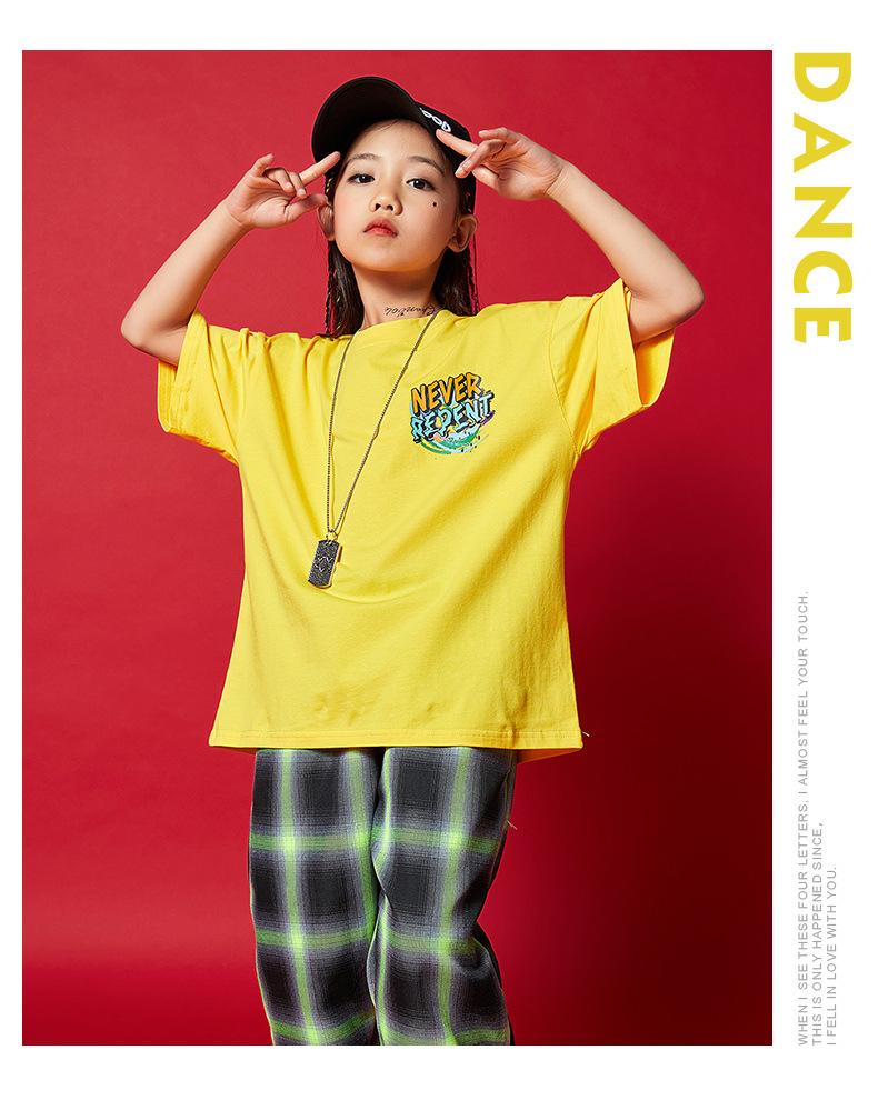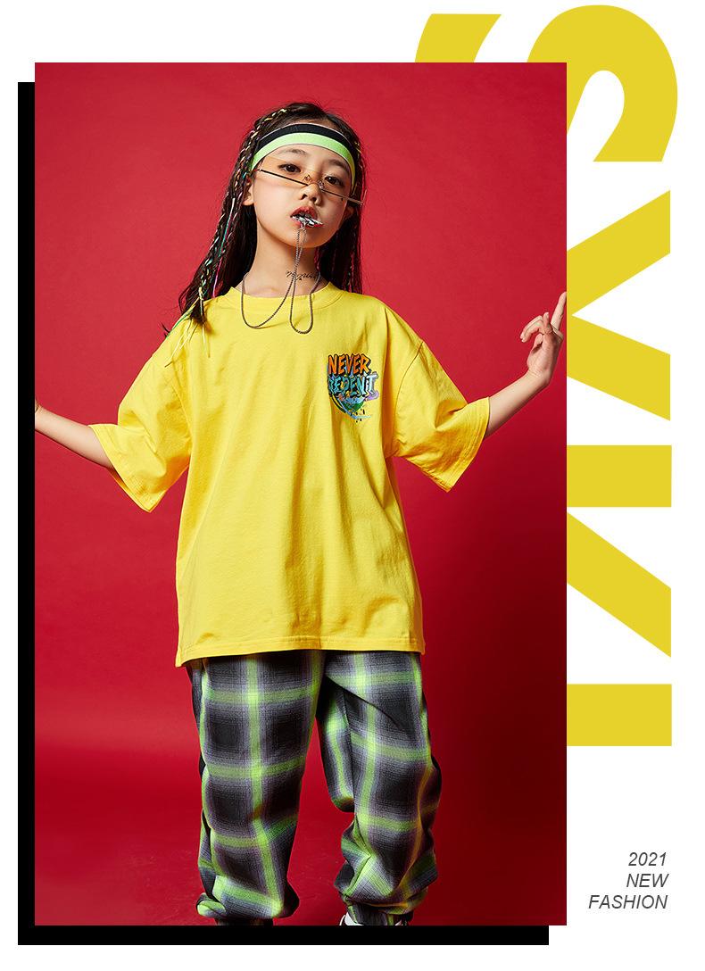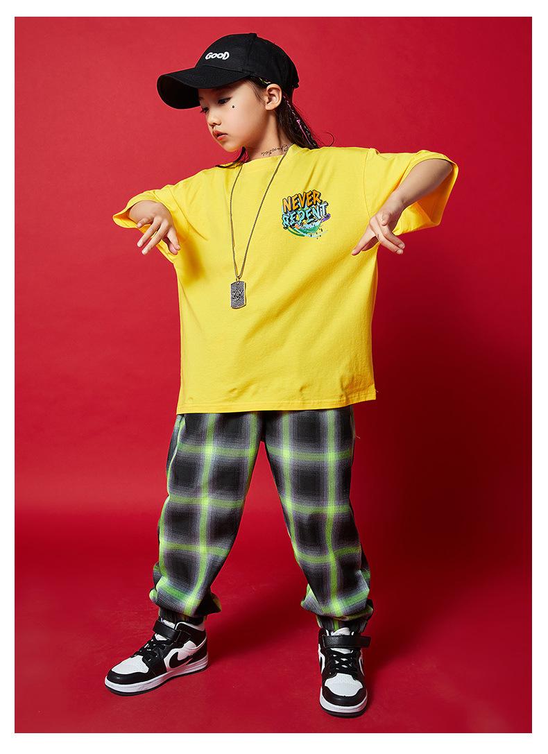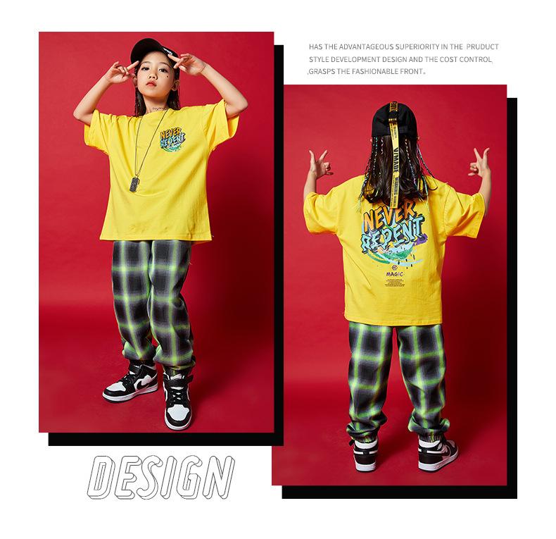 Traje de apresentação infantil infantil Hip-Hop Summer Girls' Dance Performance Costume Traje de apresentação infantil Jazz Dance Costume Calças xadrez