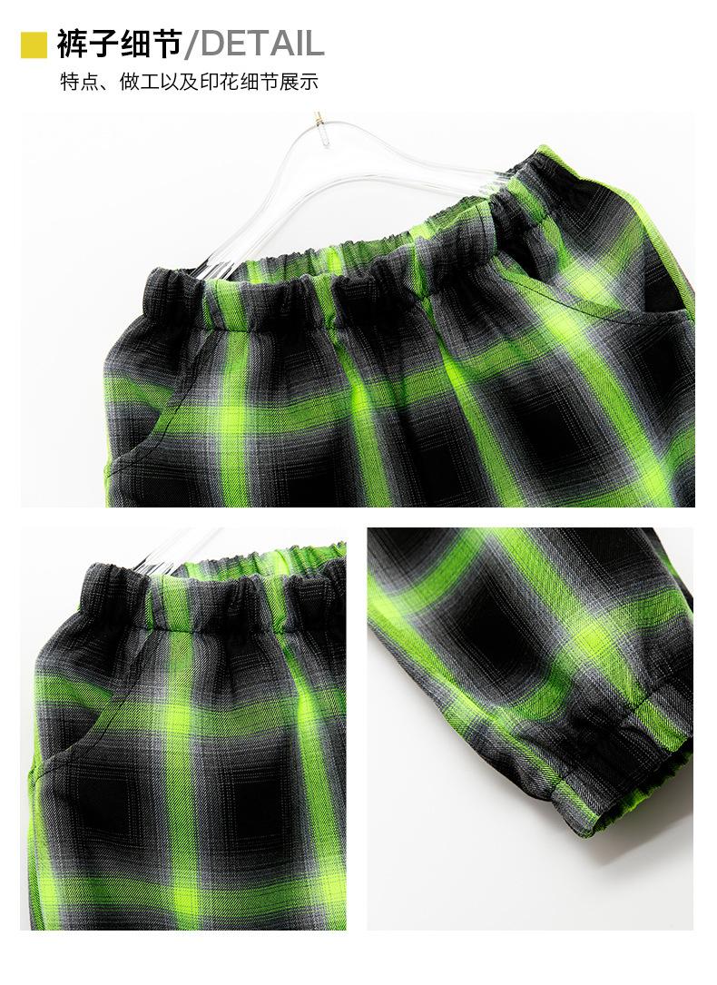 8172 yellow NEVER Short Sleeve, 8185 black and green plaid trousers