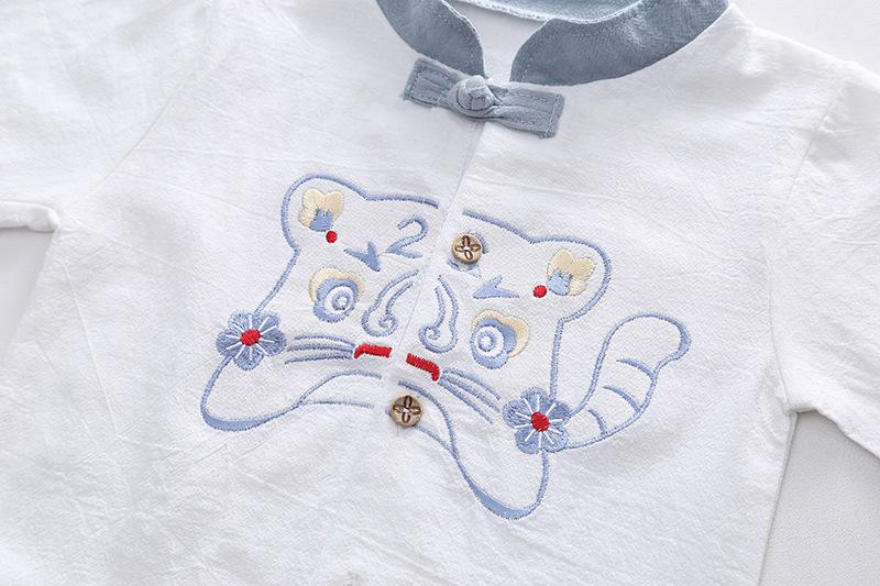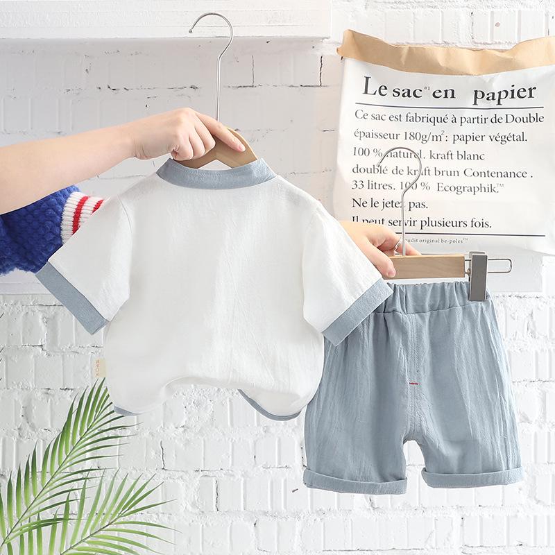 Roupas de verão para meninos, terno 2022, novo estilo ocidental, estilo coreano, Tang, terno de manga curta, duas peças, roupas de bebê da moda