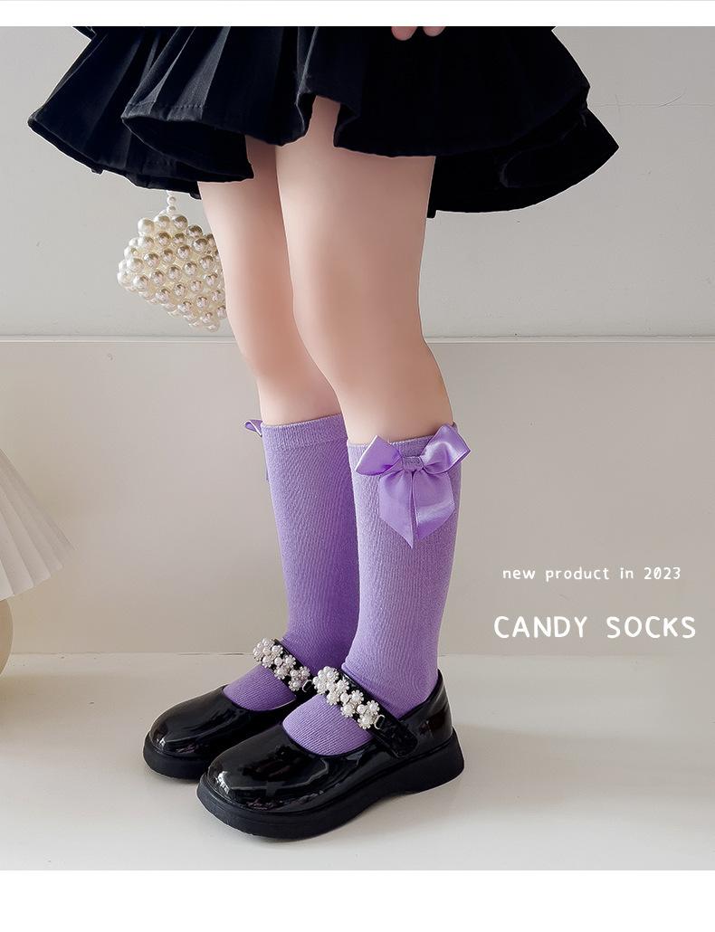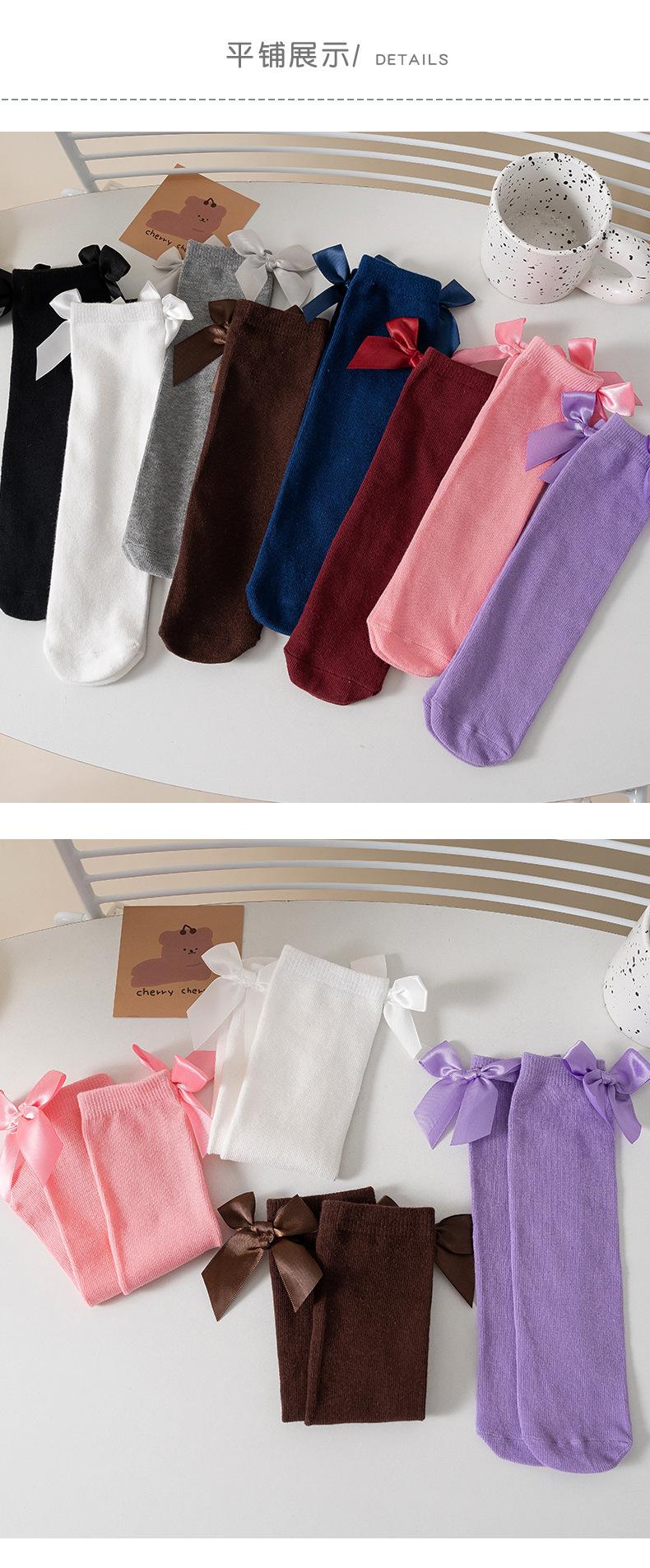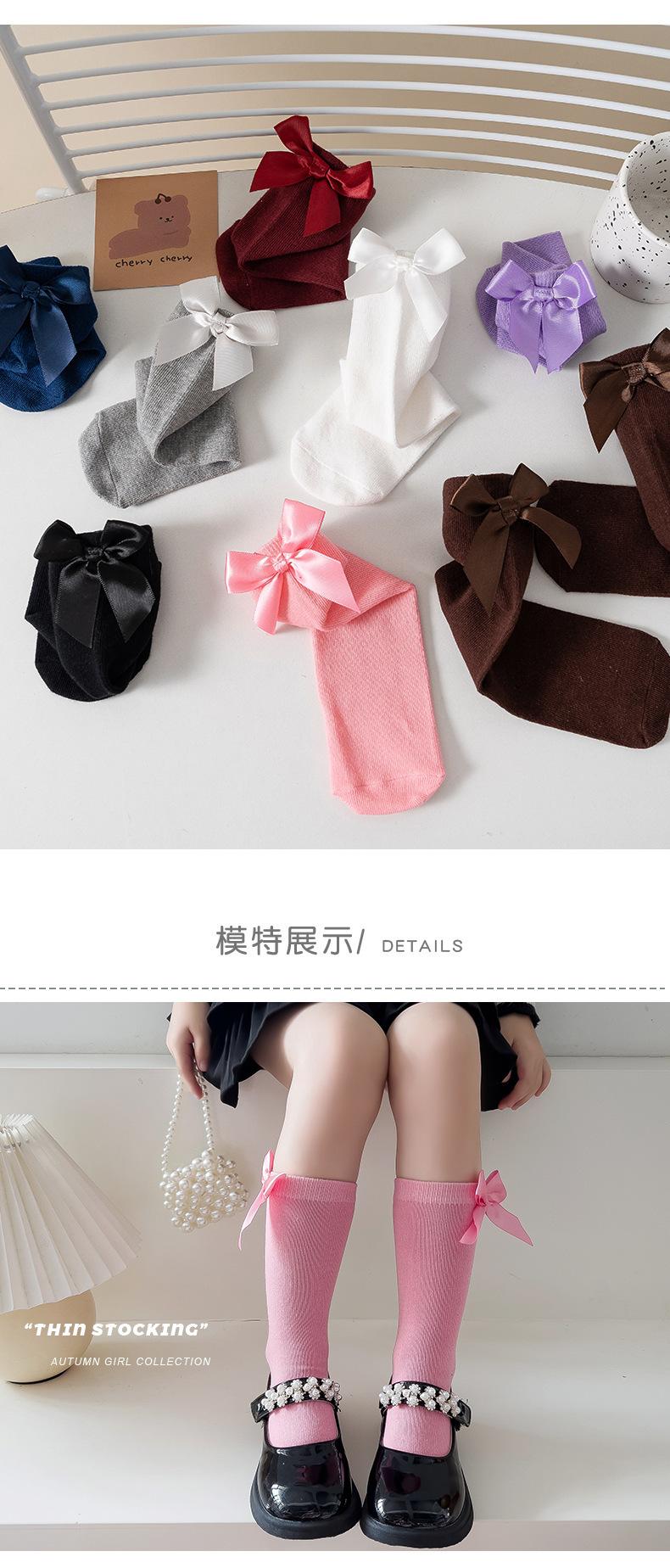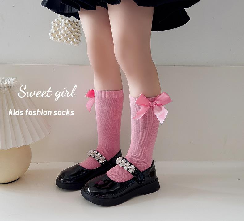 24 Primavera e Outono Novas Meninas Meias Arco Meias de Comprimento Médio Cor Sólida Crianças Meias de Algodão Meias Meias da Moda