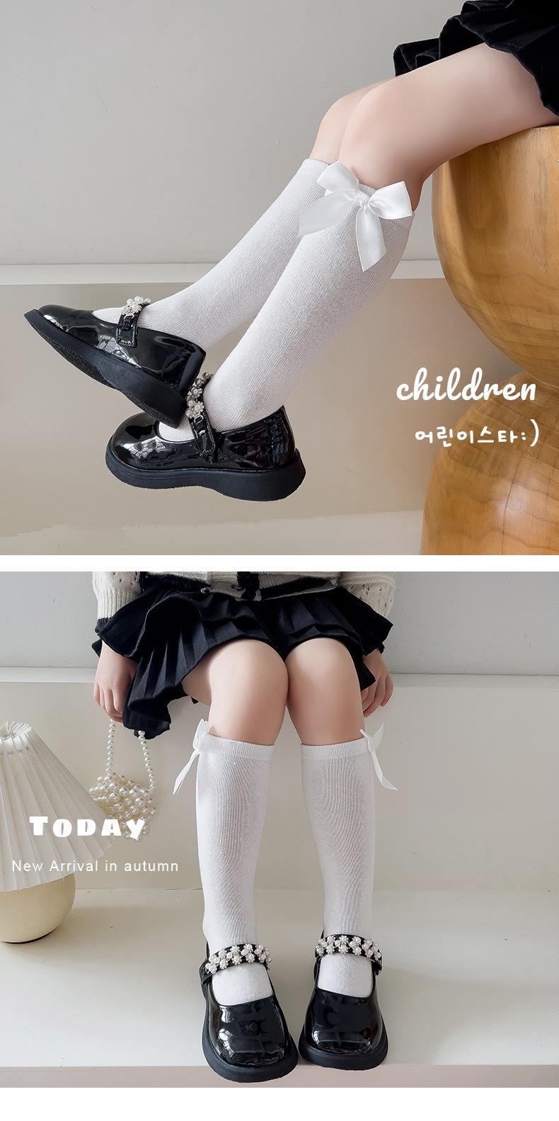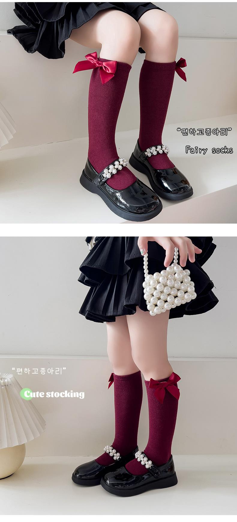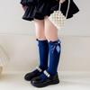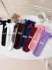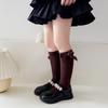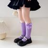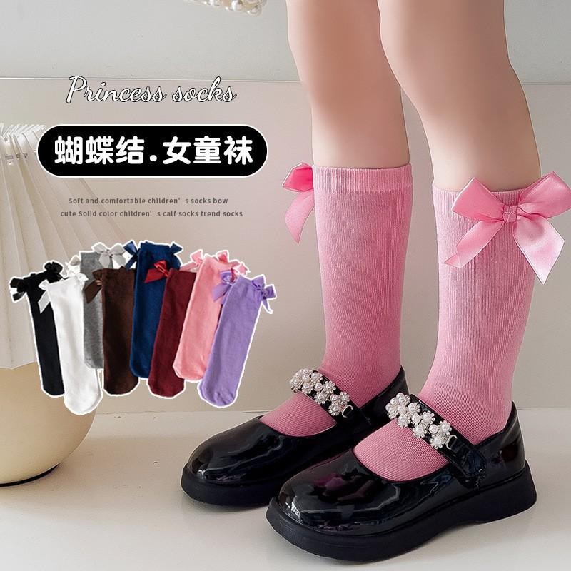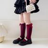24 Primavera e Outono Novas Meninas Meias Arco Meias de Comprimento Médio Cor Sólida Crianças Meias de Algodão Meias Meias da Moda