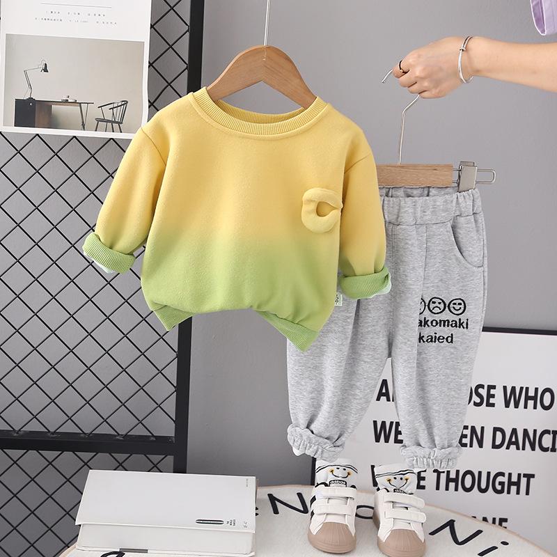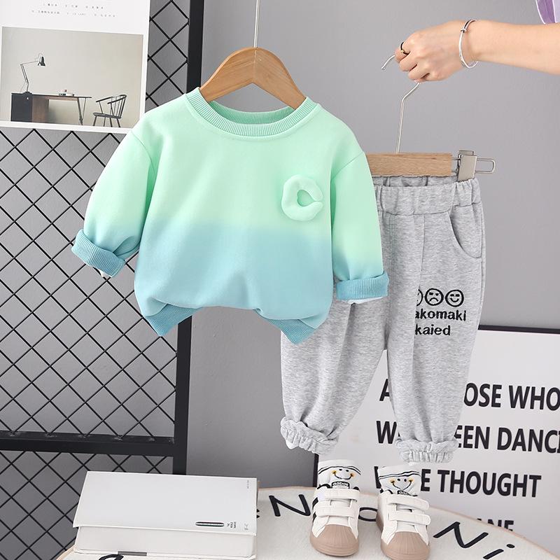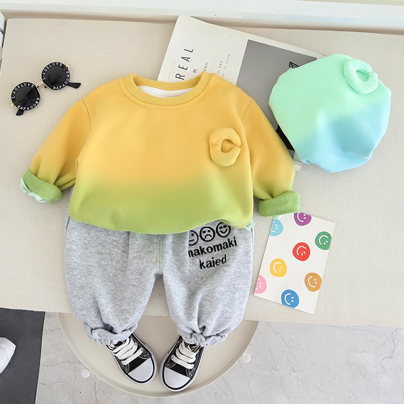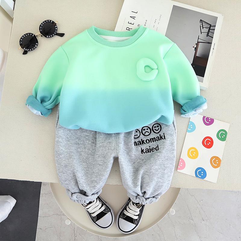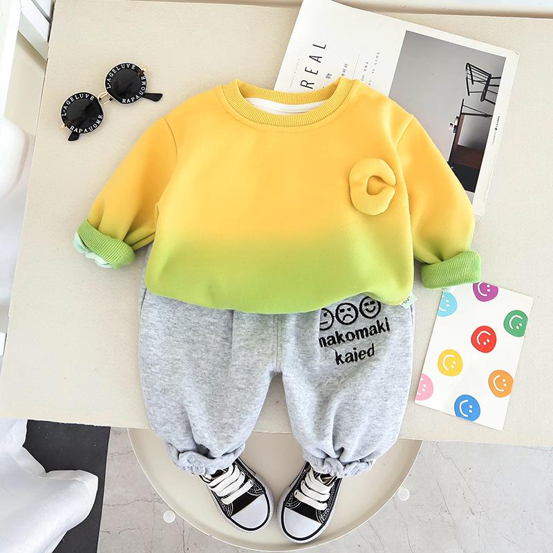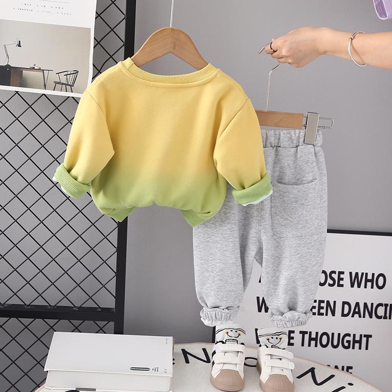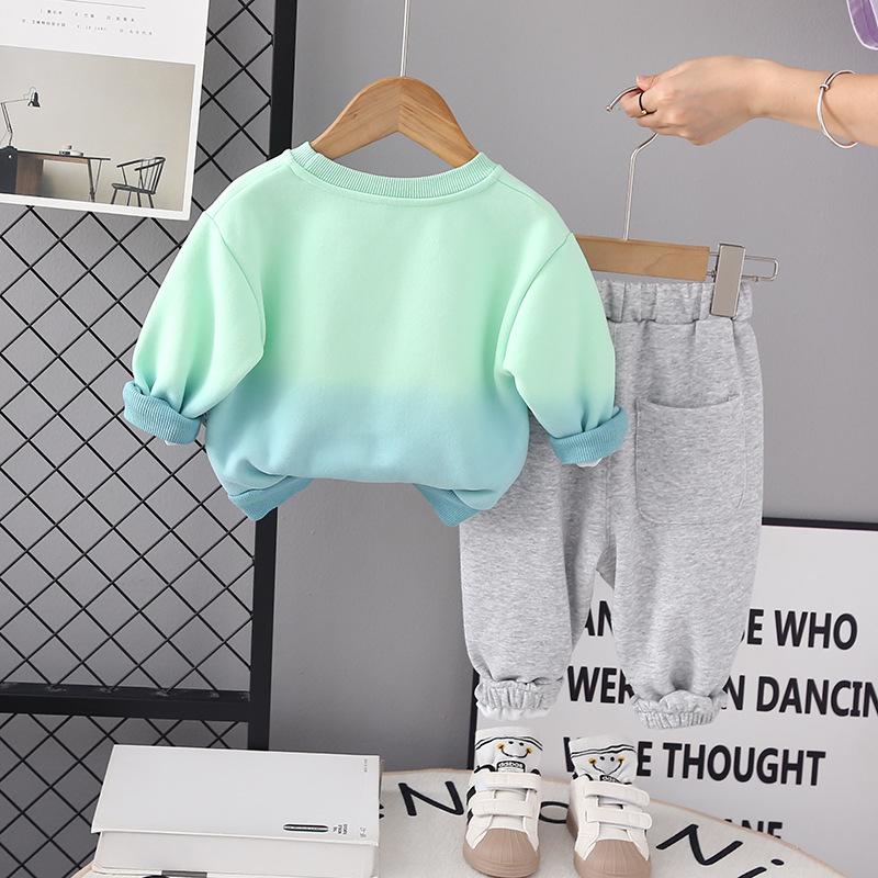 Roupas infantis terno de roupas de outono para meninos 2023 novo conjunto de duas peças de letra gradiente para bebê primavera e outono suéter de estilo ocidental