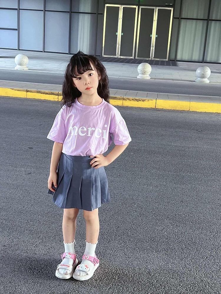 Conjunto Versátil para Meninas Verão 2025 Novo Estilo Coreano Bebê Menina Cor Pura Colete Saia Plissada Conjunto Infantil de Duas Peças Moderno