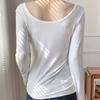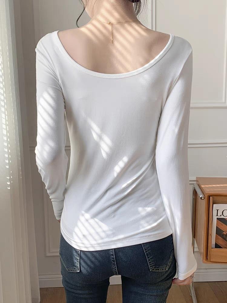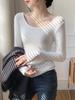 Cor sólida manga comprida slim fit solto estilo preguiçoso branco em torno do pescoço desgaste interno desgaste exterior roupas de outono emagrecimento quente assentamento camisa para mulheres