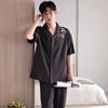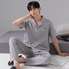 Verão Novo Calças de manga curta Pull-up Algodão Pijamas Masculinos Cardigan Solto Fino Exterior Terno Casual Roupas para Casa