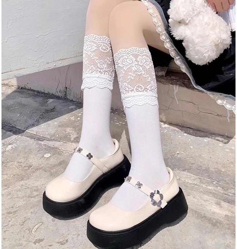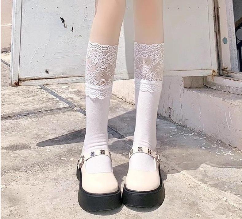 Lolita Meias Femininas Lace Lace Calf Meias JK Estilo Japonês Sweet Lolita Medium Long Tube Student Boots Socks