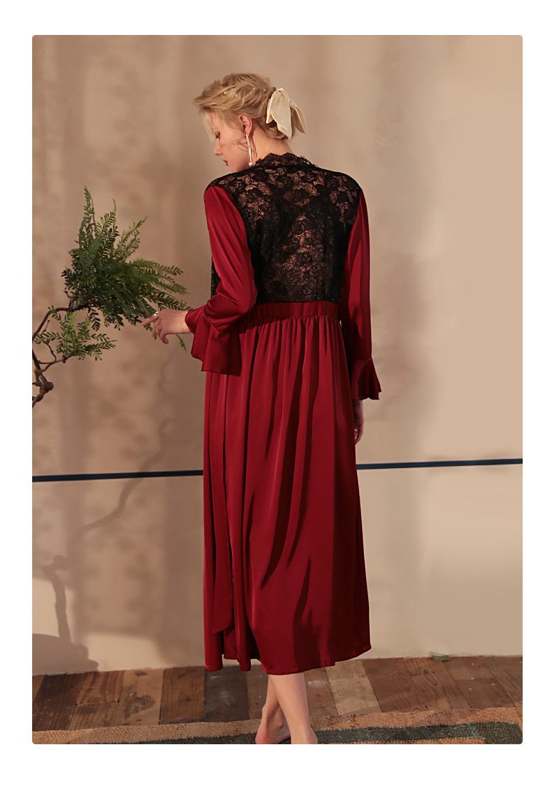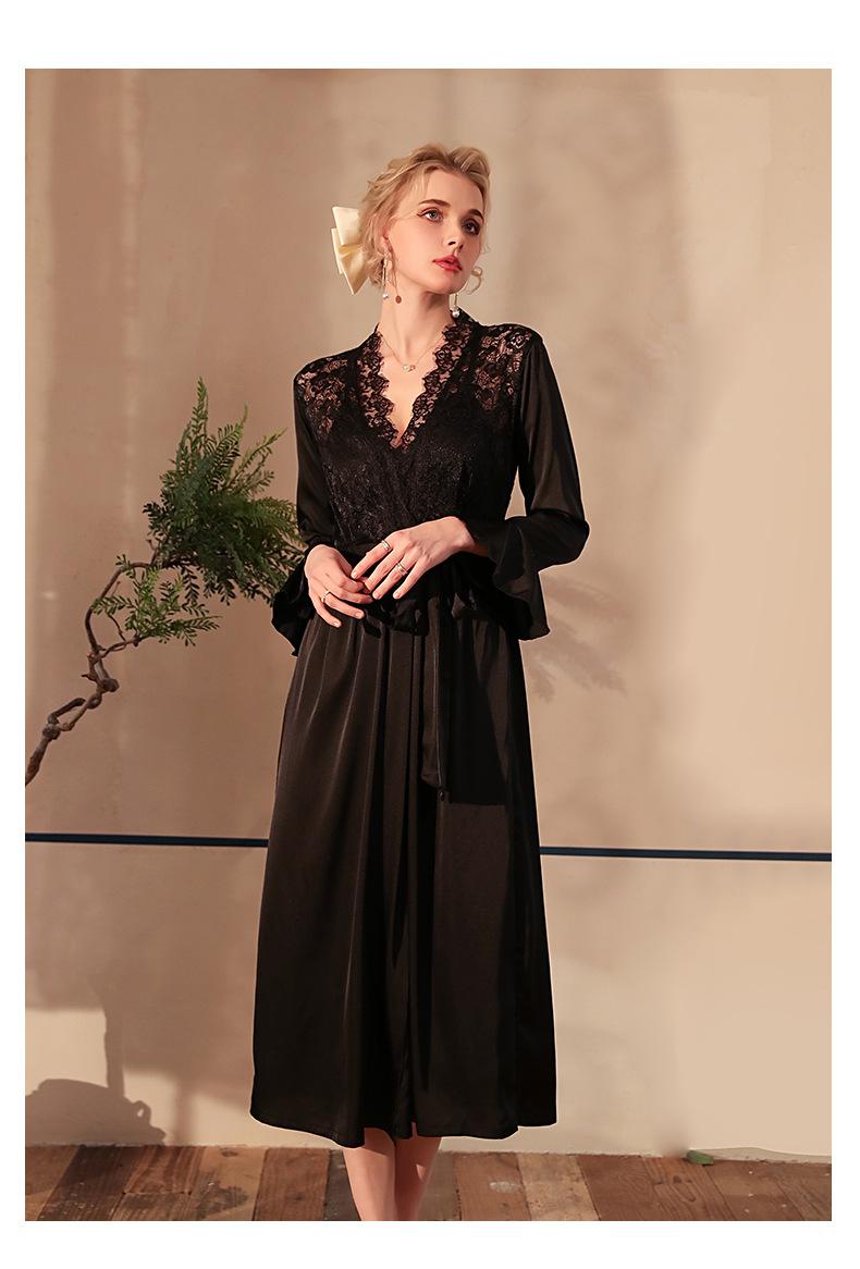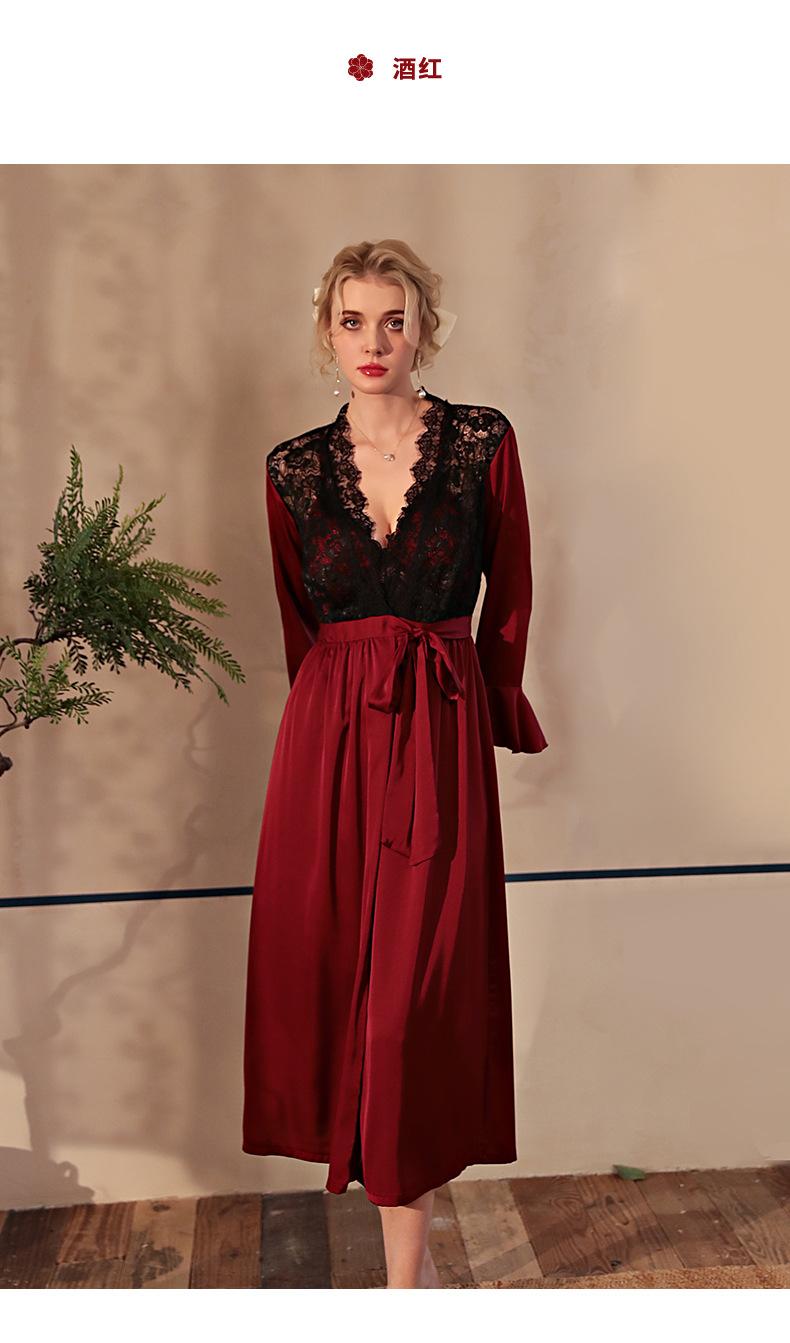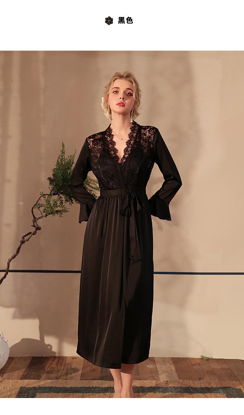 Cetim Gelo Seda Multicolor Cintura Nightwear Mulheres Sexy Lace Padrão Luz Luxo Manga Longa Camisola Roupão de Banho Roupas para Casa 522