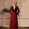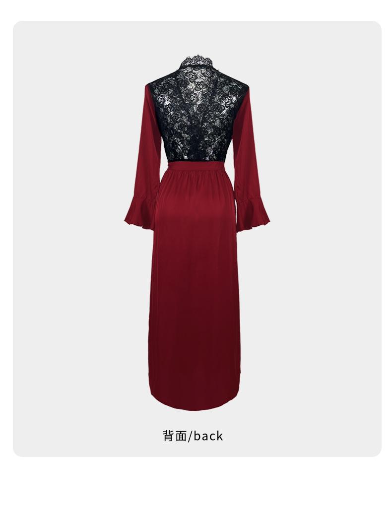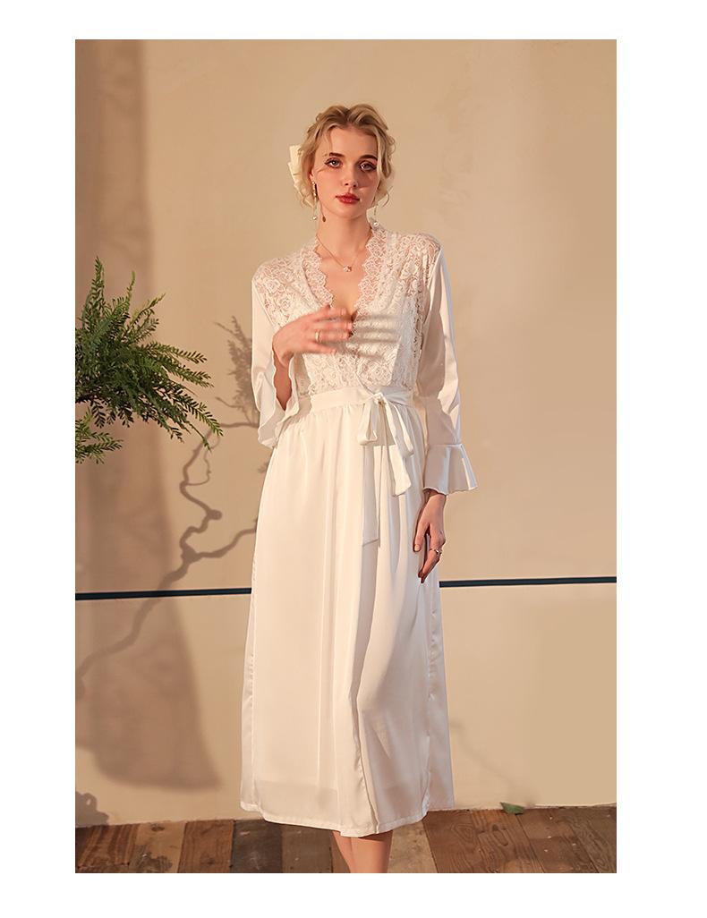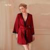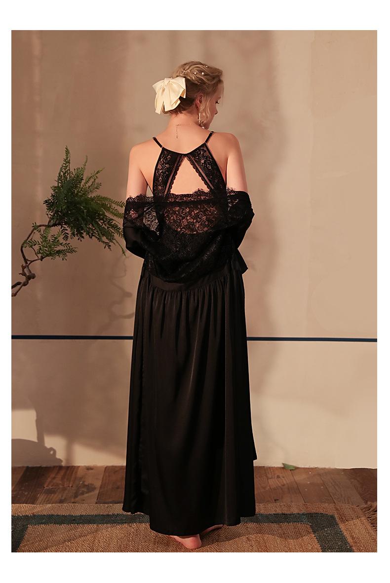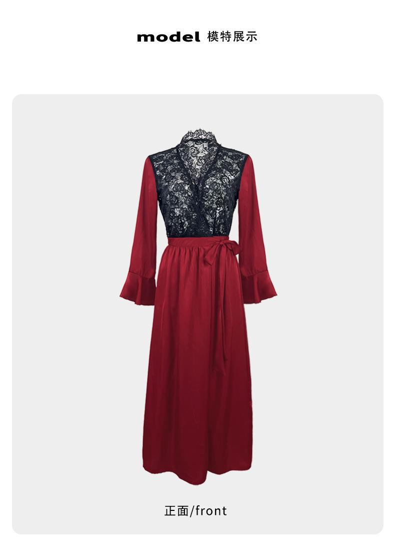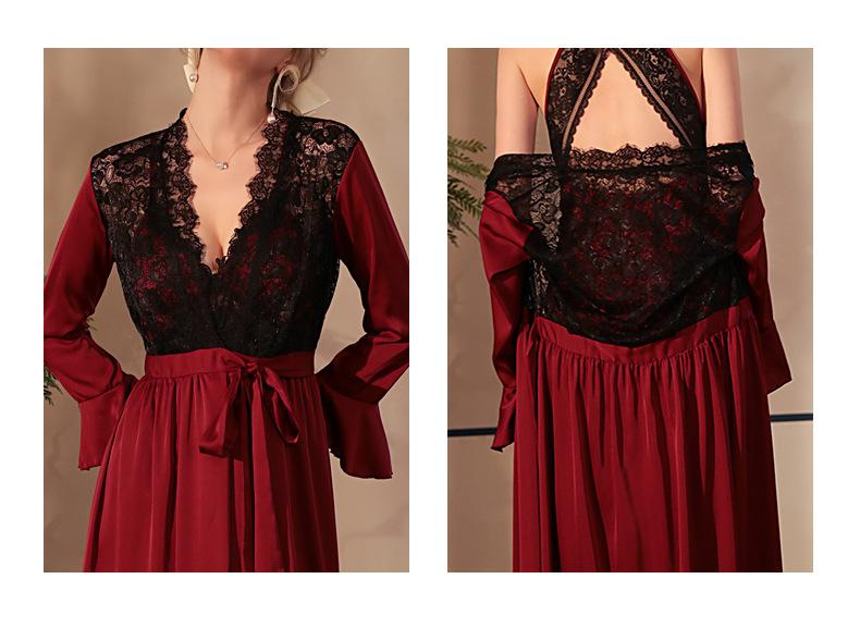 Cetim Gelo Seda Multicolor Cintura Nightwear Mulheres Sexy Lace Padrão Luz Luxo Manga Longa Camisola Roupão de Banho Roupas para Casa 522