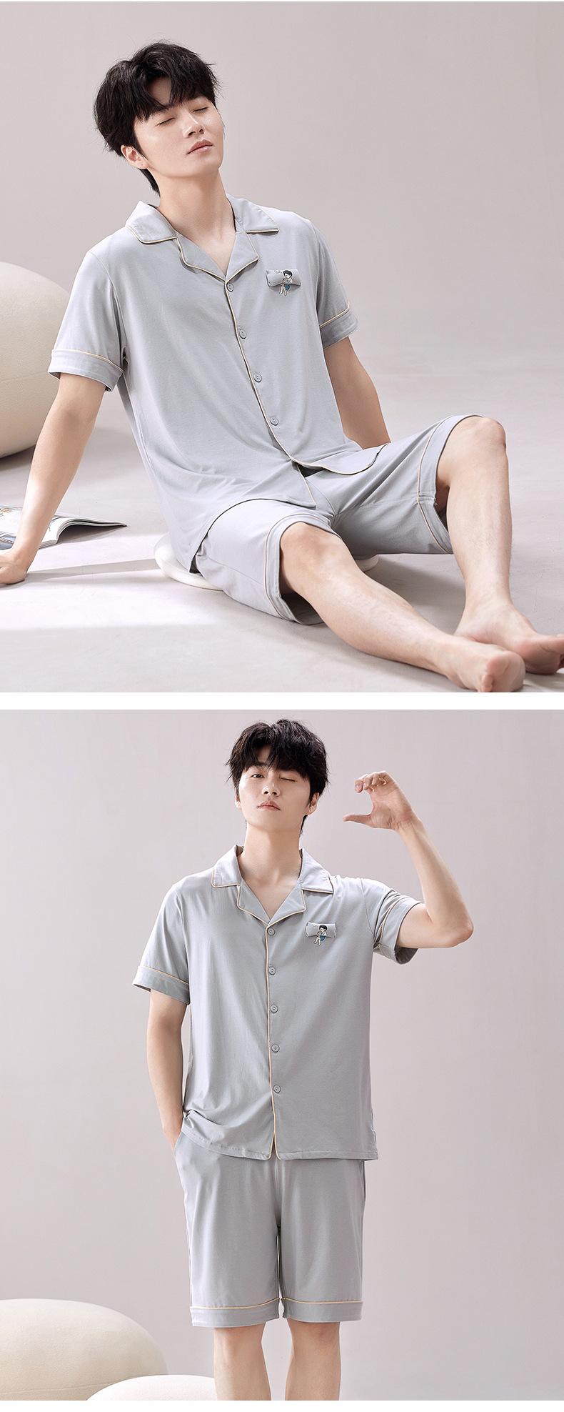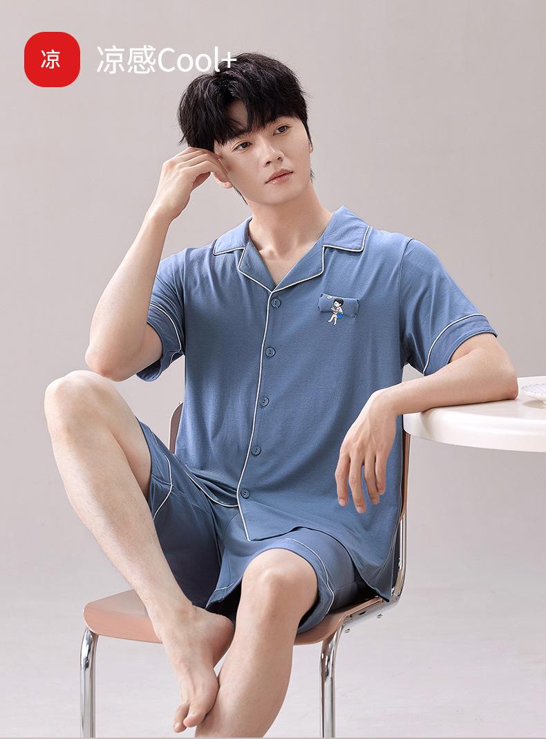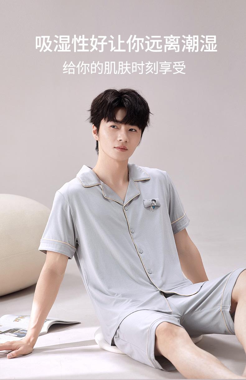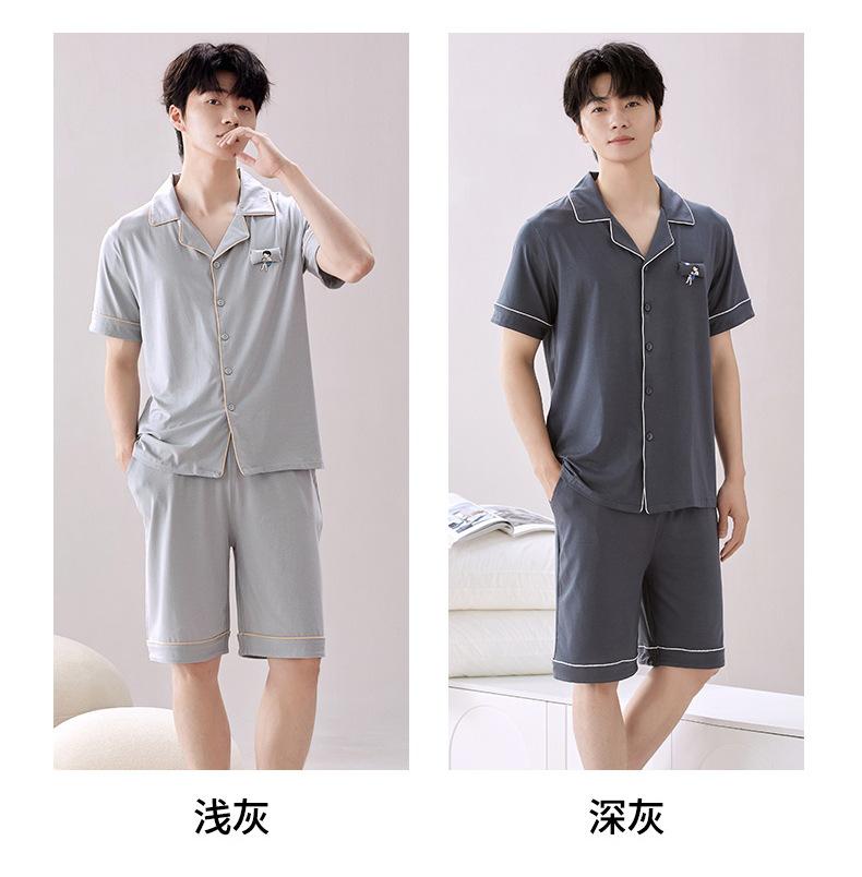 2025 Novo Pijama Modal Masculino Manga Curta Shorts Solto Fino Verão Algodão Antibacteriano Conjunto Casual Roupa de Casa