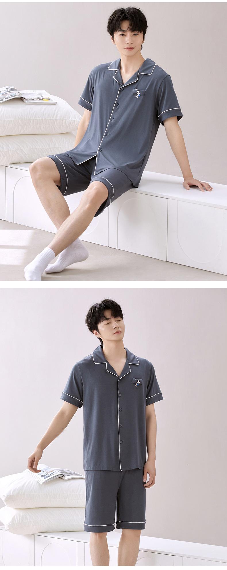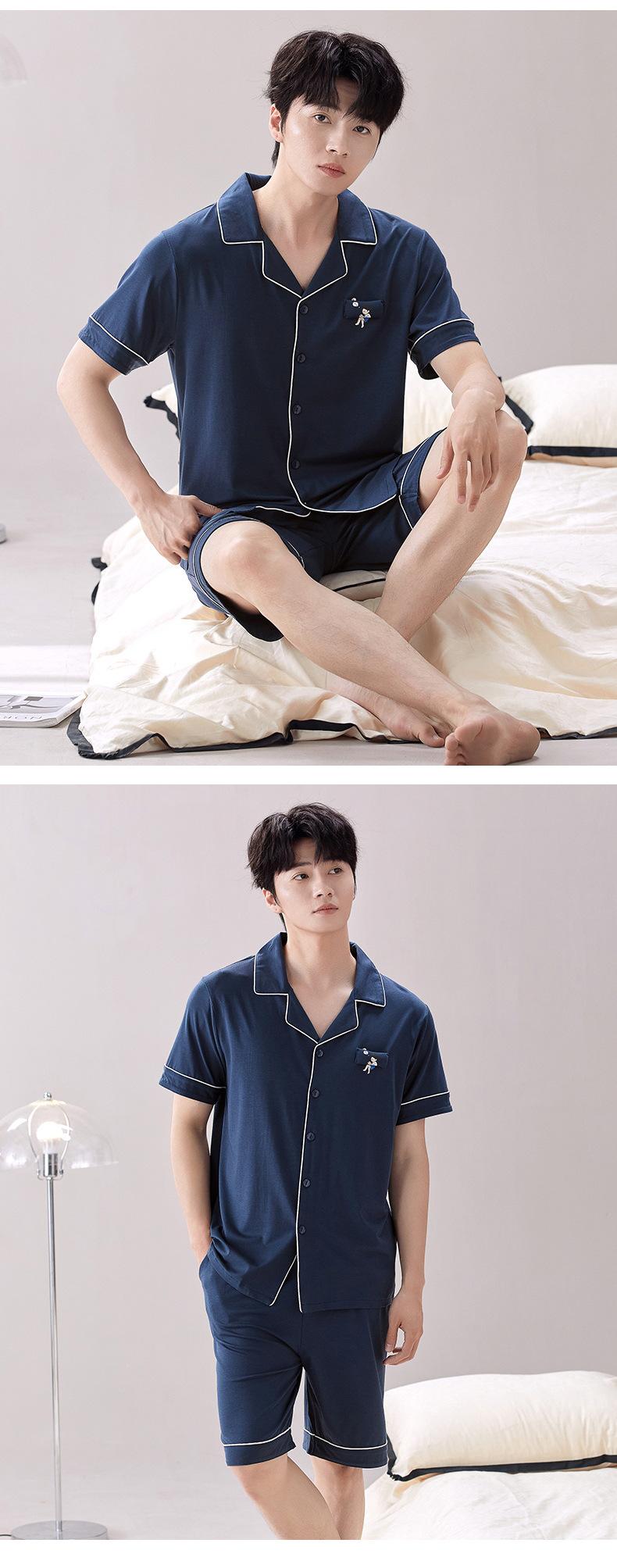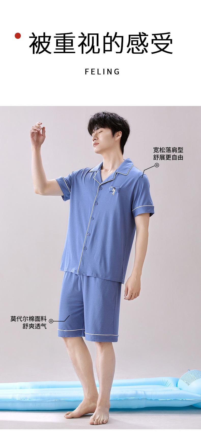 2025 Novo Pijama Modal Masculino Manga Curta Shorts Solto Fino Verão Algodão Antibacteriano Conjunto Casual Roupa de Casa