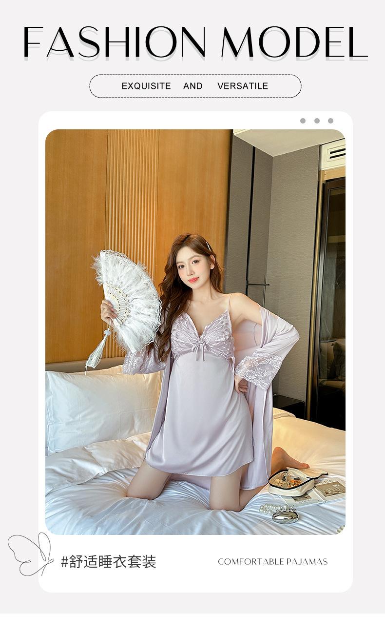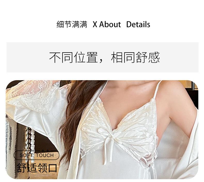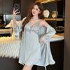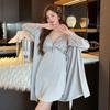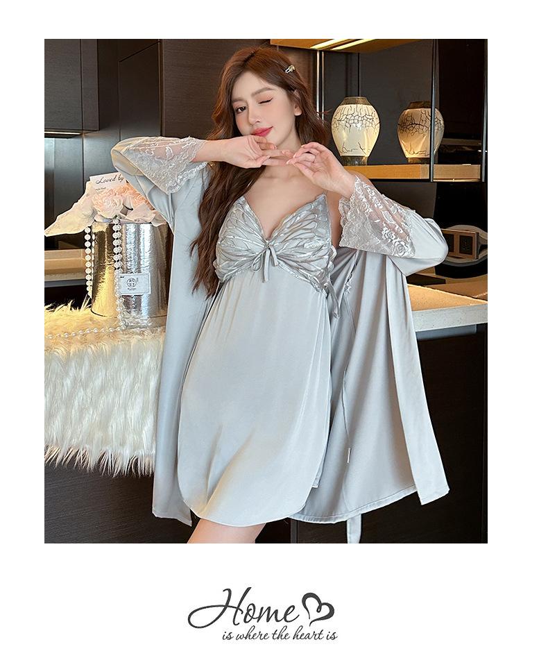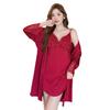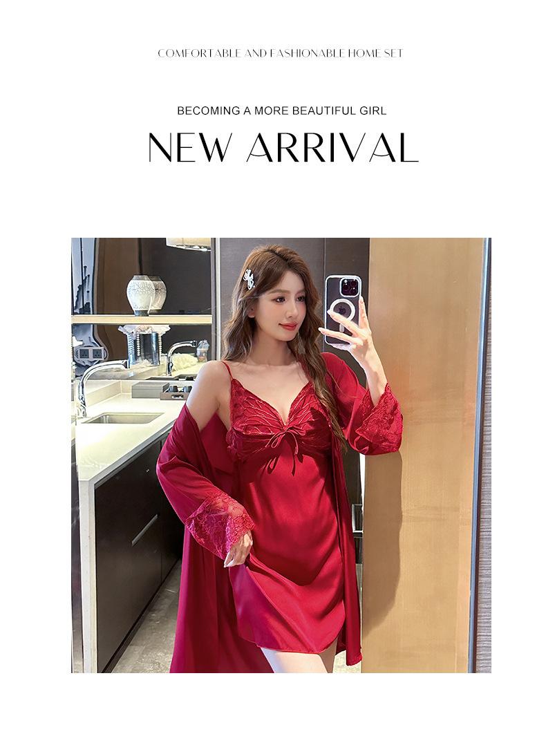 Conjunto de Camisola Sexy de Decote em V para Primavera e Outono, Conjunto de Duas Peças para Mulheres, Estilo Único de Puro Desejo com Bojos, Roupa de Dormir de Seda Gelo para Casa