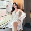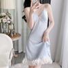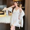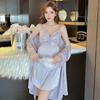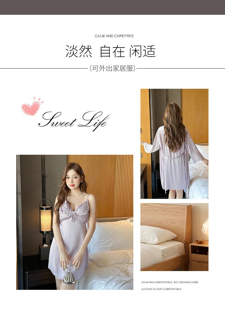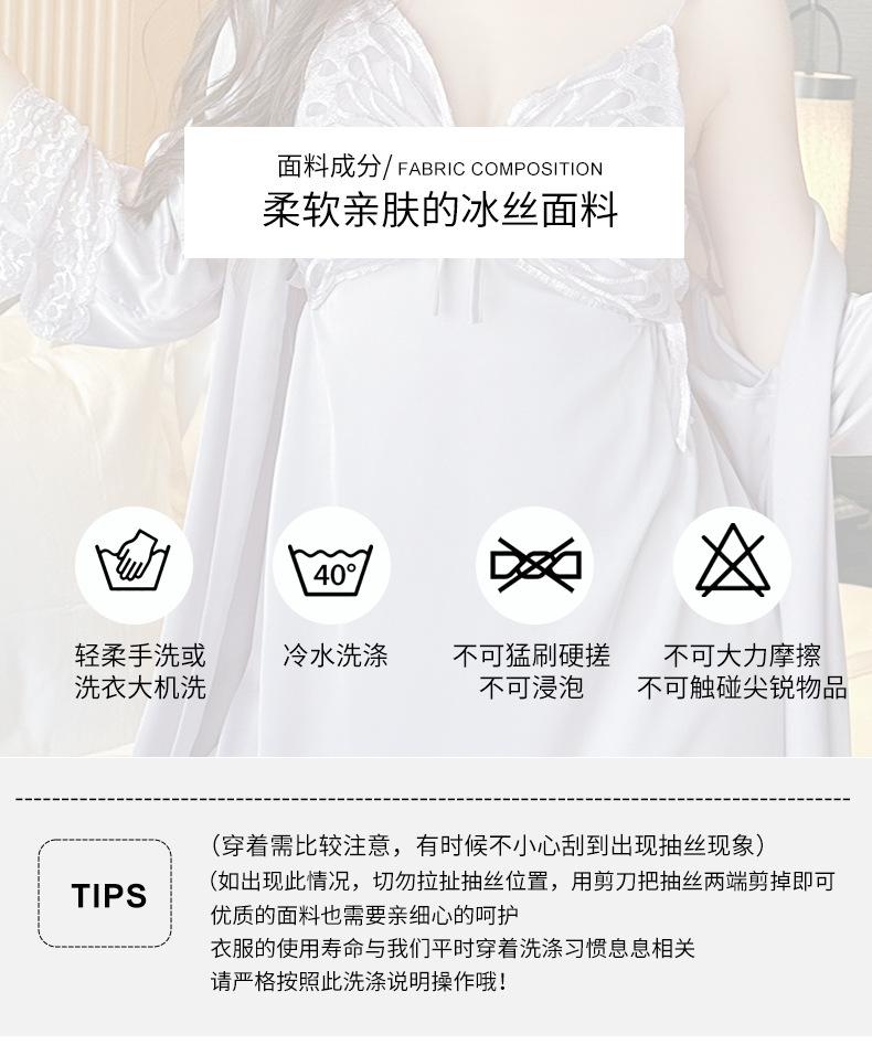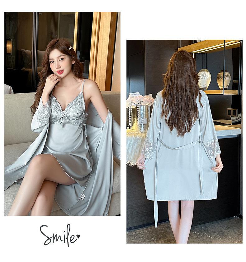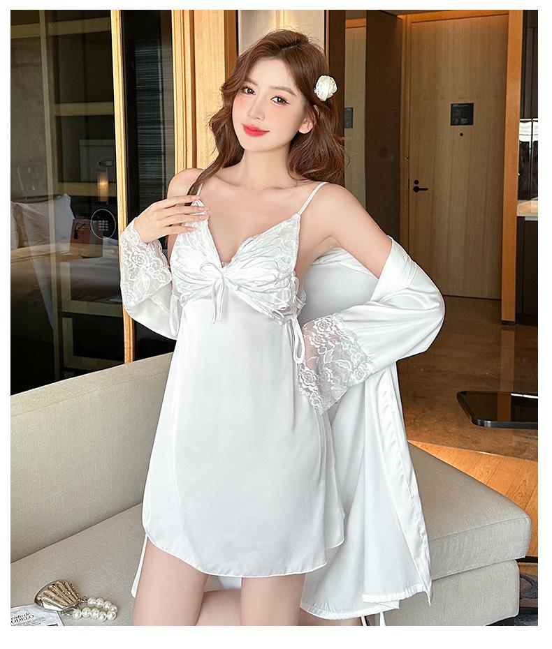 Conjunto de Camisola Sexy de Decote em V para Primavera e Outono, Conjunto de Duas Peças para Mulheres, Estilo Único de Puro Desejo com Bojos, Roupa de Dormir de Seda Gelo para Casa