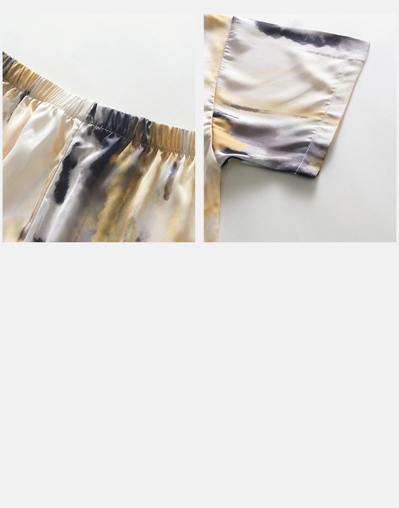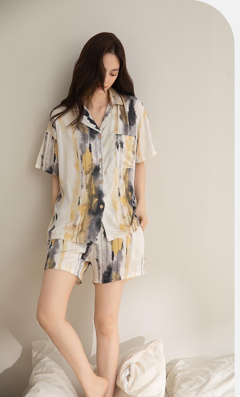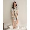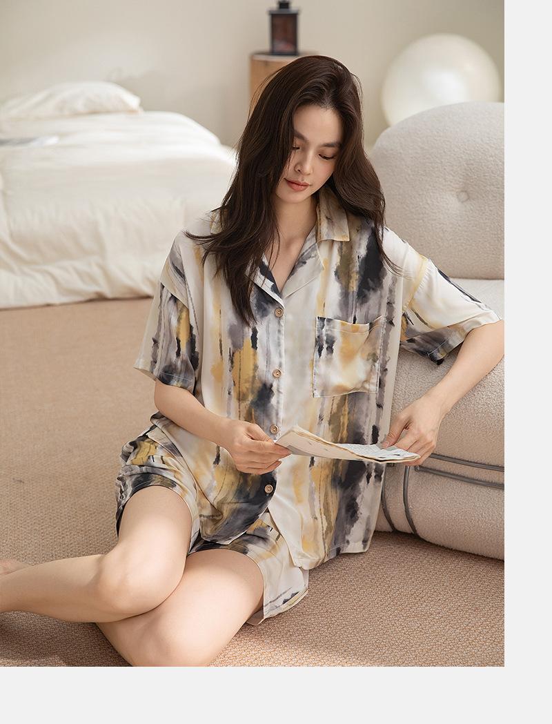 2024 Pijama de seda de gelo de verão feminino de manga curta terno Moda Casual Legal Amigo da pele Roupas domésticas ao ar livre