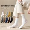 Meias esportivas masculinas outono e inverno meias mid-tube letras bordadas absorventes de suor respiráveis meias de algodão anti-pilling meias mid-tube atacado