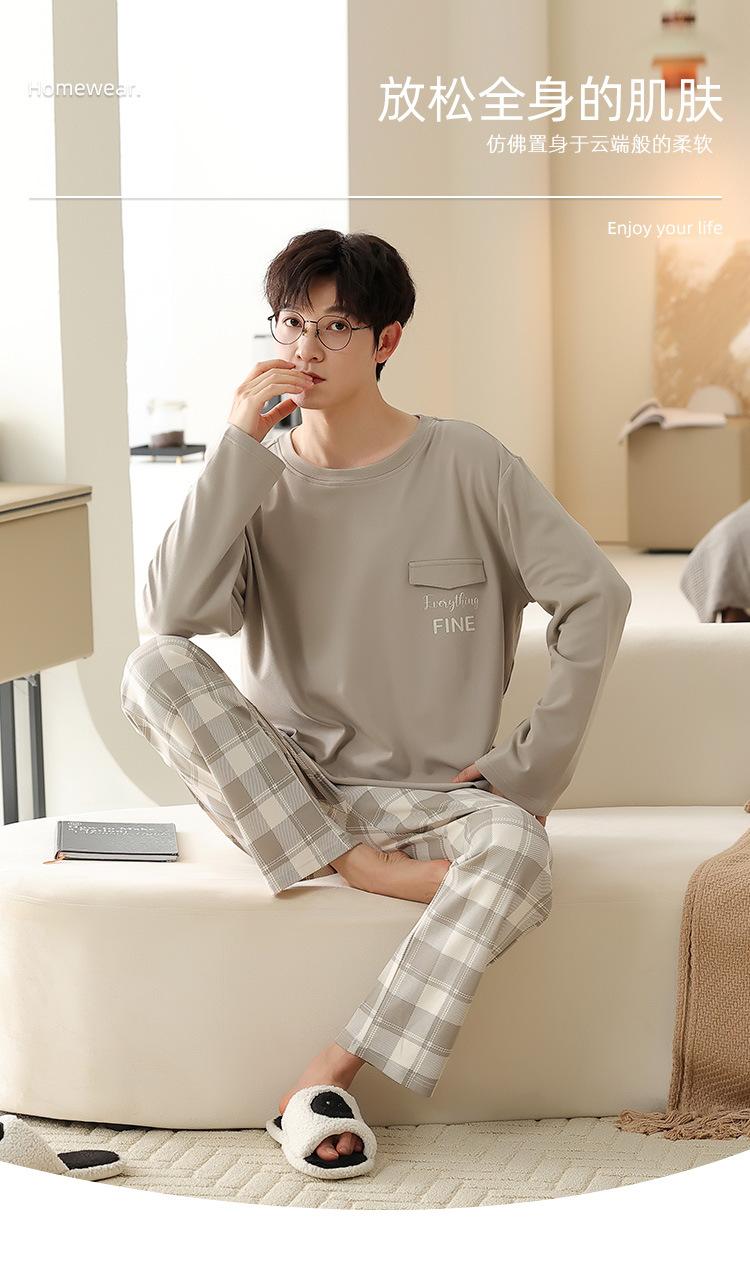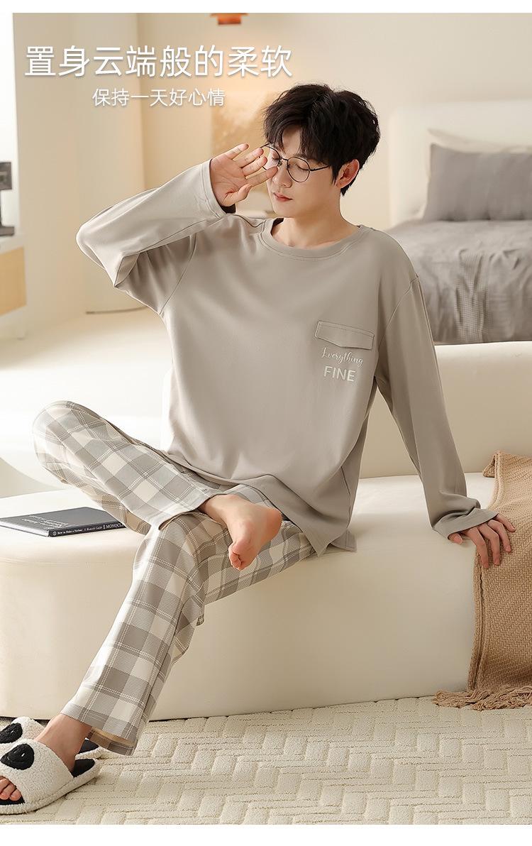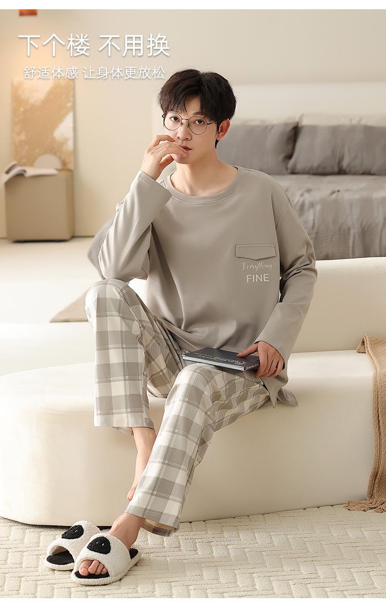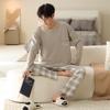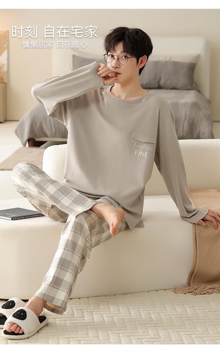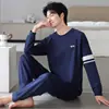Vestindo pijama masculino de algodão puro outono manga comprida roupas para casa primavera e outono juventude meninos terno plus size masculino